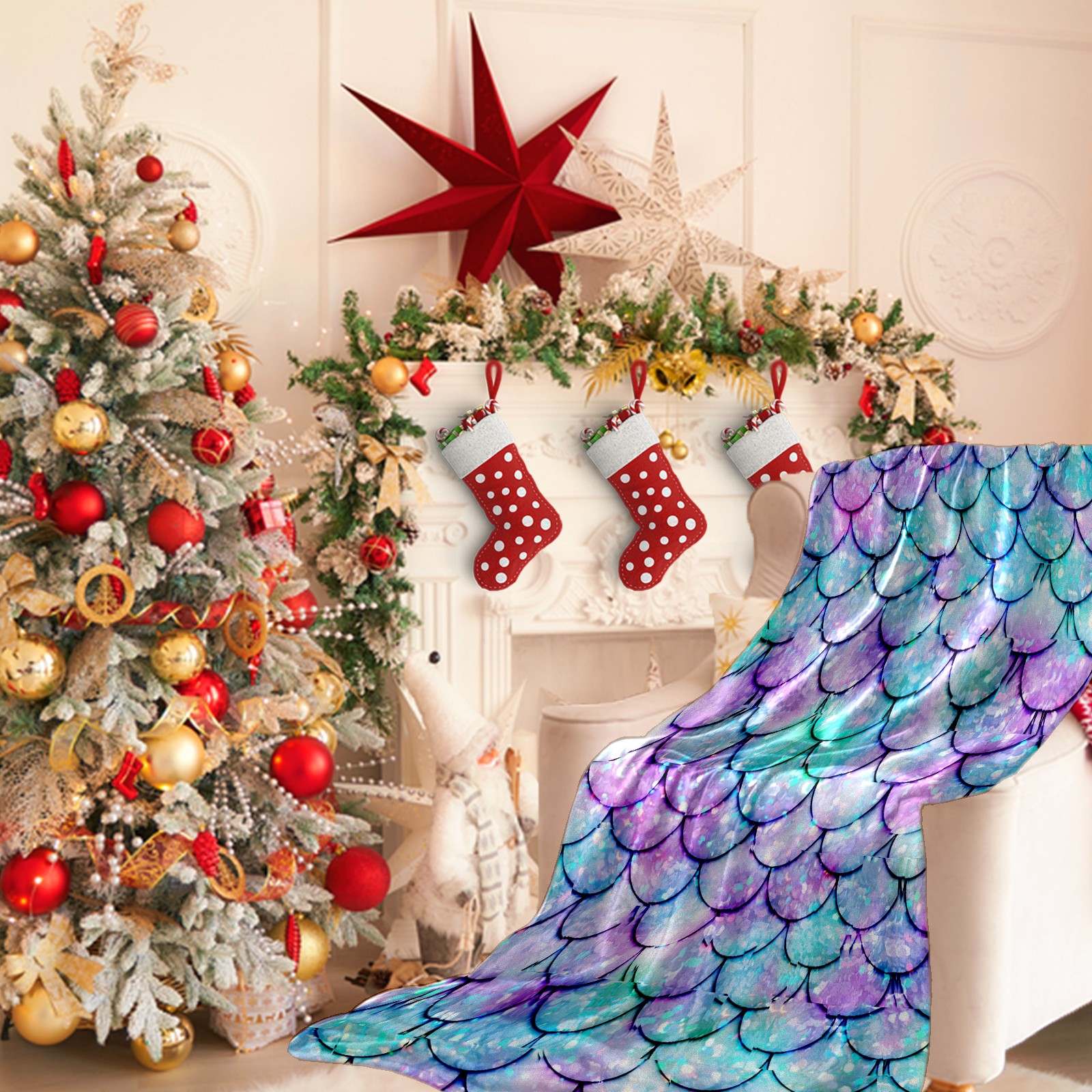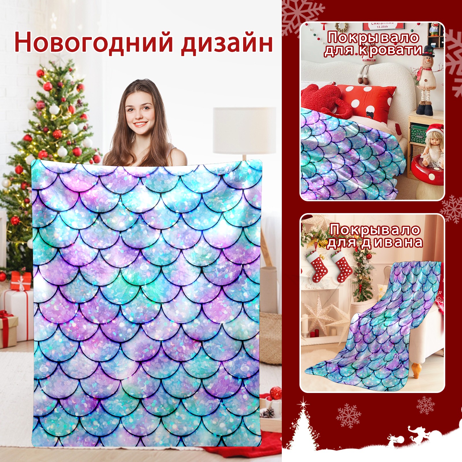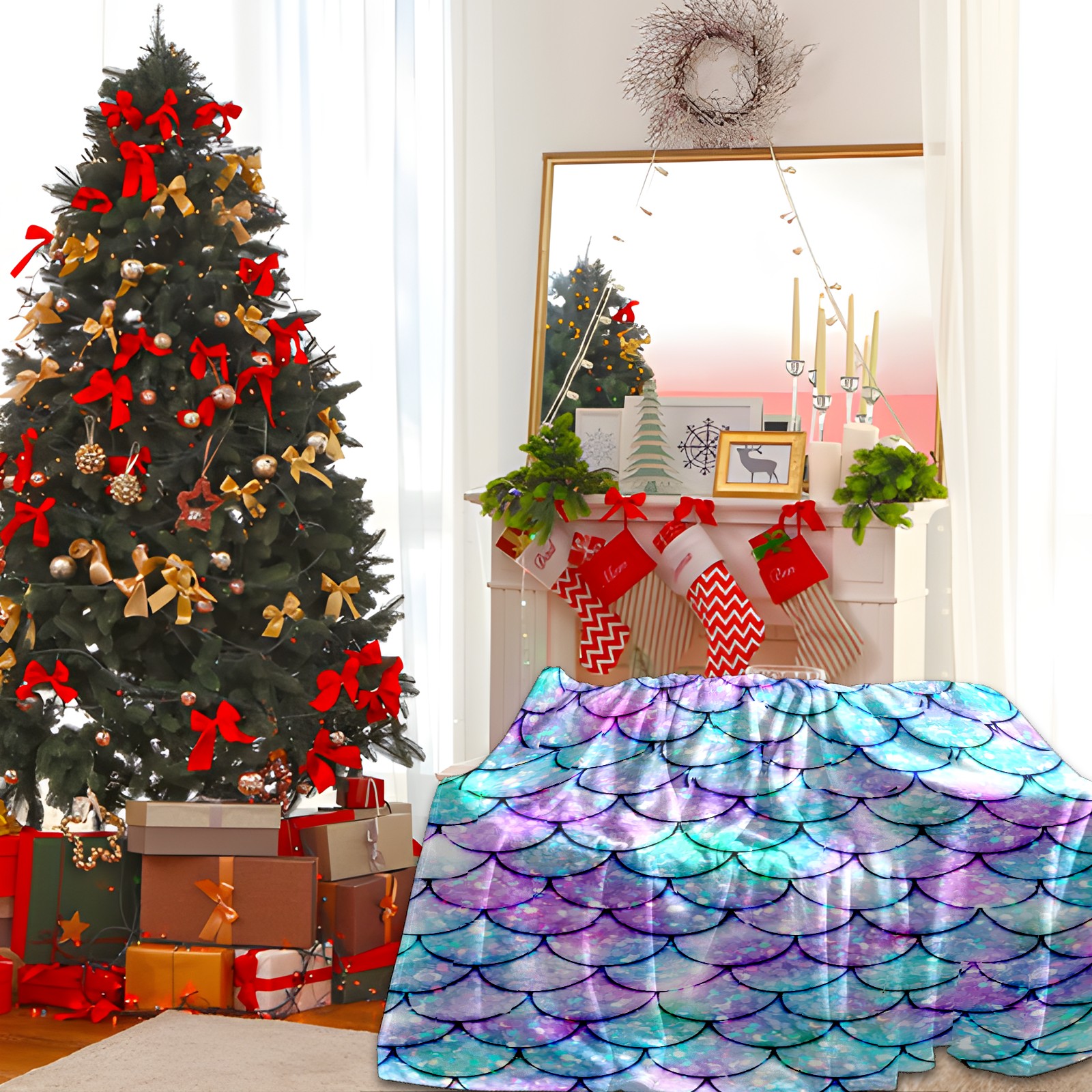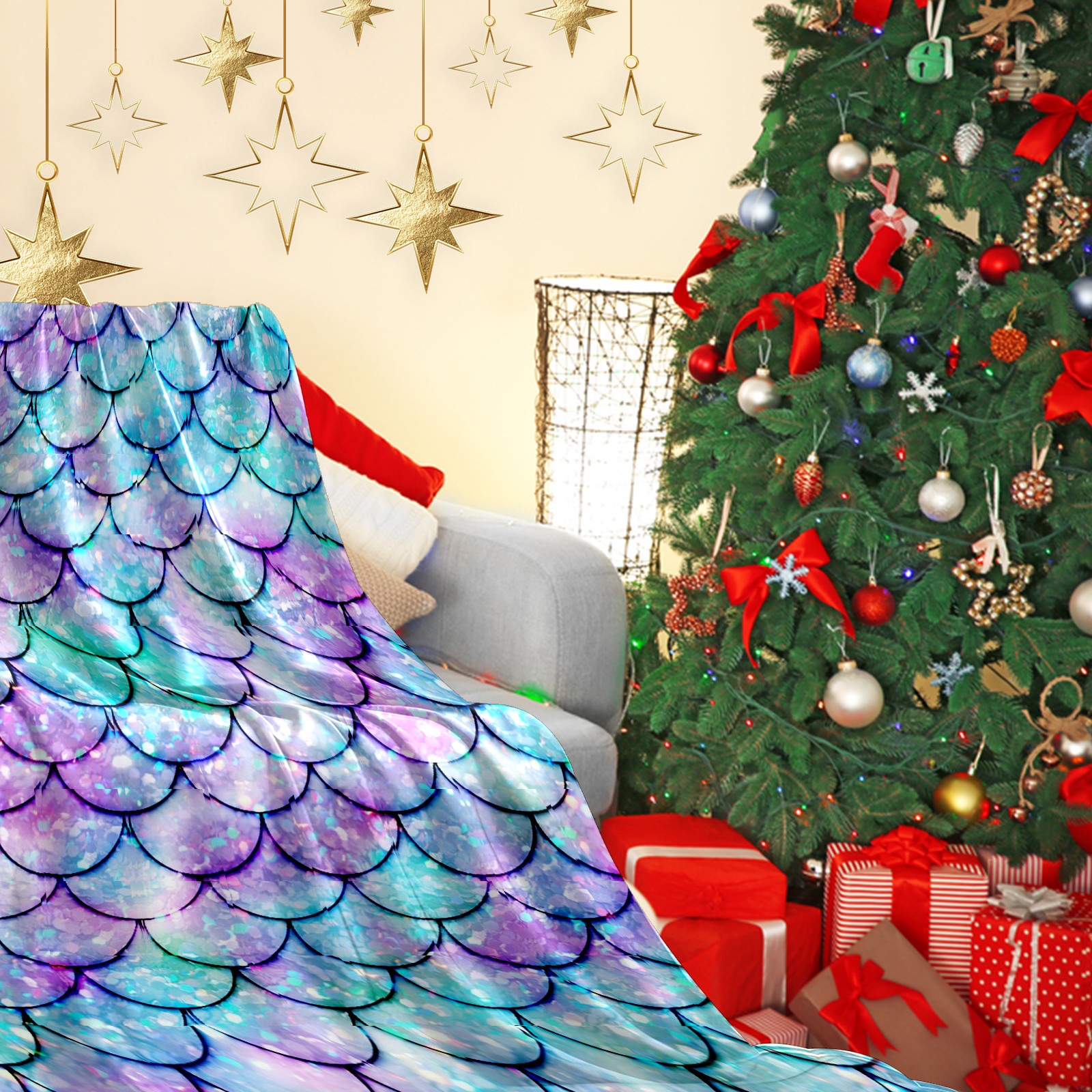 Flannel Blanket, Ultra-Soft Comfortable Home Decor Rug, The Perfect Comfort Gift for Both Men Women, Suitable for Beds, Sofas, Loungewear, and Travel 30x39in(Bling Mermaid Scales)