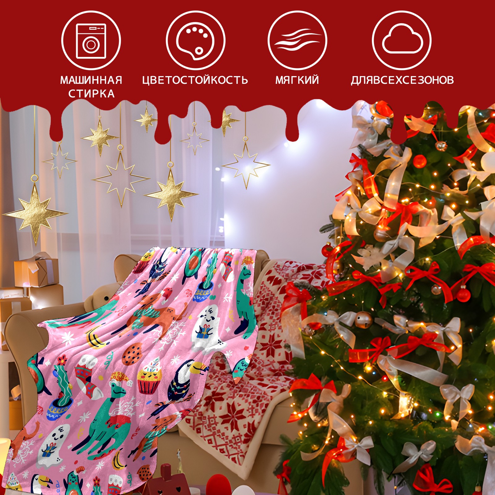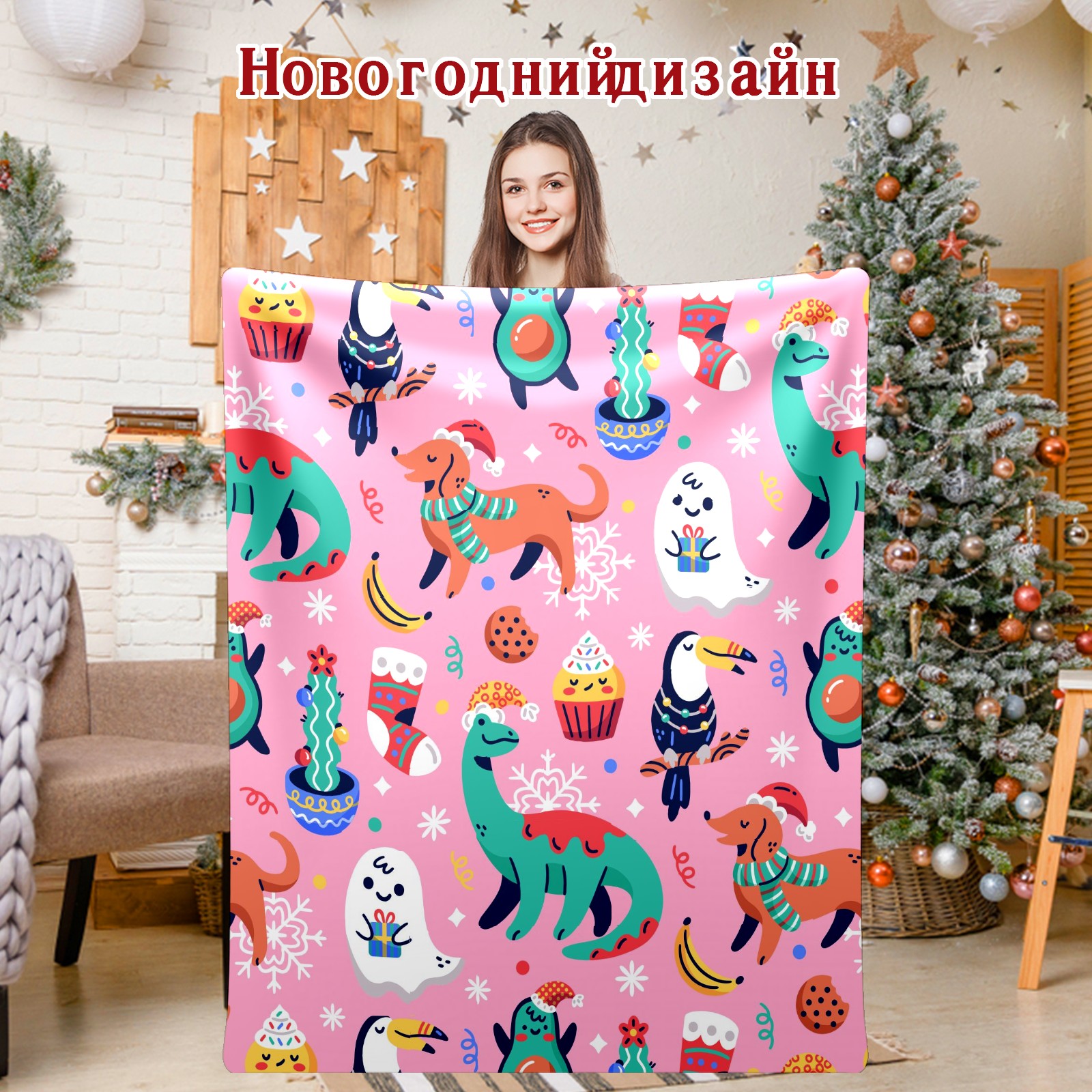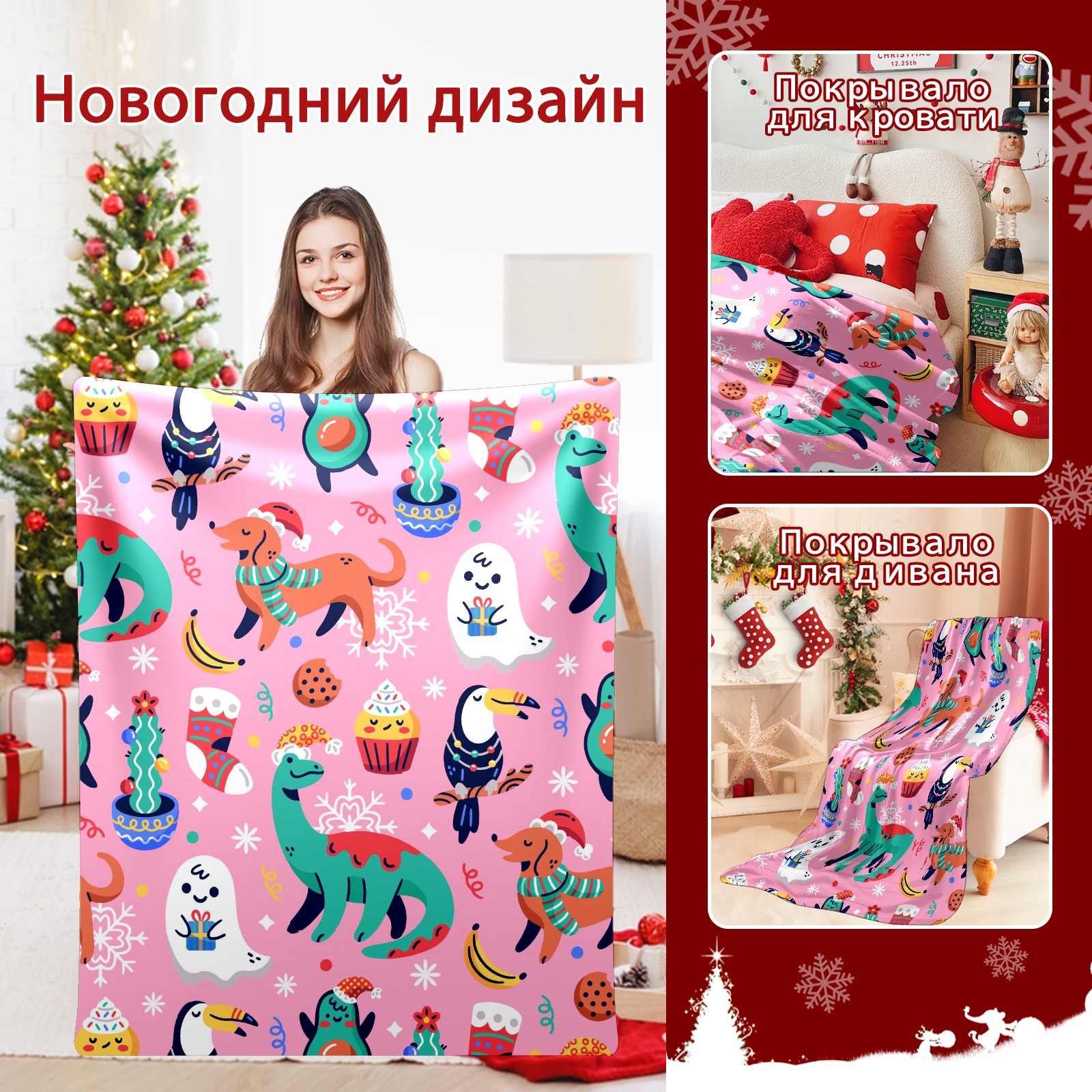 Flannel Blanket, Ultra-Soft Comfortable Home Decor Rug, The Perfect Comfort Gift for Both Men Women, Suitable for Beds, Sofas, Loungewear, and Travel 30x39in(Chiristmas Dinosaur)