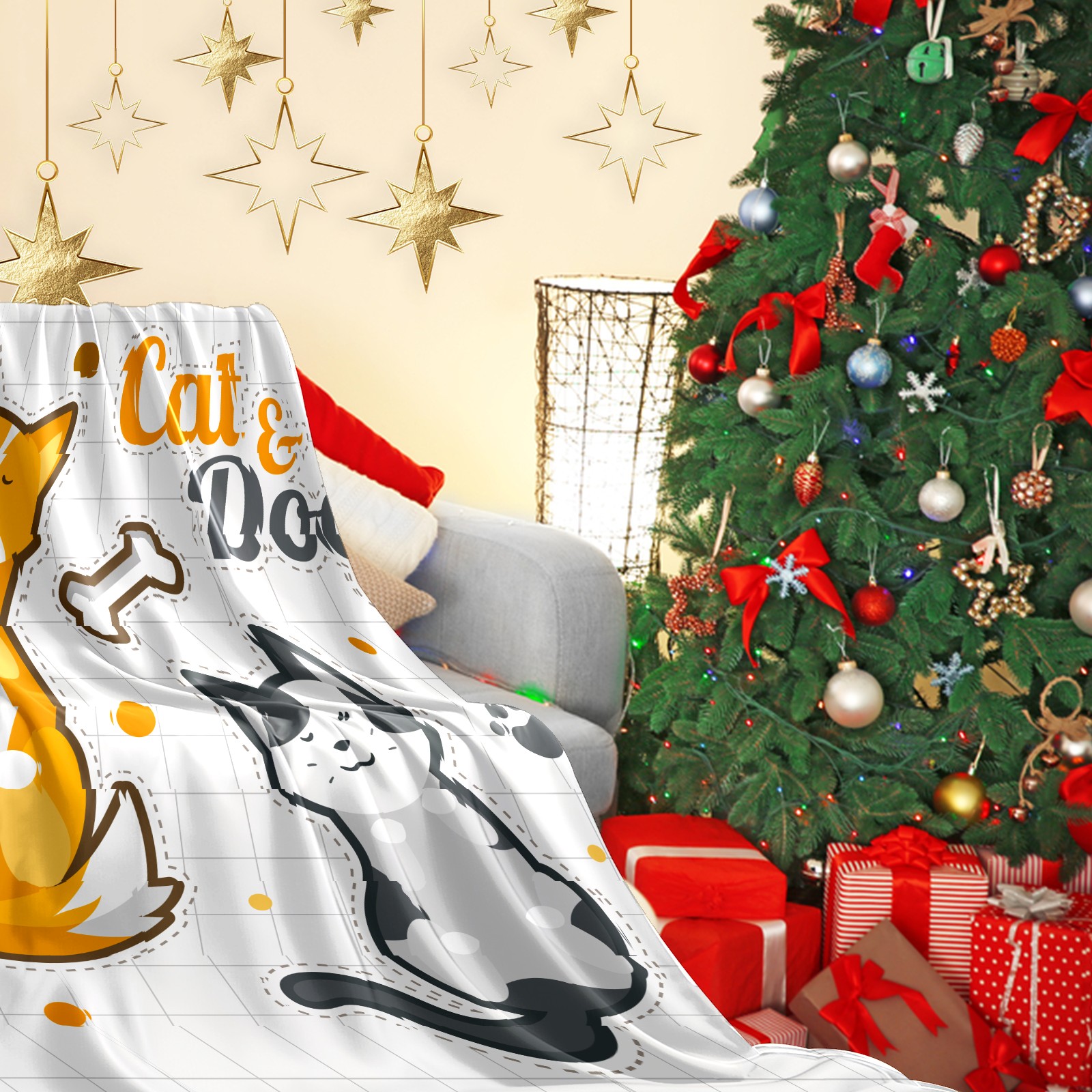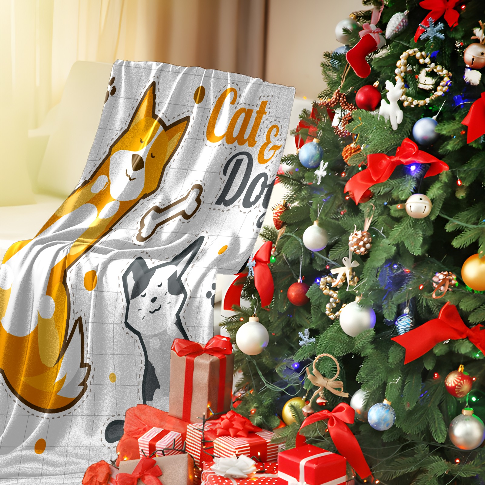 Flannel Blanket, Ultra-Soft Comfortable Home Decor Rug, The Perfect Comfort Gift for Both Men Women, Suitable for Beds, Sofas, Loungewear, and Travel 30x39in(Cat And Dogs)