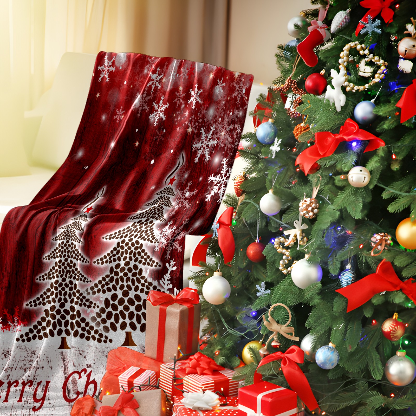 Flannel Blanket, Ultra-Soft Comfortable Home Decor Rug, The Perfect Comfort Gift for Both Men Women, Suitable for Beds, Sofas, Loungewear, and Travel 30x39in(Red Christmas Tree)