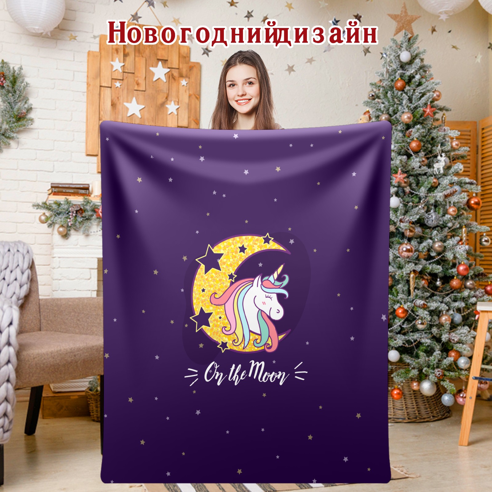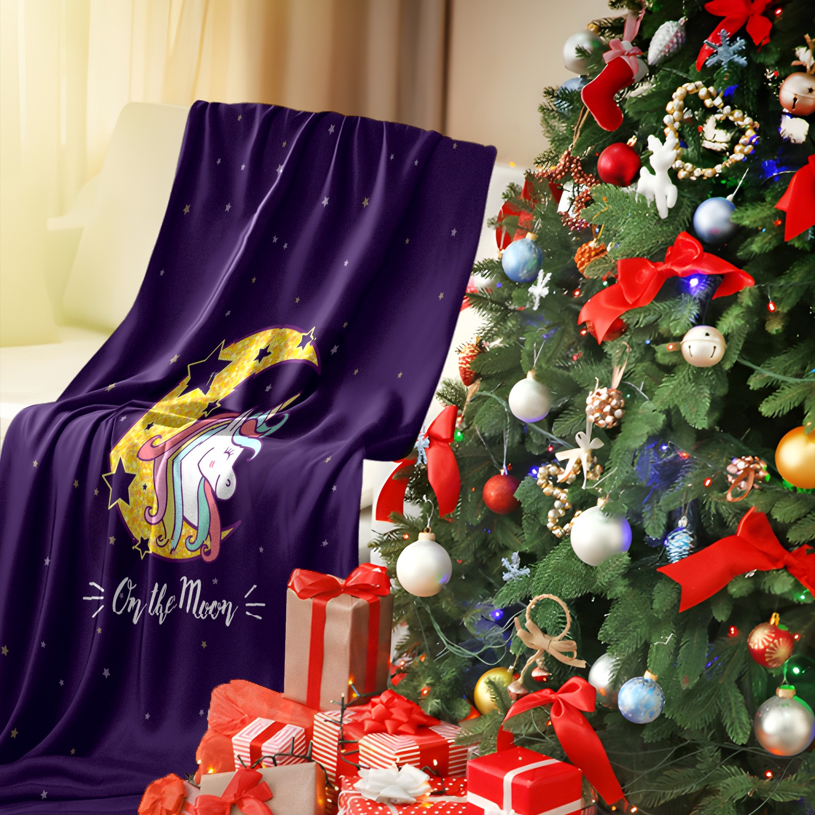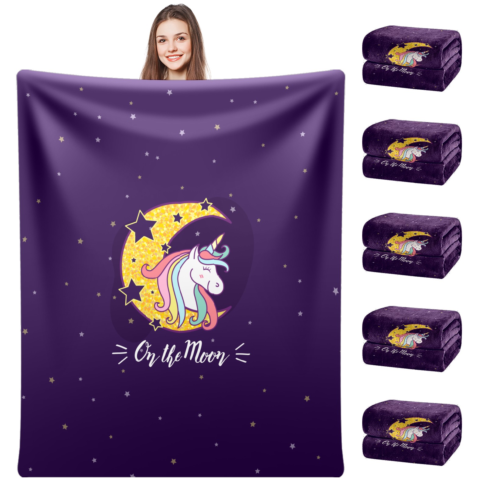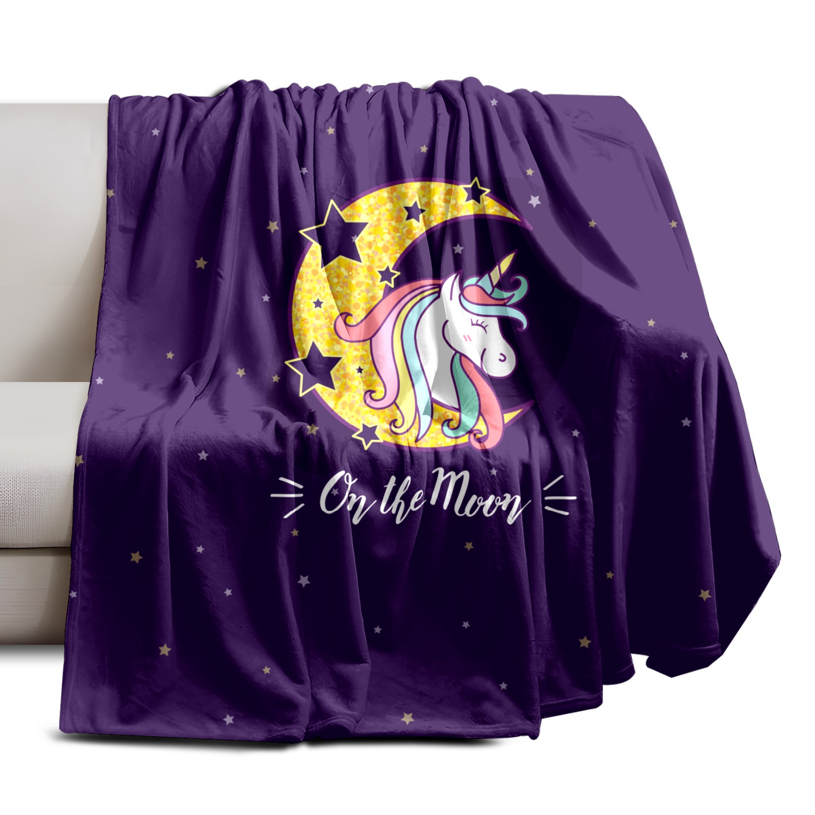 Flannel Blanket, Ultra-Soft Comfortable Home Decor Rug, The Perfect Comfort Gift for Both Men Women, Suitable for Beds, Sofas, Loungewear, and Travel 30x39in(Purple Unicorn On Moon)