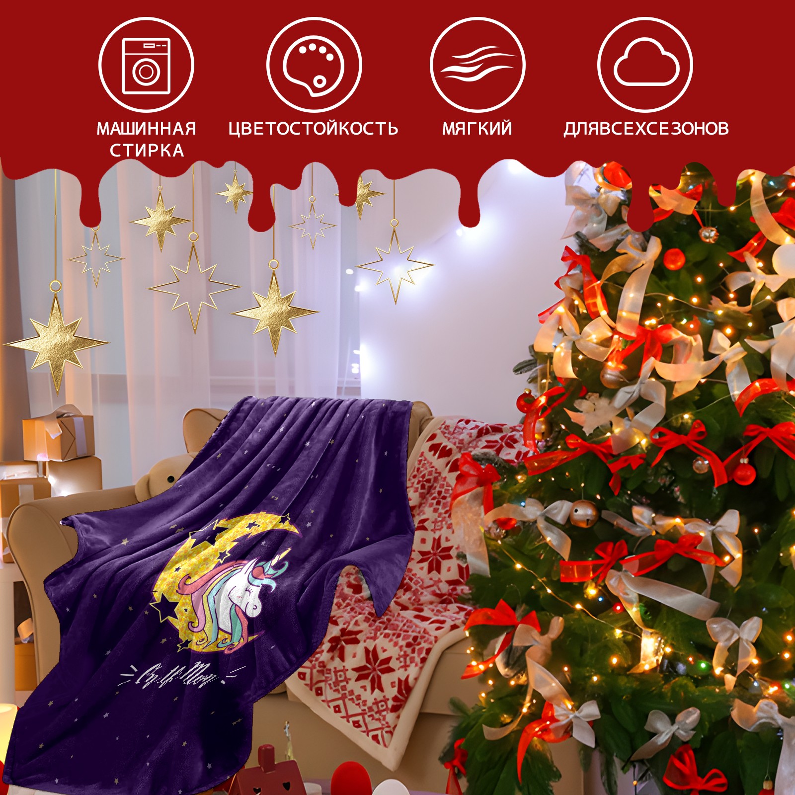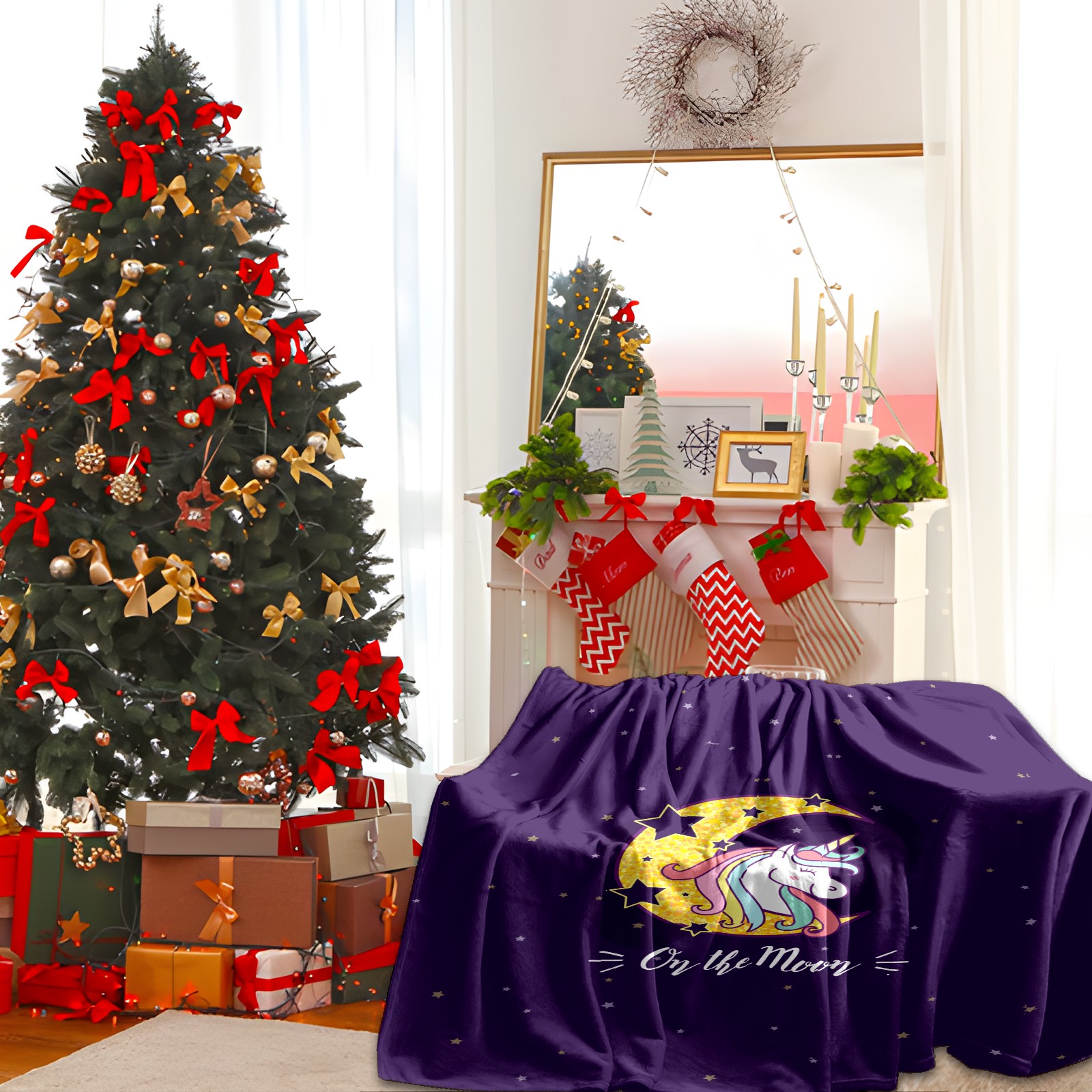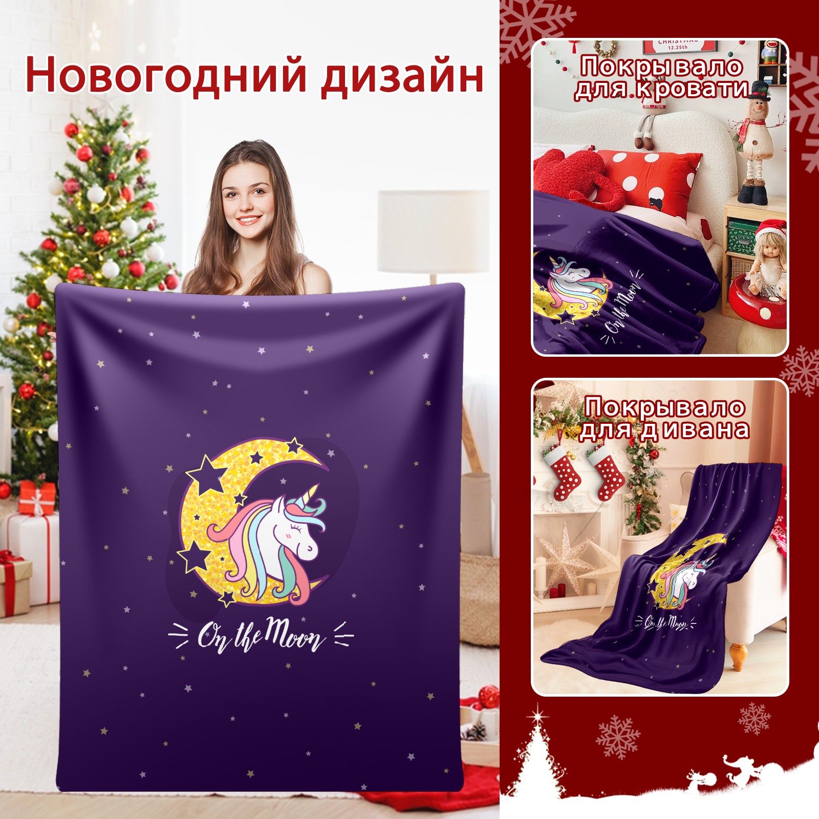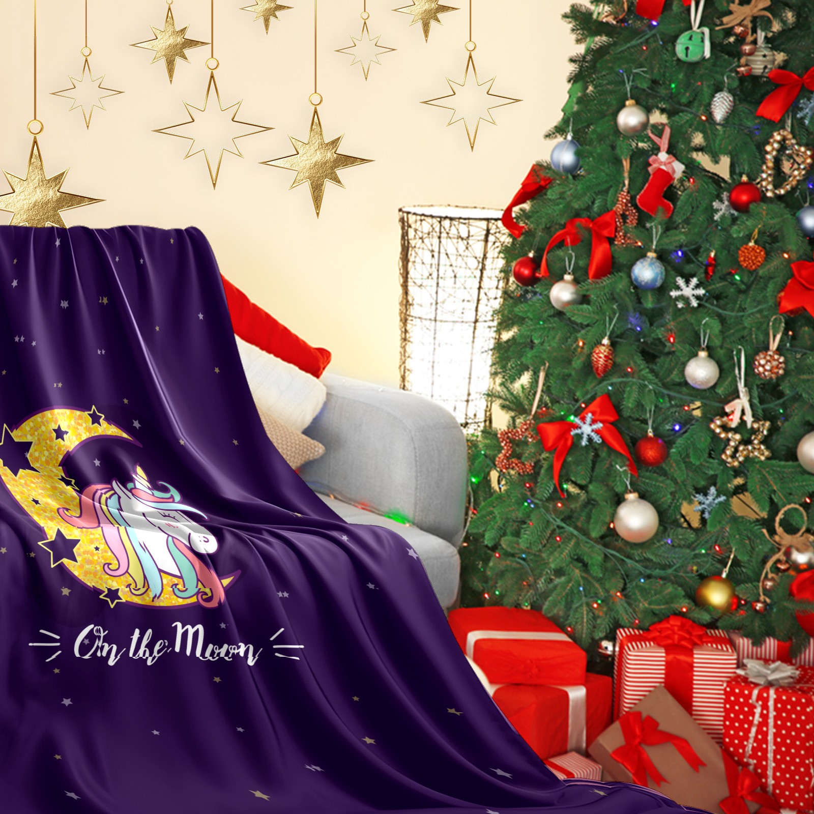 Flannel Blanket, Ultra-Soft Comfortable Home Decor Rug, The Perfect Comfort Gift for Both Men Women, Suitable for Beds, Sofas, Loungewear, and Travel 30x39in(Purple Unicorn On Moon)