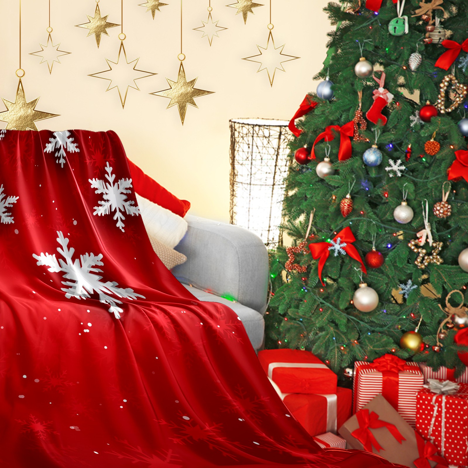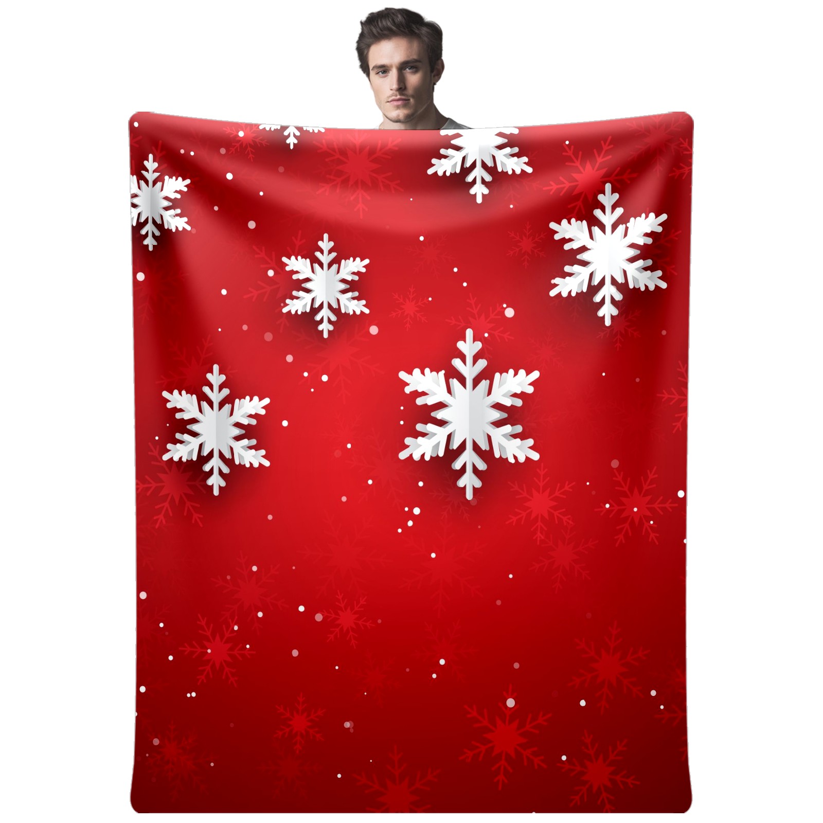 Flannel Blanket, Ultra-Soft Comfortable Home Decor Rug, The Perfect Comfort Gift for Both Men Women, Suitable for Beds, Sofas, Loungewear, and Travel 30x39in(Christmas Red Background With 3D Style Paper Snowflakes)