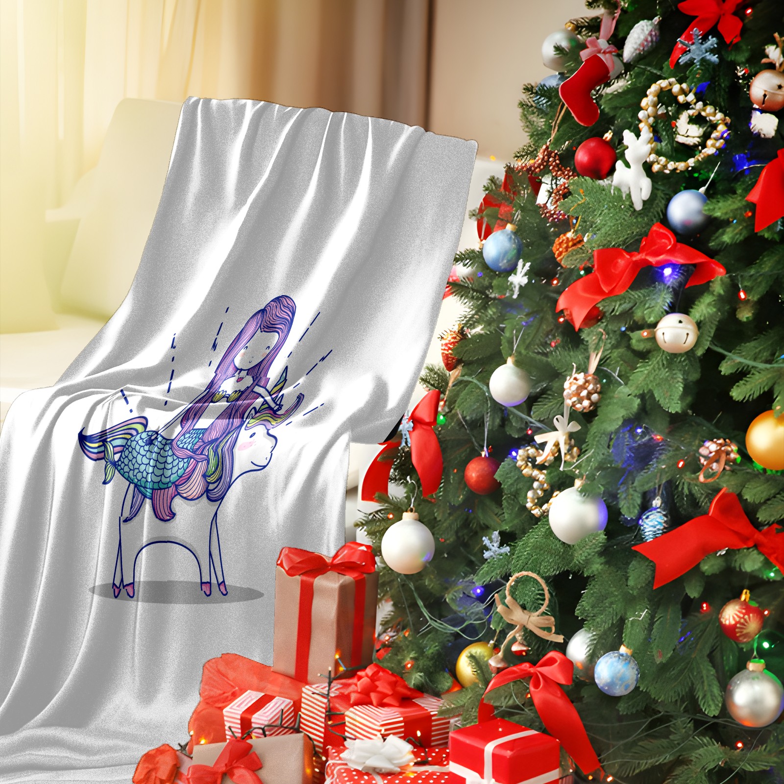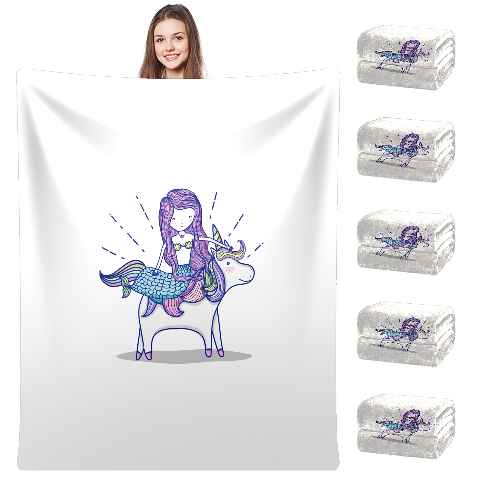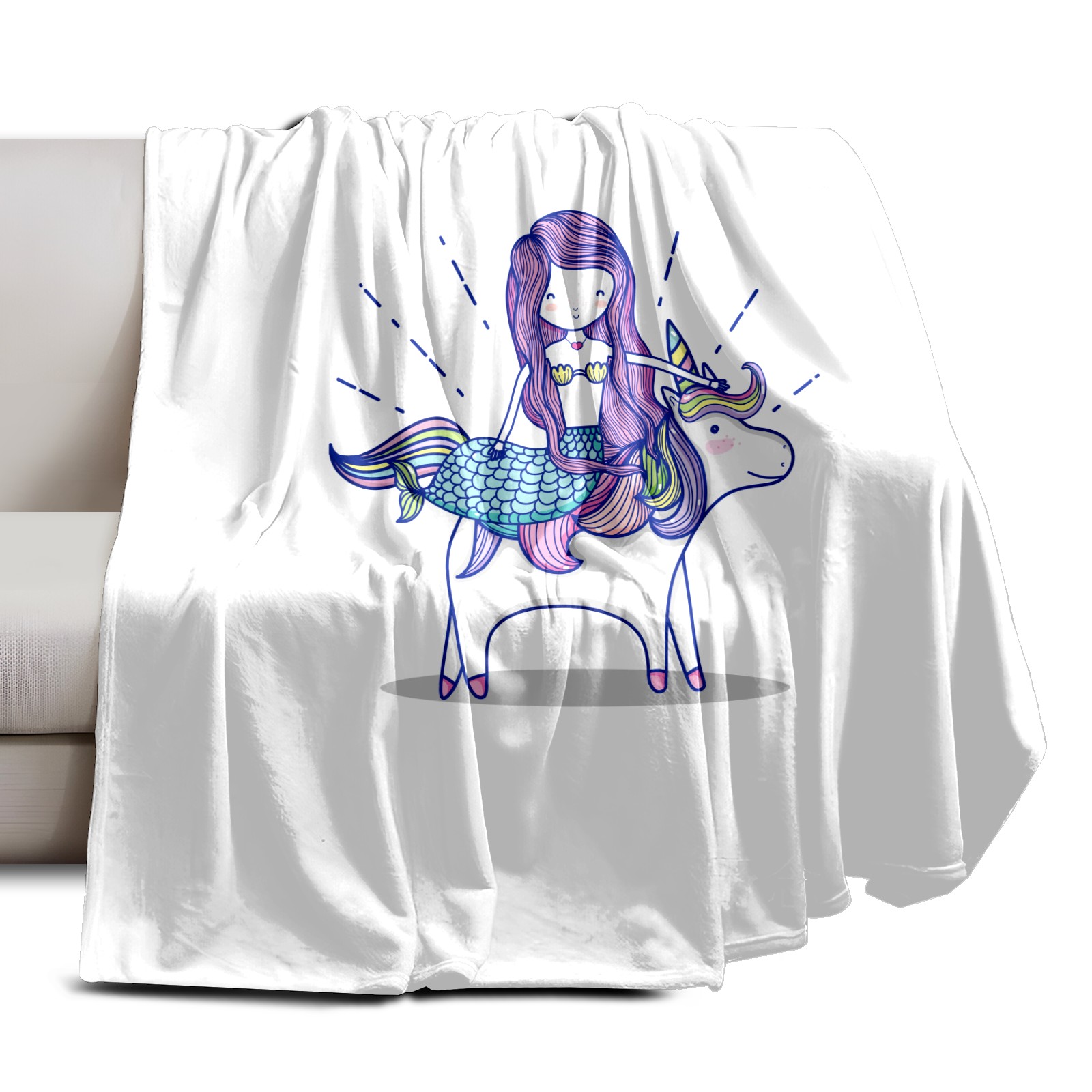 Flannel Blanket, Ultra-Soft Comfortable Home Decor Rug, The Perfect Comfort Gift for Both Men Women, Suitable for Beds, Sofas, Loungewear, and Travel 30x39in(Cute Mermaid Unicorn)