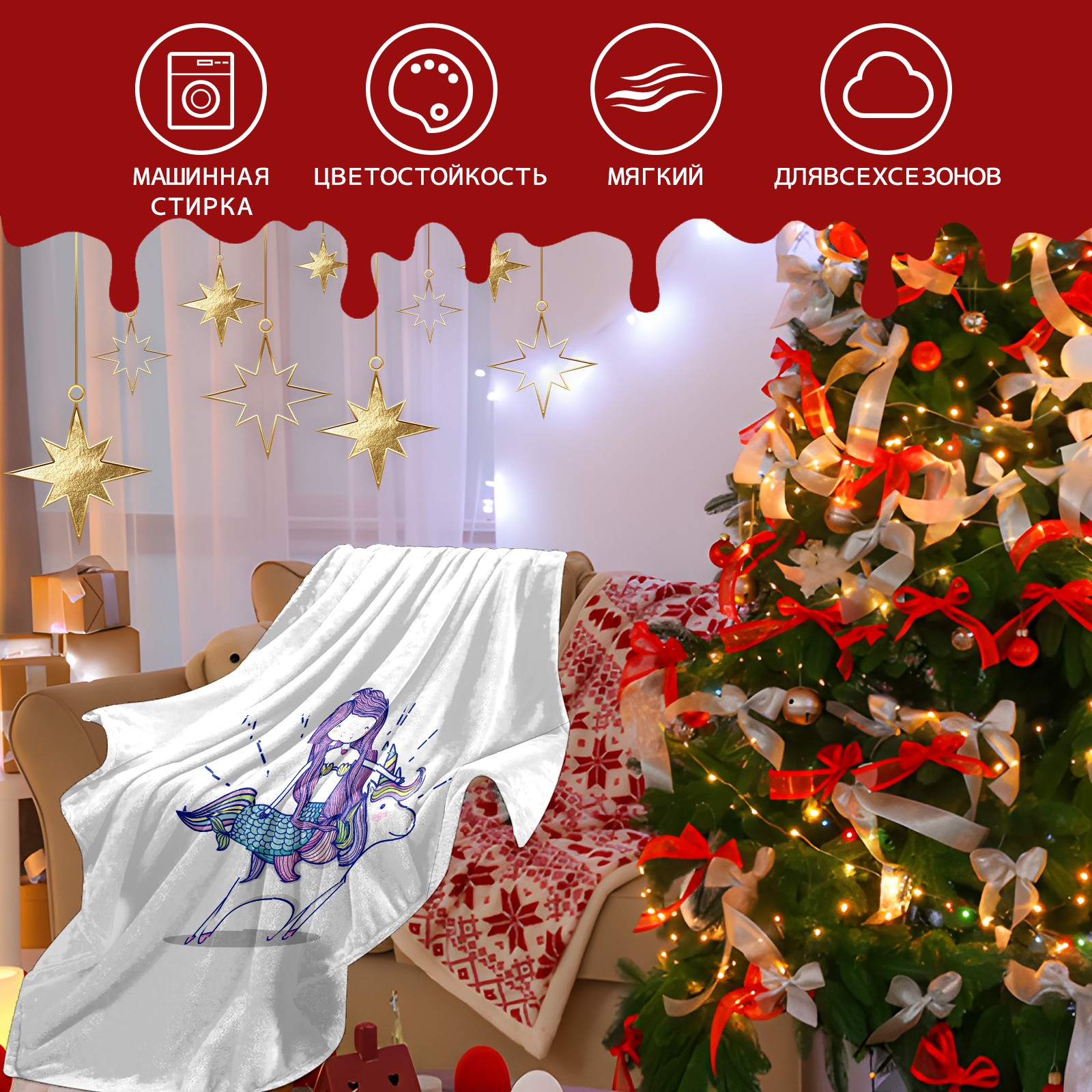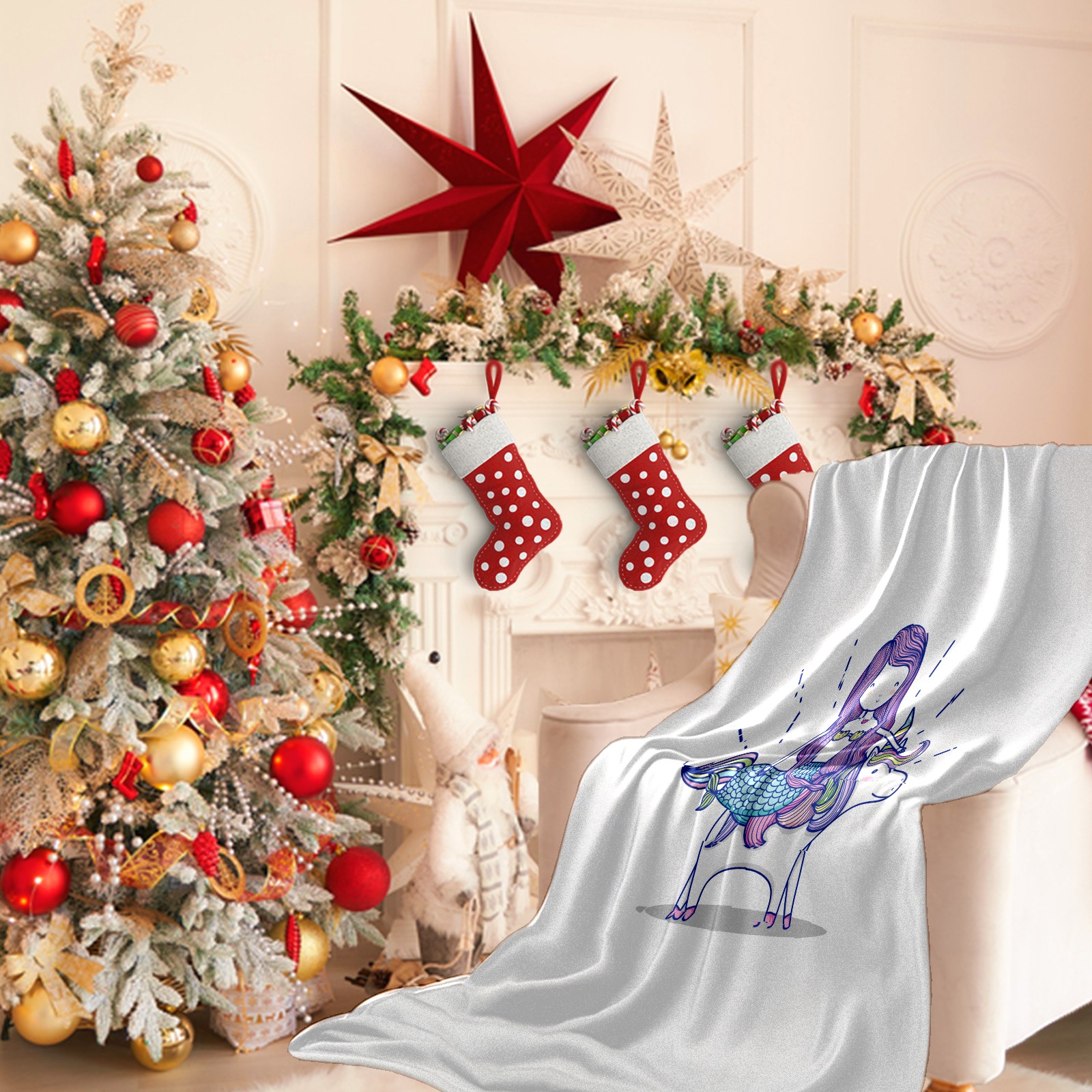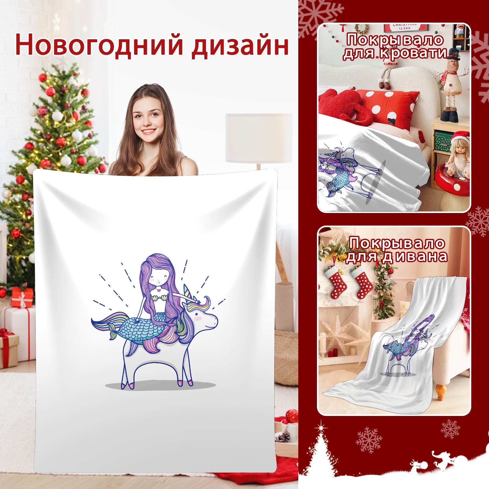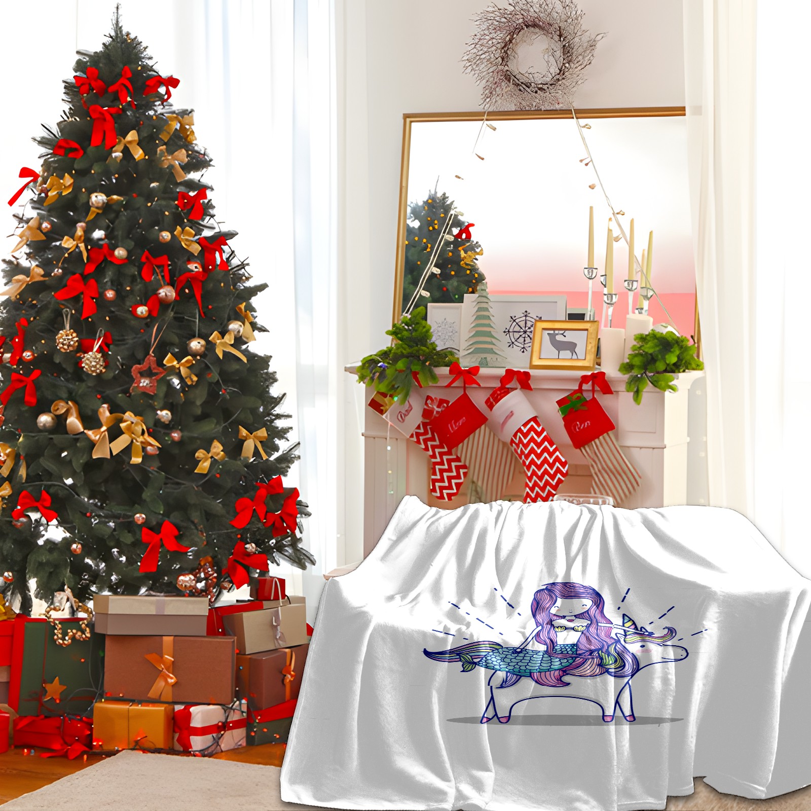 Flannel Blanket, Ultra-Soft Comfortable Home Decor Rug, The Perfect Comfort Gift for Both Men Women, Suitable for Beds, Sofas, Loungewear, and Travel 30x39in(Cute Mermaid Unicorn)