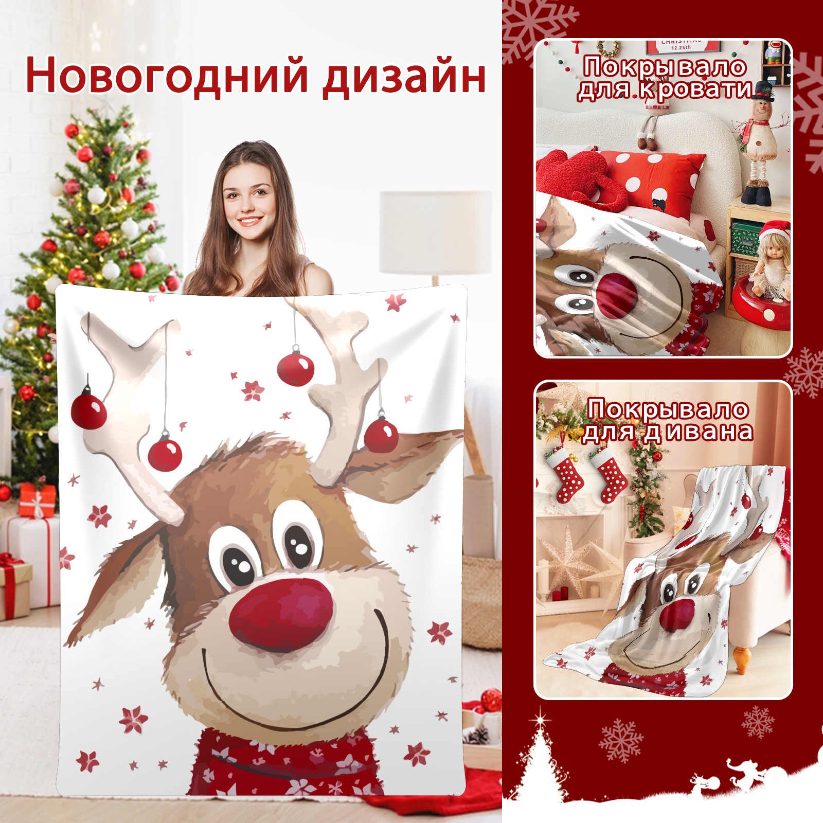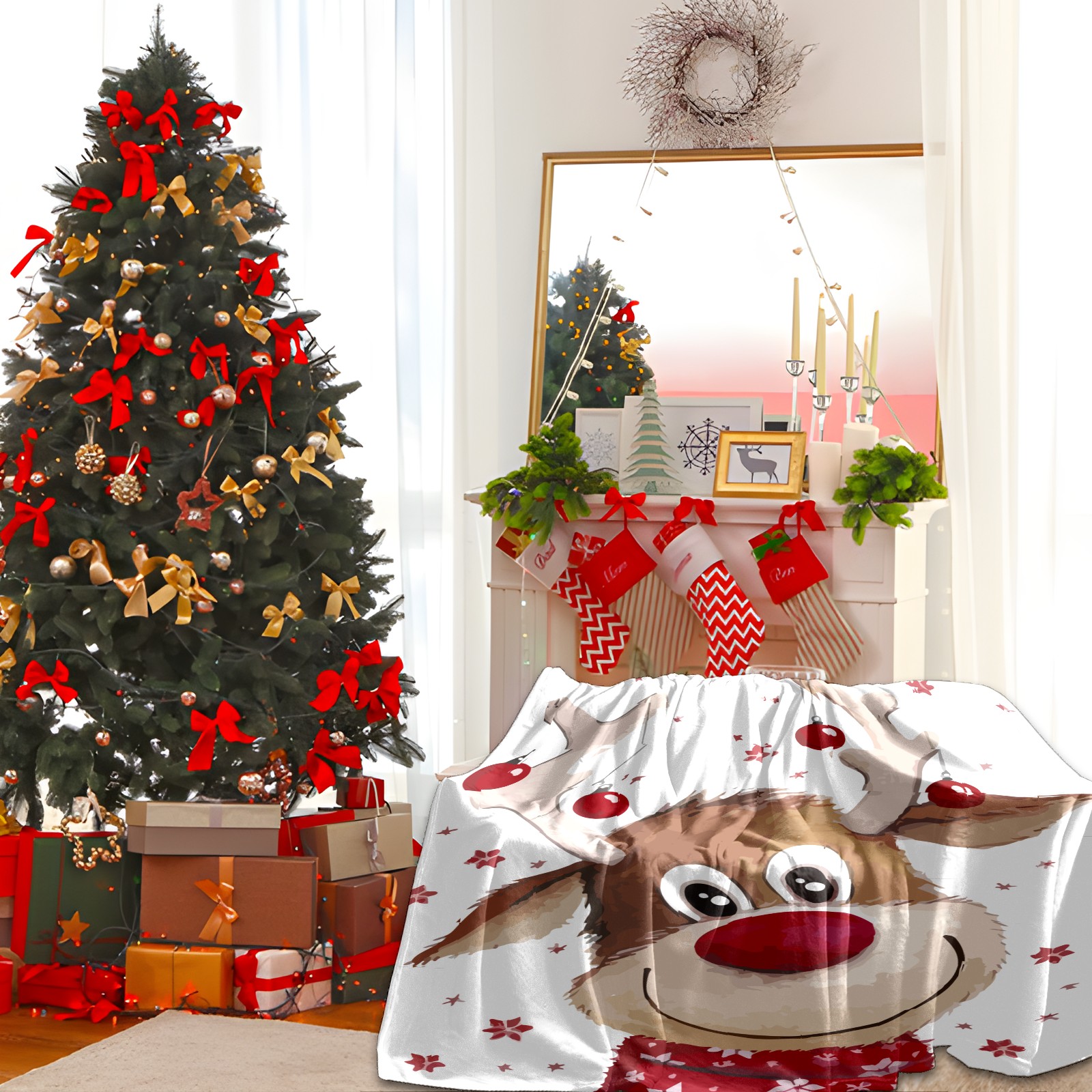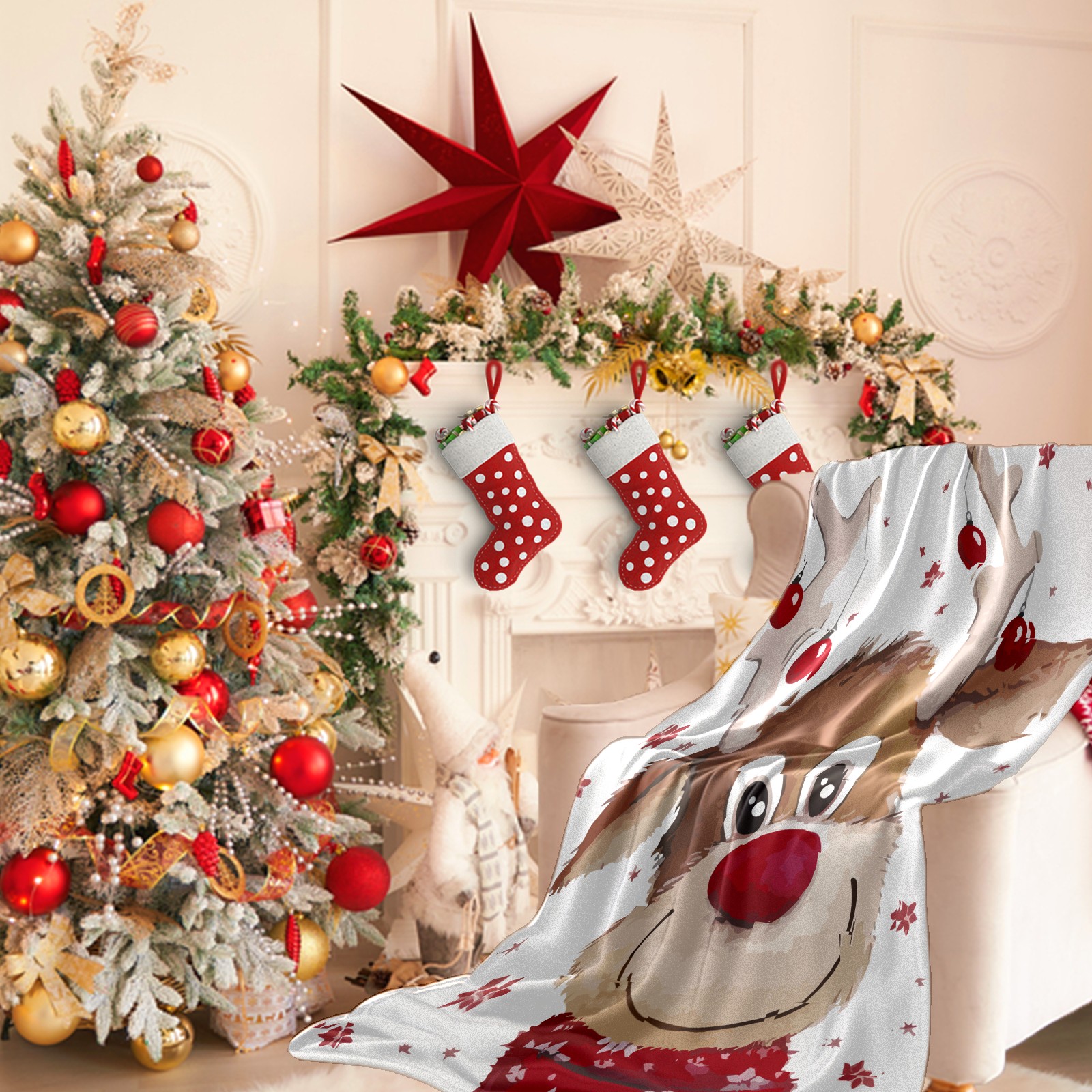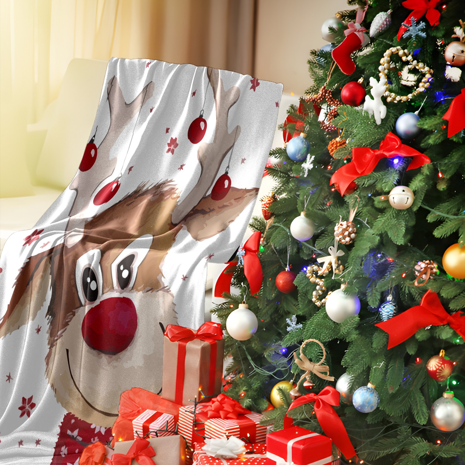Flannel Blanket, Ultra-Soft Comfortable Home Decor Rug, The Perfect Comfort Gift for Both Men Women, Suitable for Beds, Sofas, Loungewear, and Travel 30x39in(Cute Christmas Reindeer)