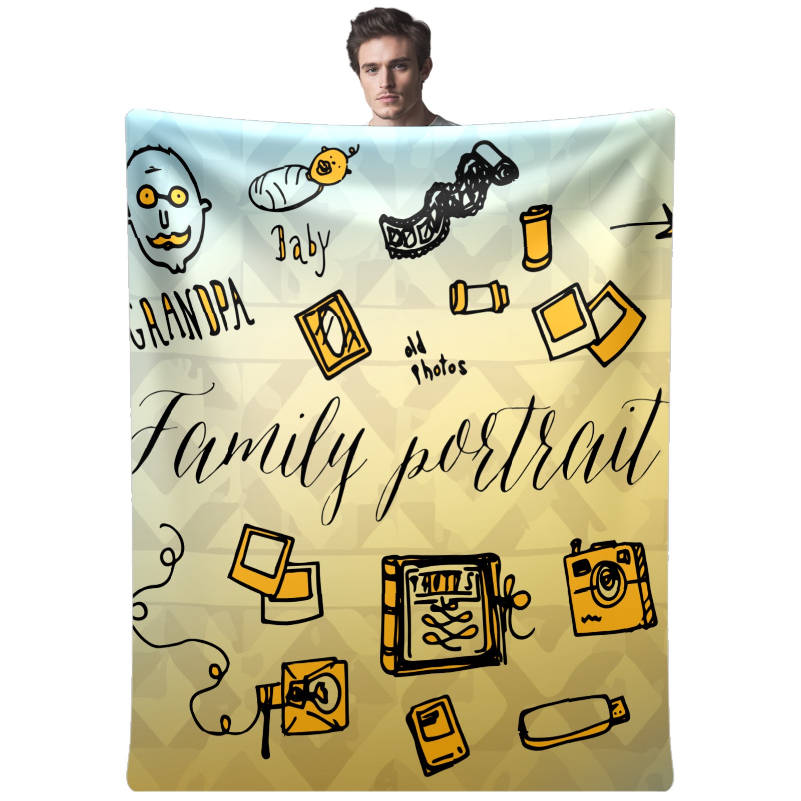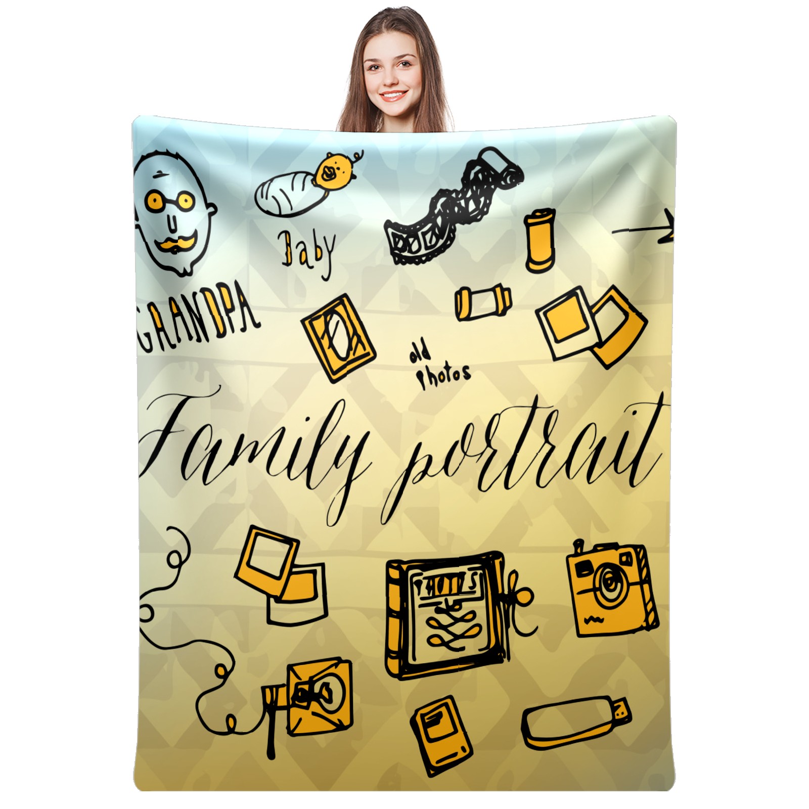 Flannel Blanket, Ultra-Soft Comfortable Home Decor Rug, The Perfect Comfort Gift for Both Men Women, Suitable for Beds, Sofas, Loungewear, and Travel 30x39in(Cartoon Family Portrait Cute)
