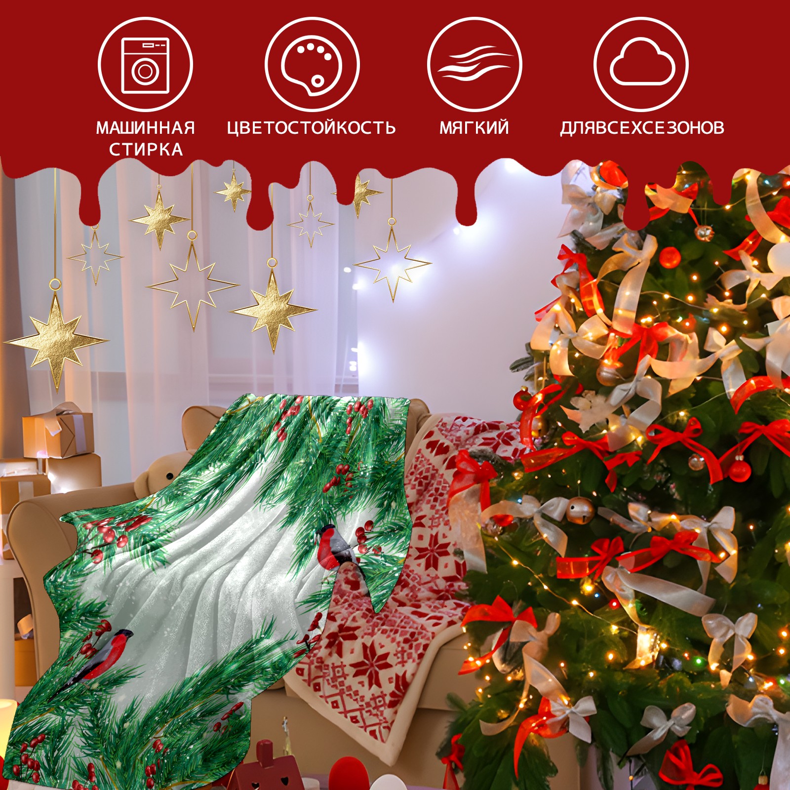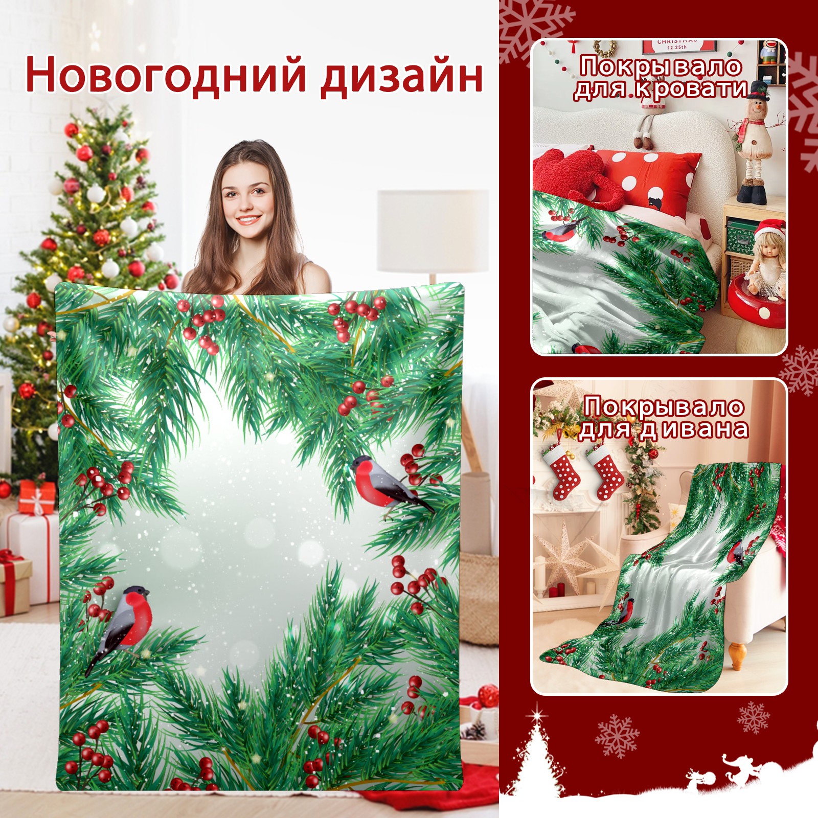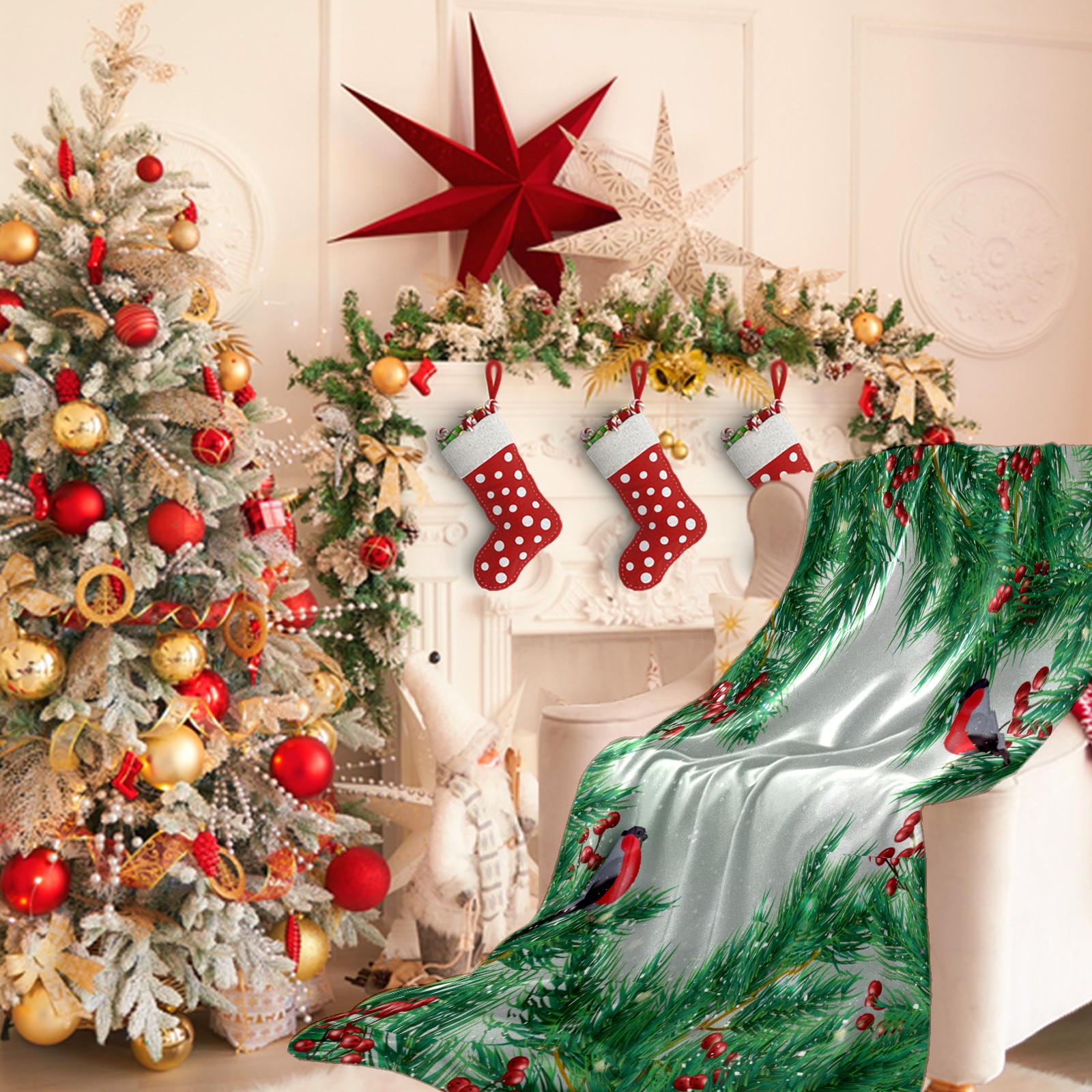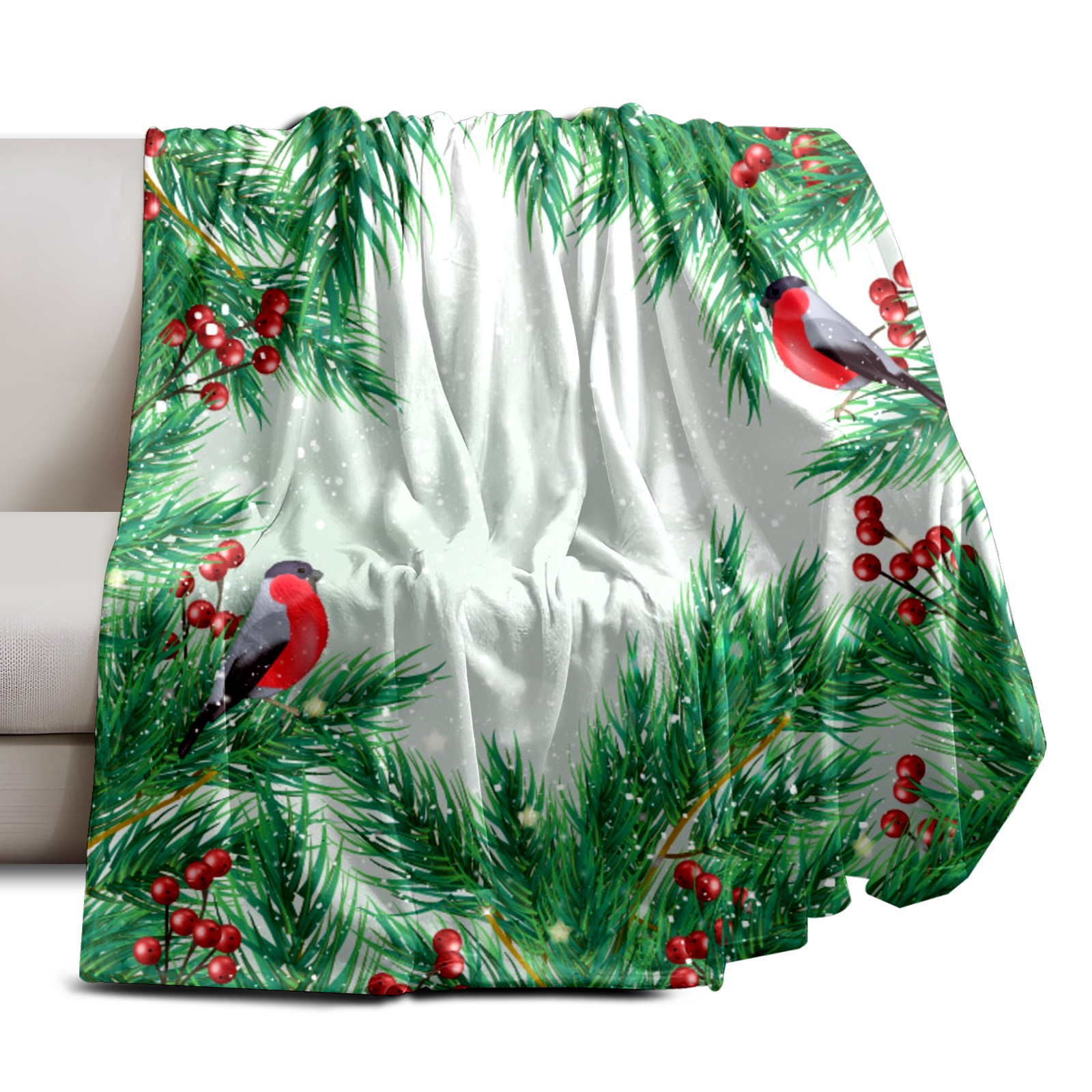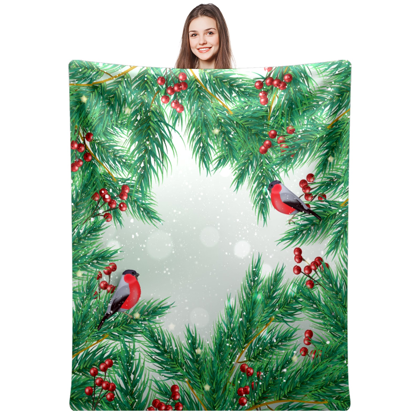 Flannel Blanket, Ultra-Soft Comfortable Home Decor Rug, The Perfect Comfort Gift for Both Men Women, Suitable for Beds, Sofas, Loungewear, and Travel 30x39in(Christmas Holly Berries Cardinal Birds)
