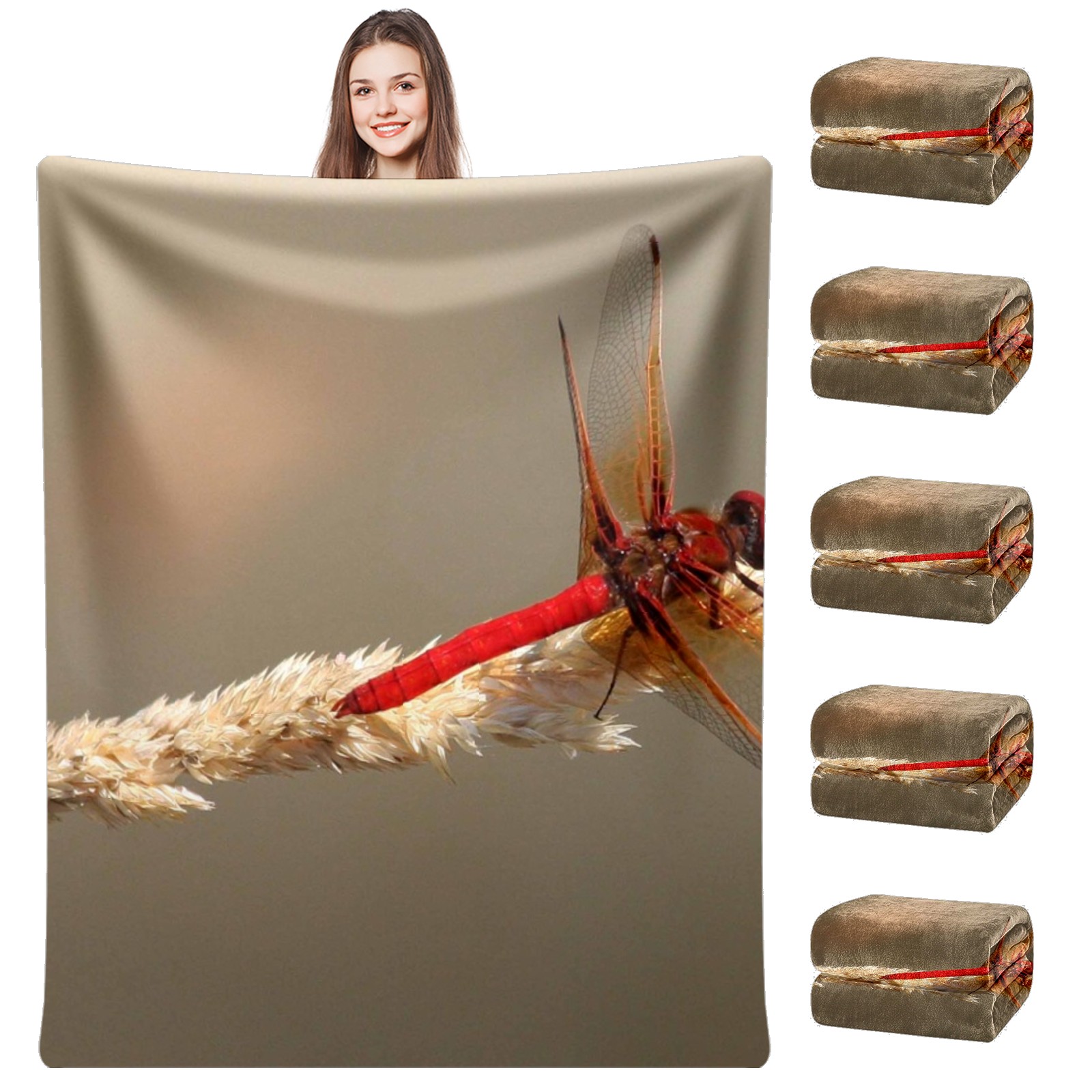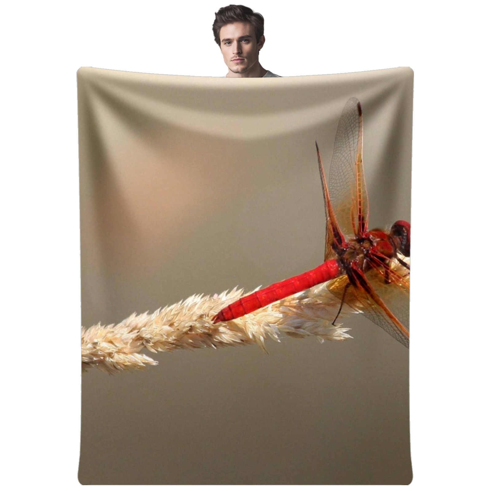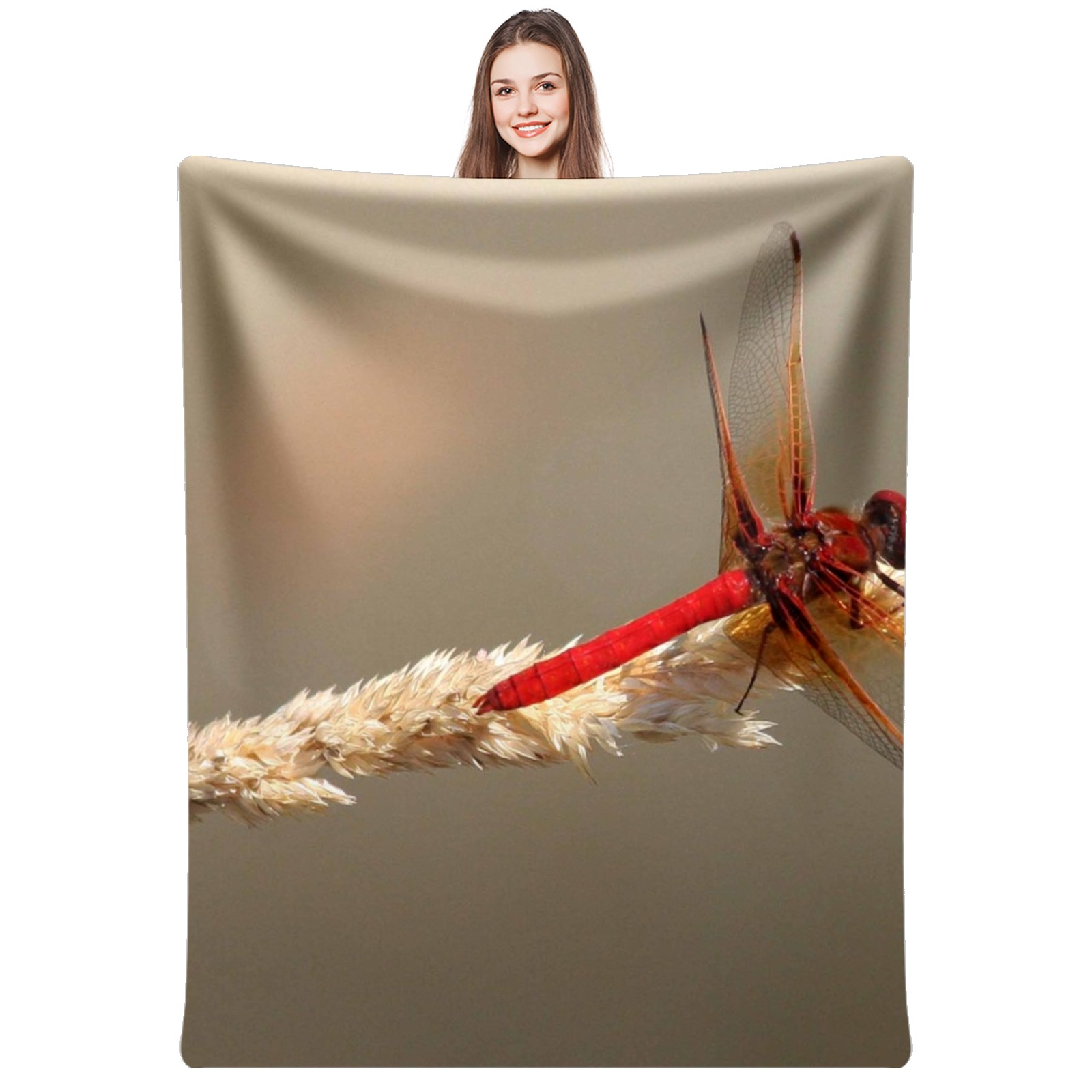 Flannel Blanket, Ultra-Soft Comfortable Home Decor Rug, The Perfect Comfort Gift for Both Men Women, Suitable for Beds, Sofas, Loungewear, and Travel 30x39in(Cardinal Red Dragonfly)