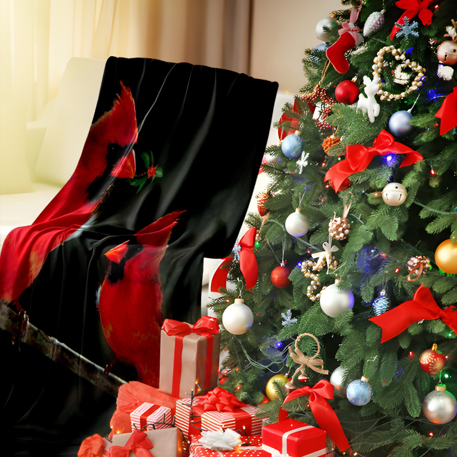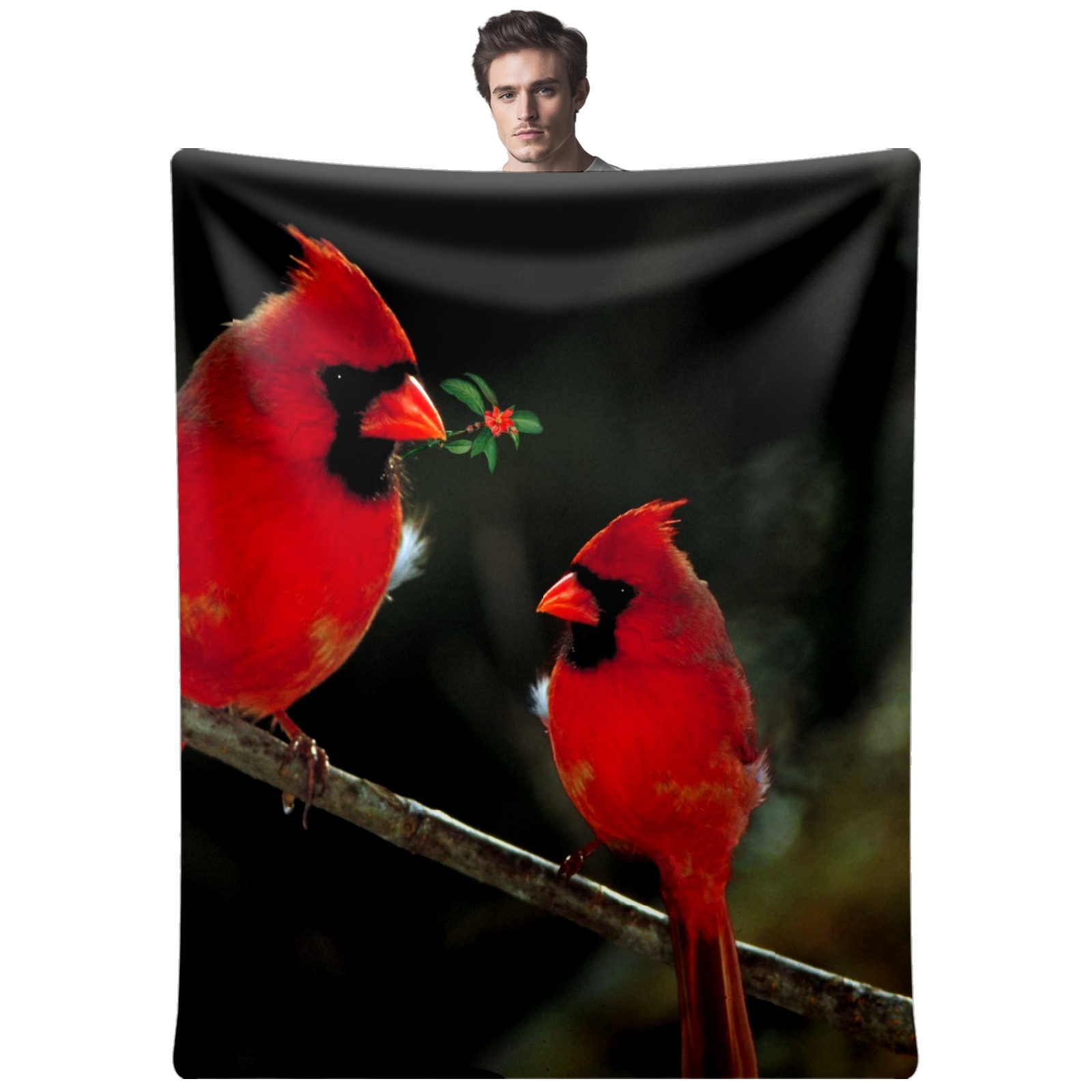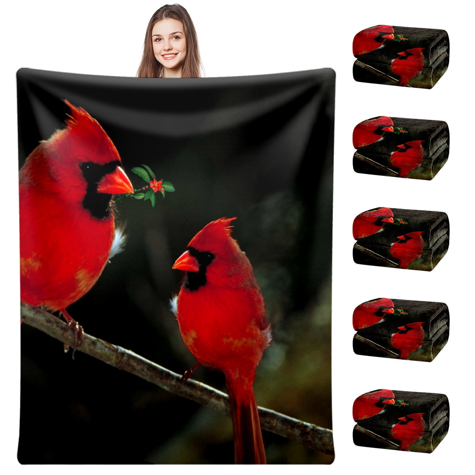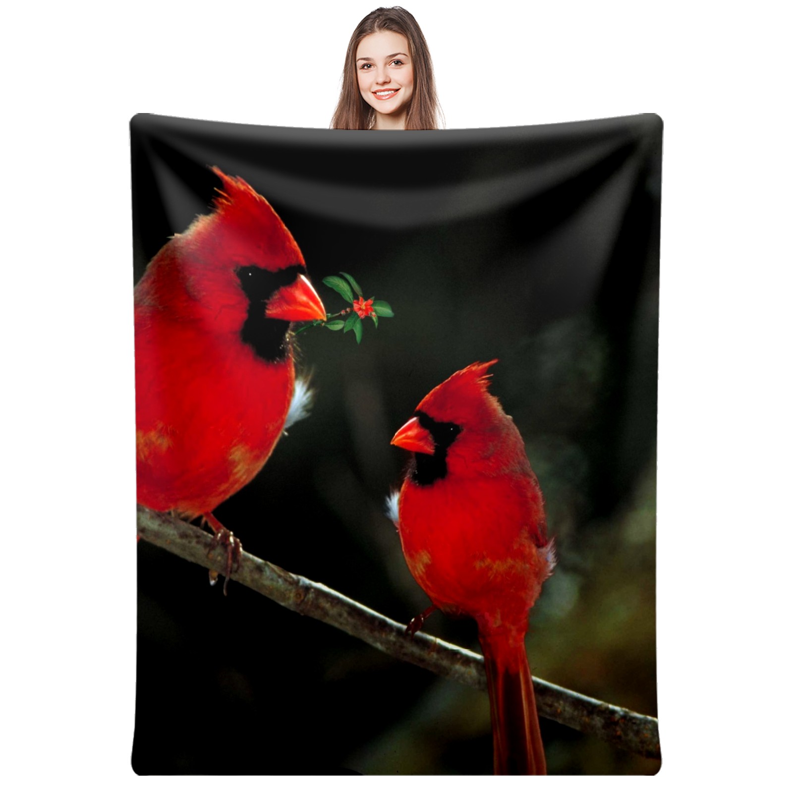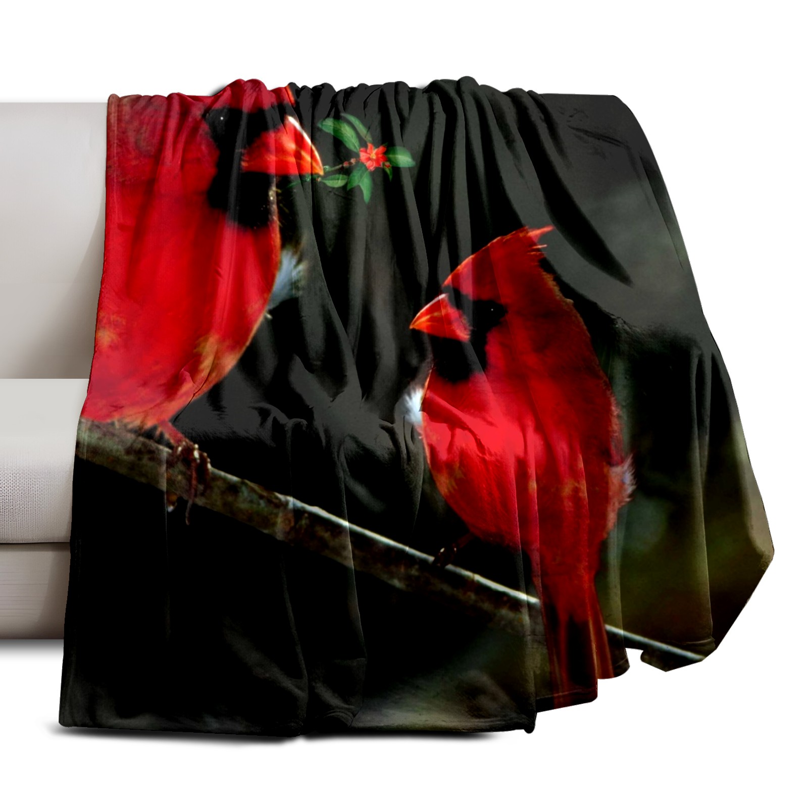 Flannel Blanket, Ultra-Soft Comfortable Home Decor Rug, The Perfect Comfort Gift for Both Men Women, Suitable for Beds, Sofas, Loungewear, and Travel 30x39in(Cardinal Birds Couple Holly Berries)