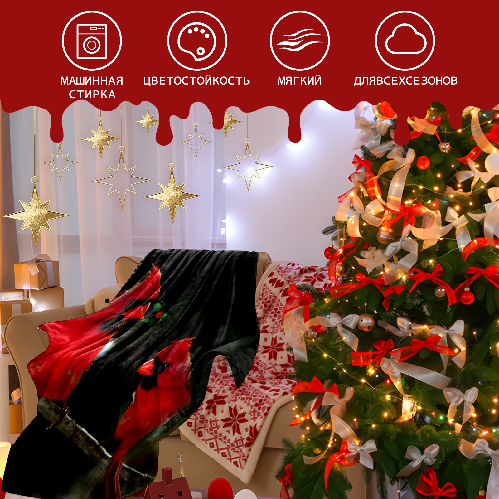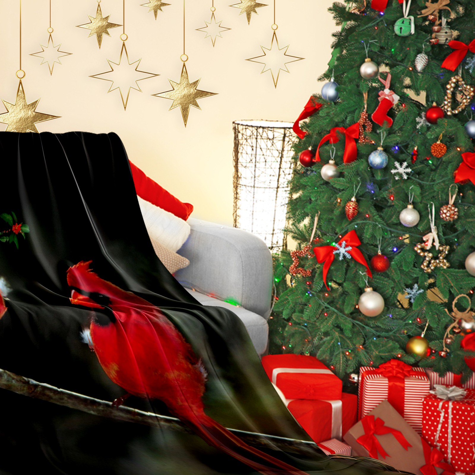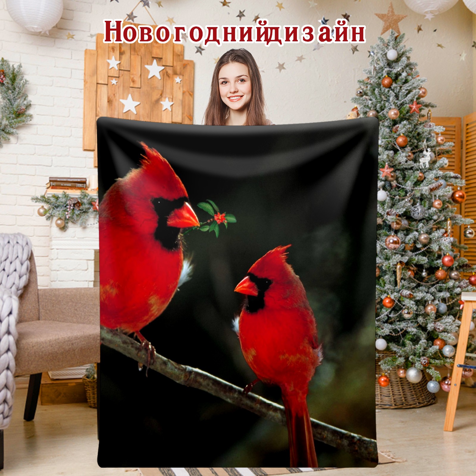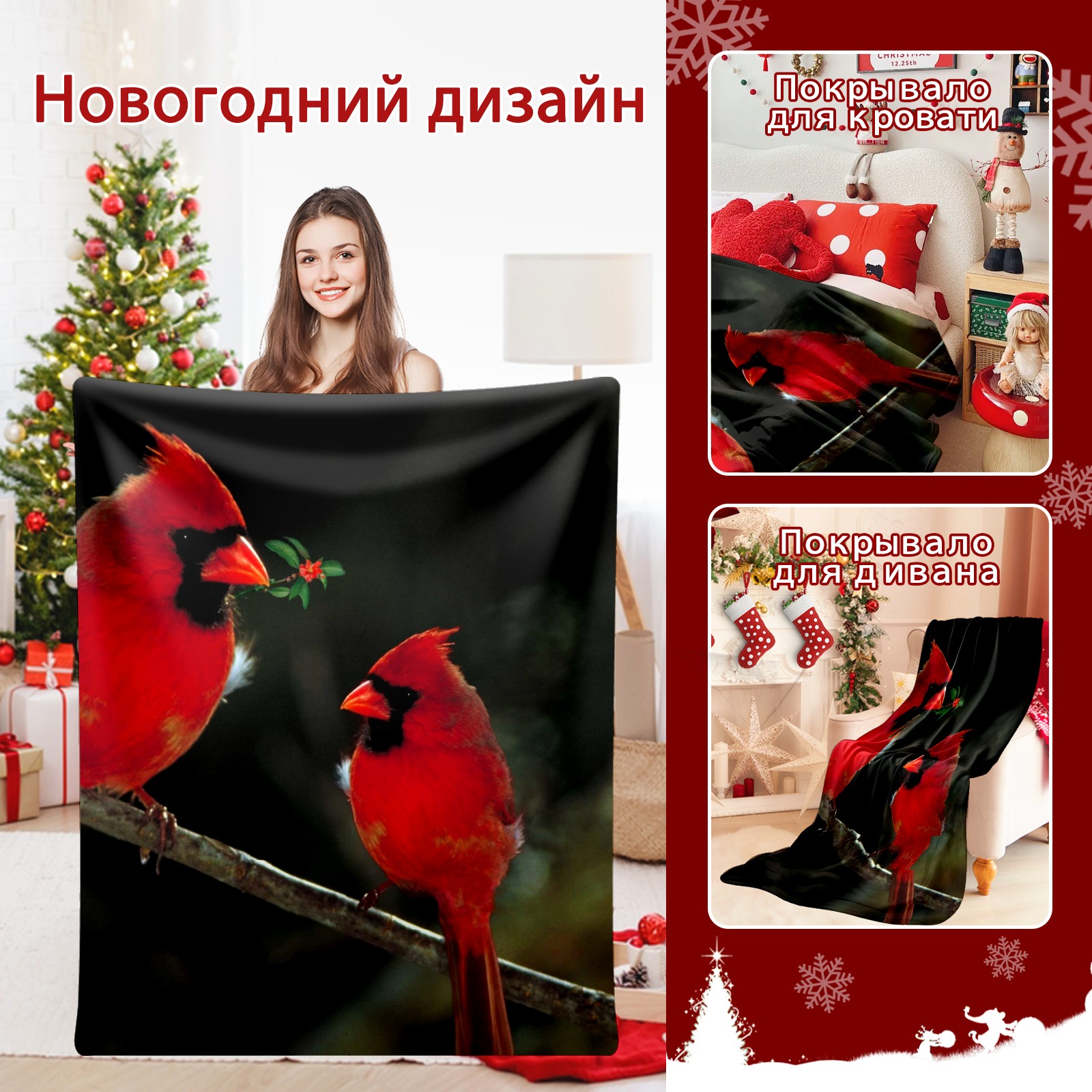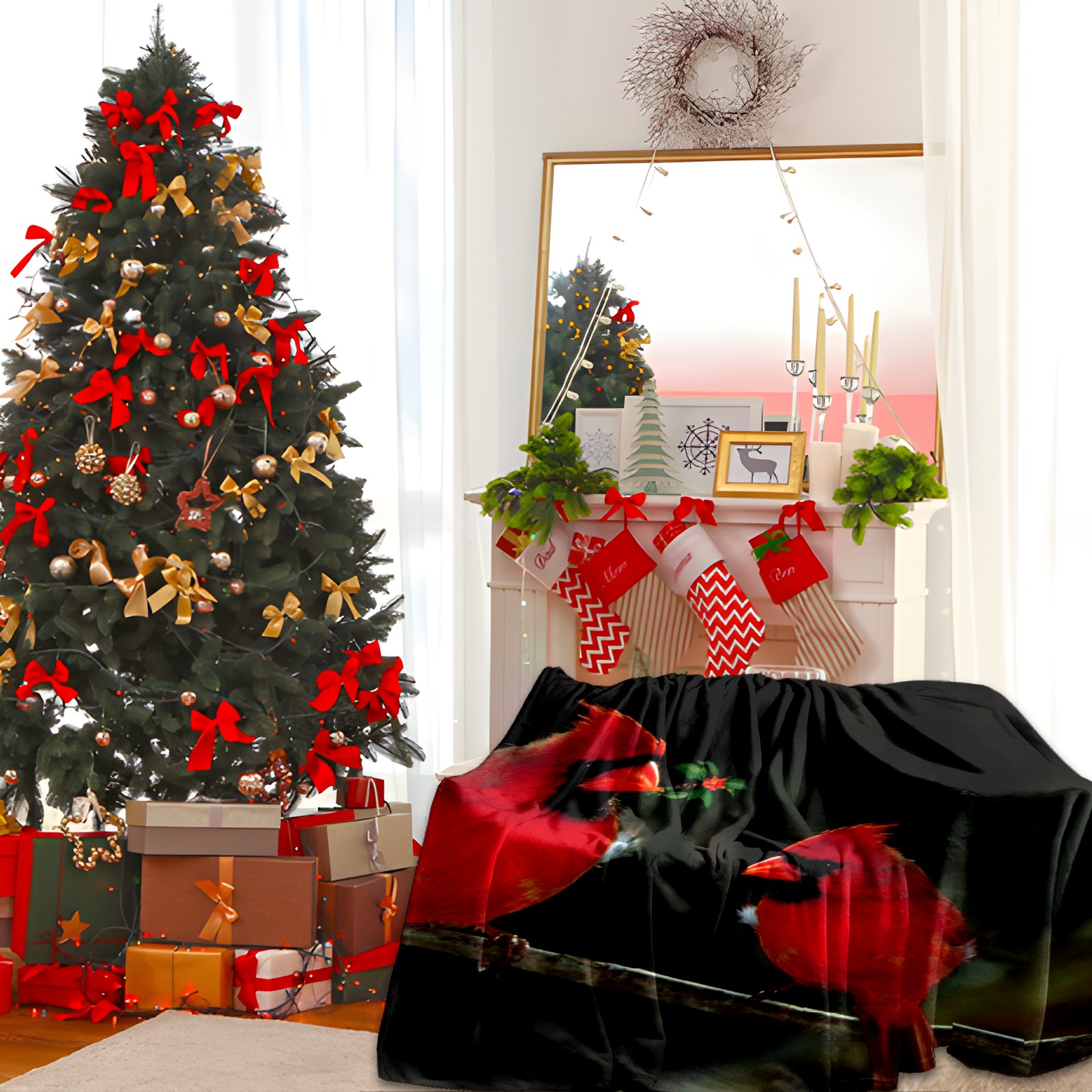 Flannel Blanket, Ultra-Soft Comfortable Home Decor Rug, The Perfect Comfort Gift for Both Men Women, Suitable for Beds, Sofas, Loungewear, and Travel 30x39in(Cardinal Birds Couple Holly Berries)