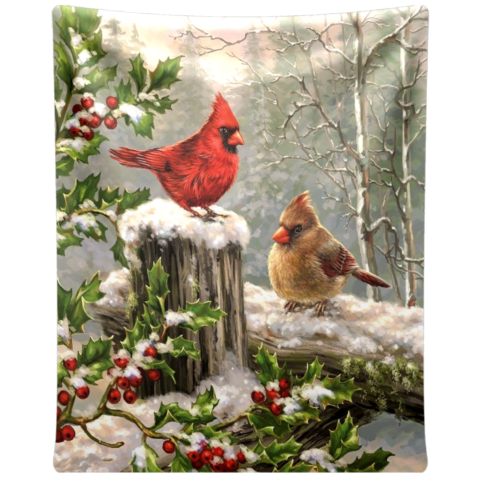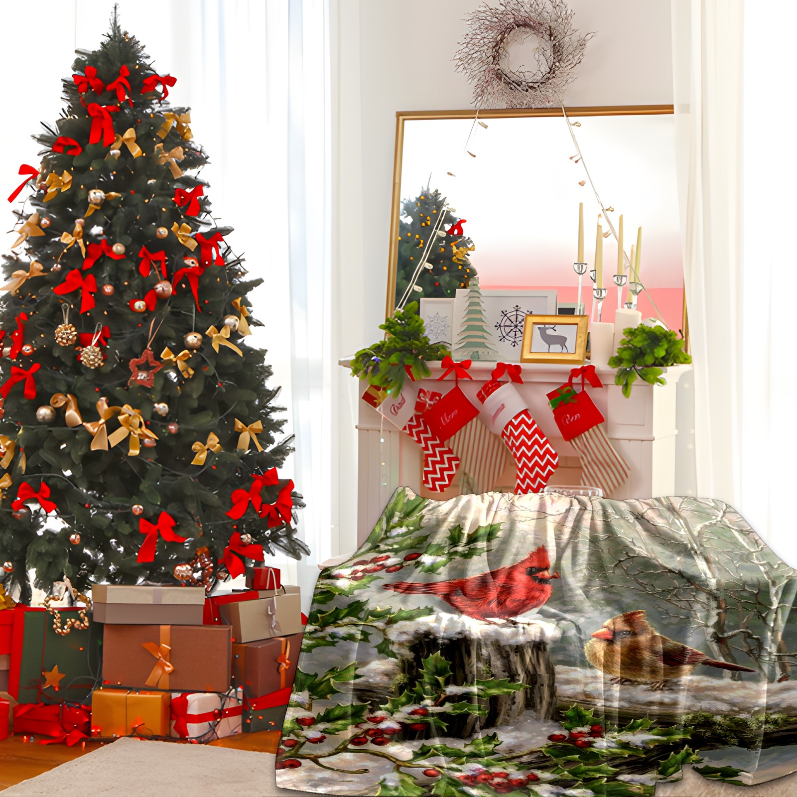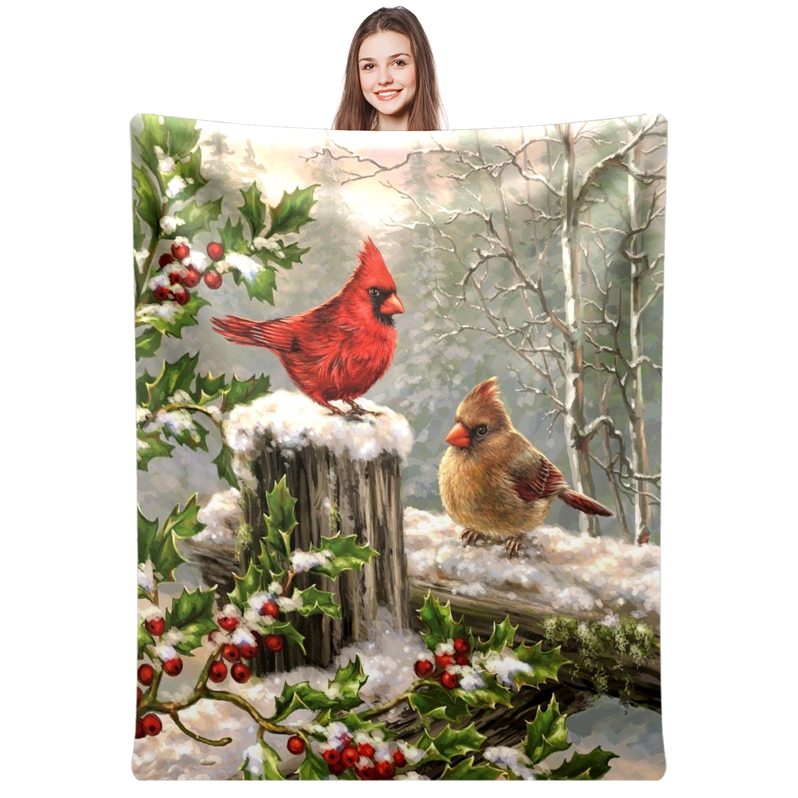 Flannel Blanket, Ultra-Soft Comfortable Home Decor Rug, The Perfect Comfort Gift for Both Men Women, Suitable for Beds, Sofas, Loungewear, and Travel 30x39in(Christmas Winter Cardinal Birds)
