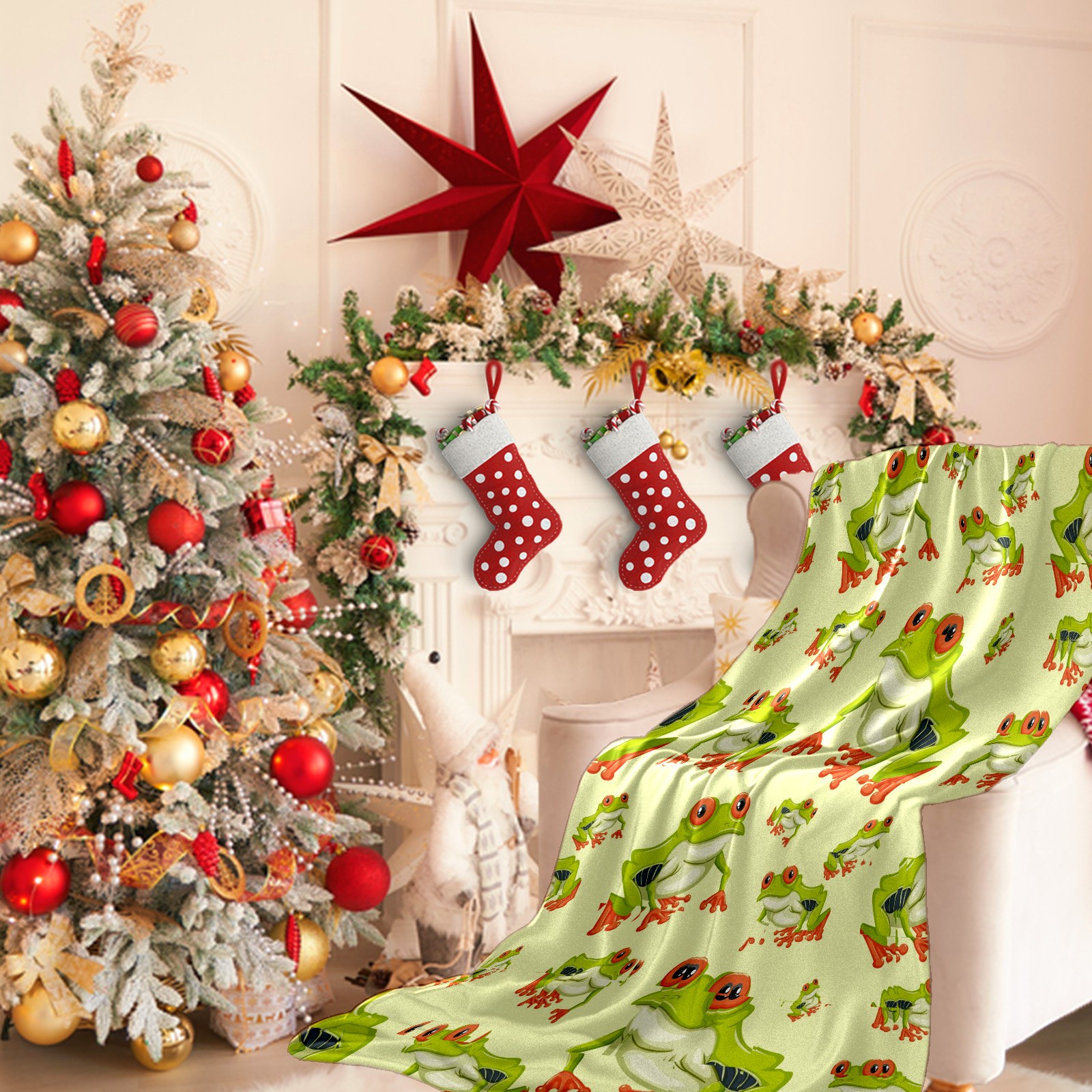 Flannel Blanket, Ultra-Soft Comfortable Home Decor Rug, The Perfect Comfort Gift for Both Men Women, Suitable for Beds, Sofas, Loungewear, and Travel 30x39in(Tree Frog)