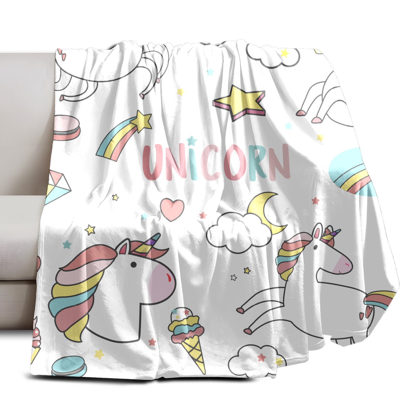 Flannel Blanket, Ultra-Soft Comfortable Home Decor Rug, The Perfect Comfort Gift for Both Men Women, Suitable for Beds, Sofas, Loungewear, and Travel 30x39in(Cute Unicorns)