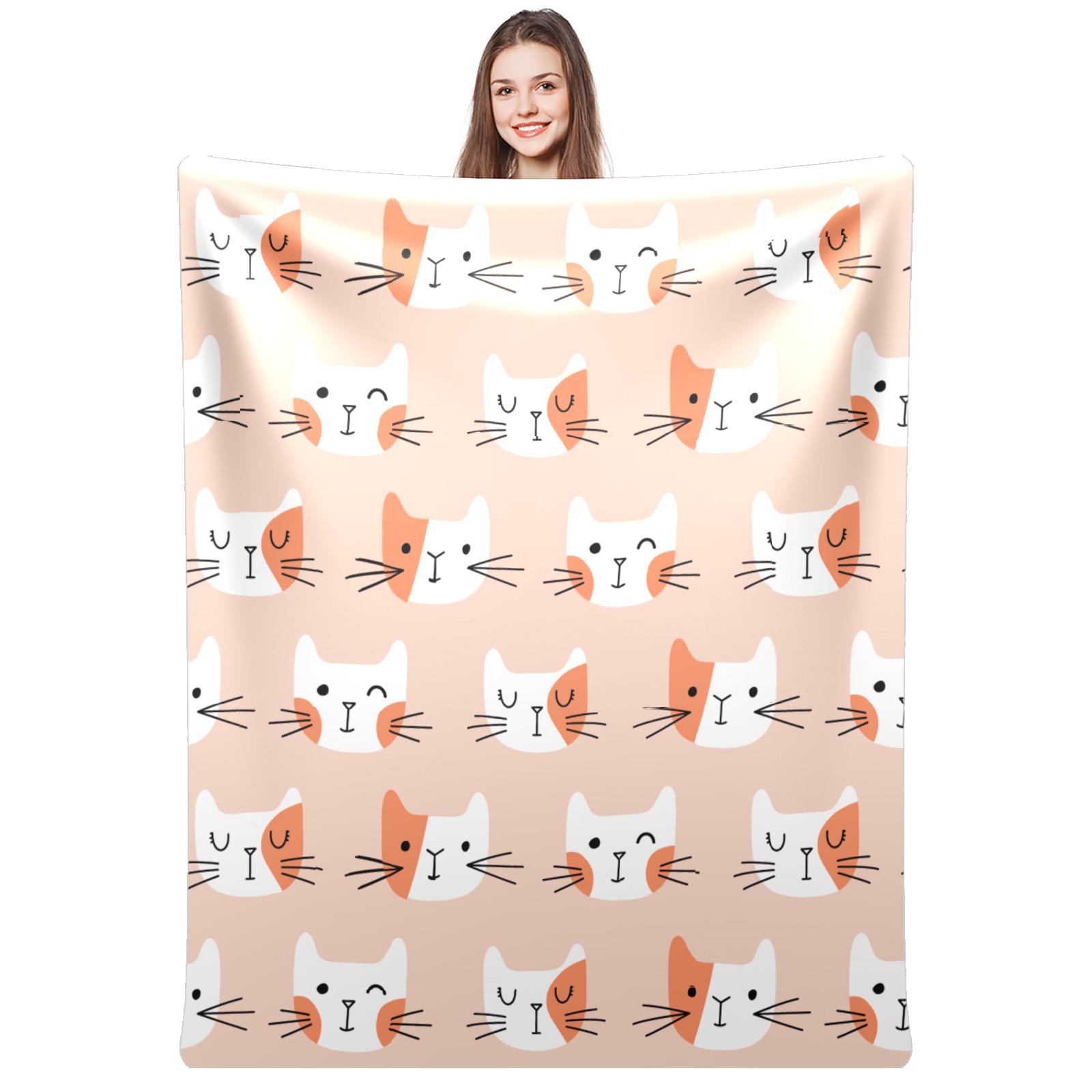 Flannel Blanket, Ultra-Soft Comfortable Home Decor Rug, The Perfect Comfort Gift for Both Men Women, Suitable for Beds, Sofas, Loungewear, and Travel 30x39in(Cute Cats Faces)