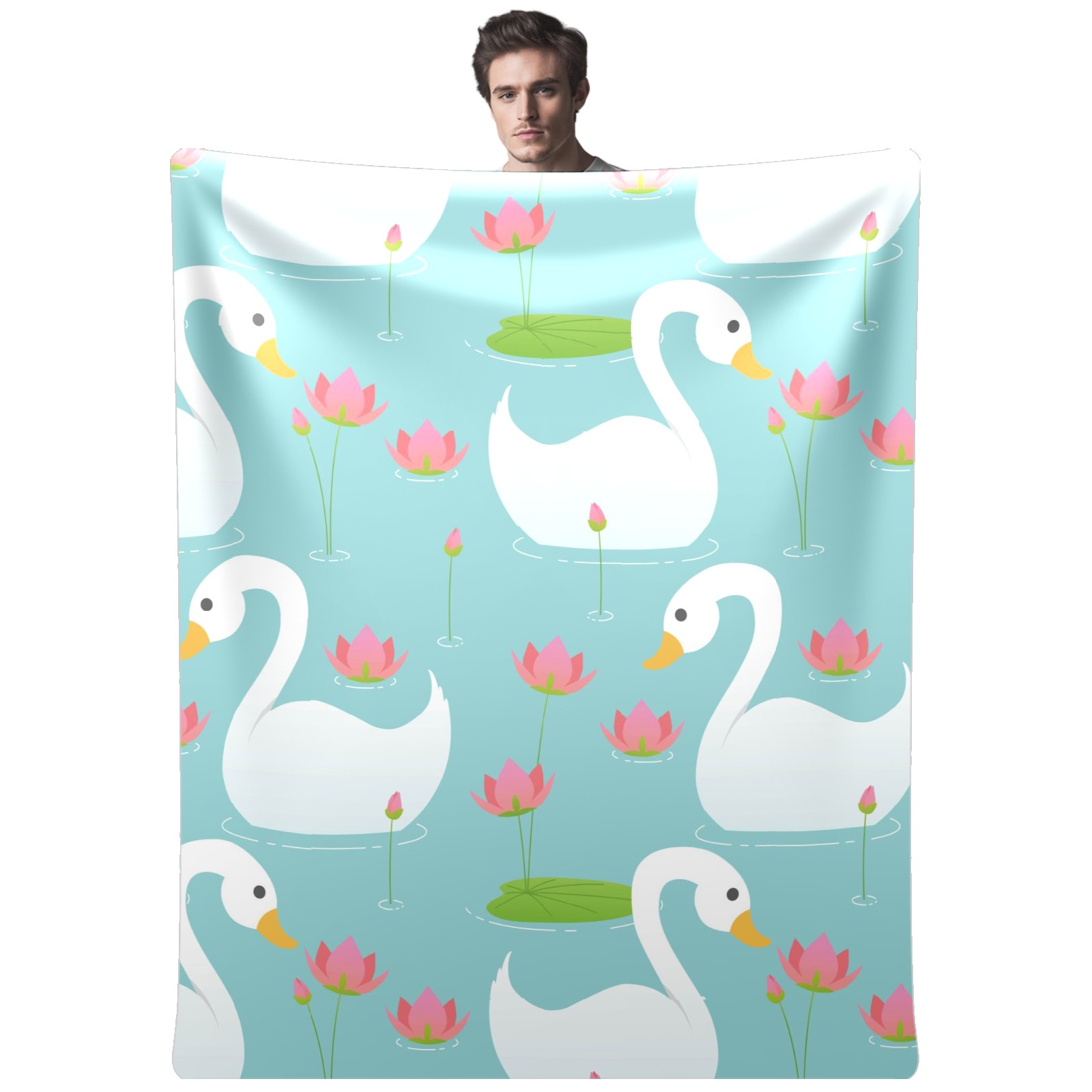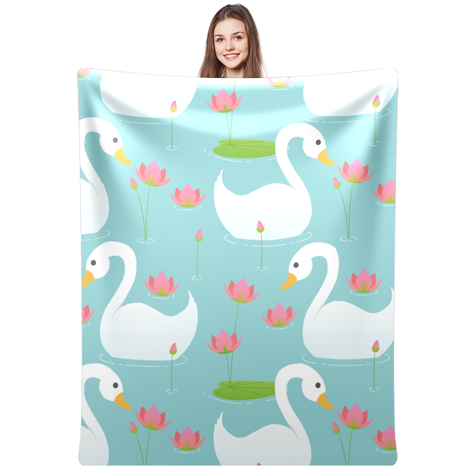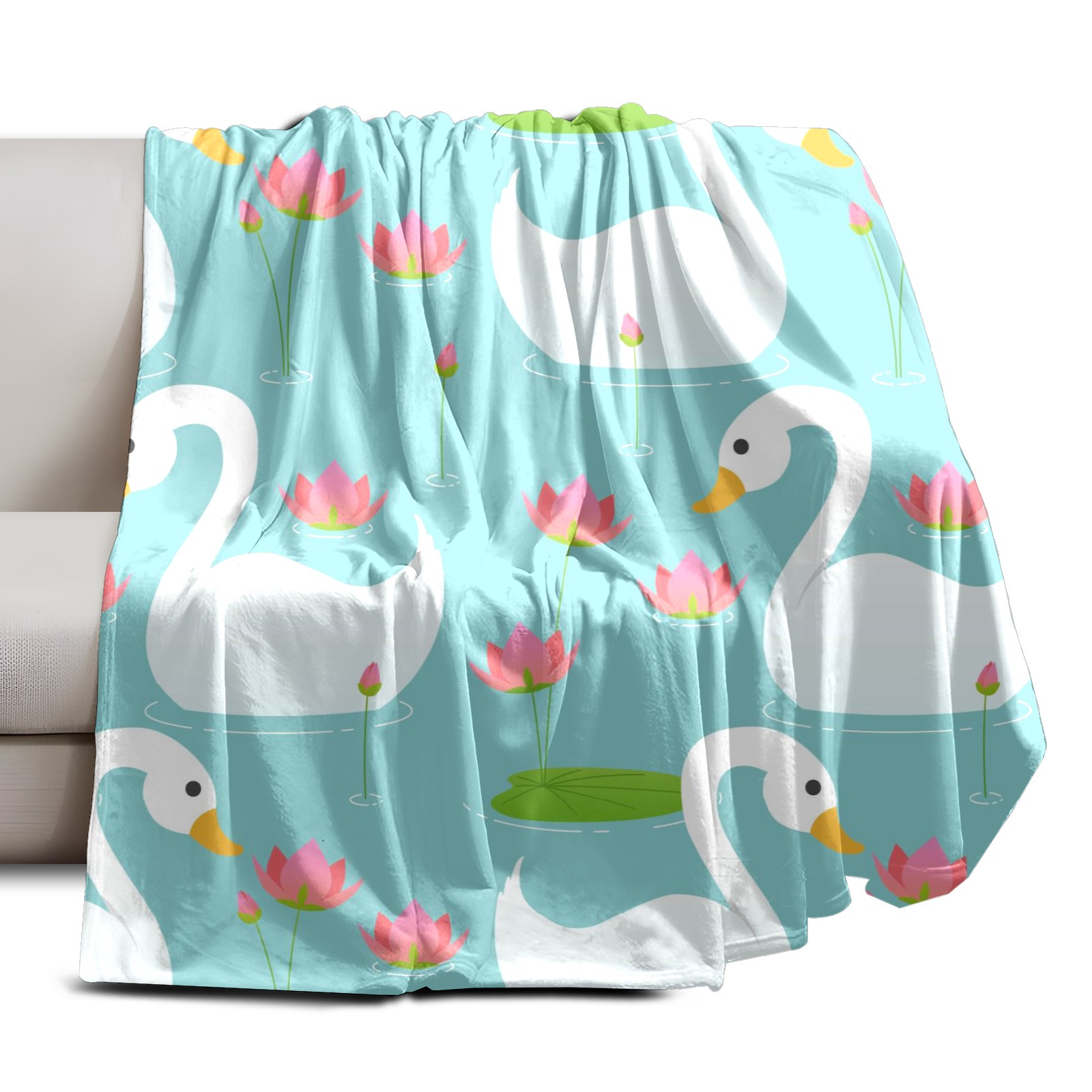 Flannel Blanket, Ultra-Soft Comfortable Home Decor Rug, The Perfect Comfort Gift for Both Men Women, Suitable for Beds, Sofas, Loungewear, and Travel 30x39in(White Swan Playing Lotus Flower Pool)
