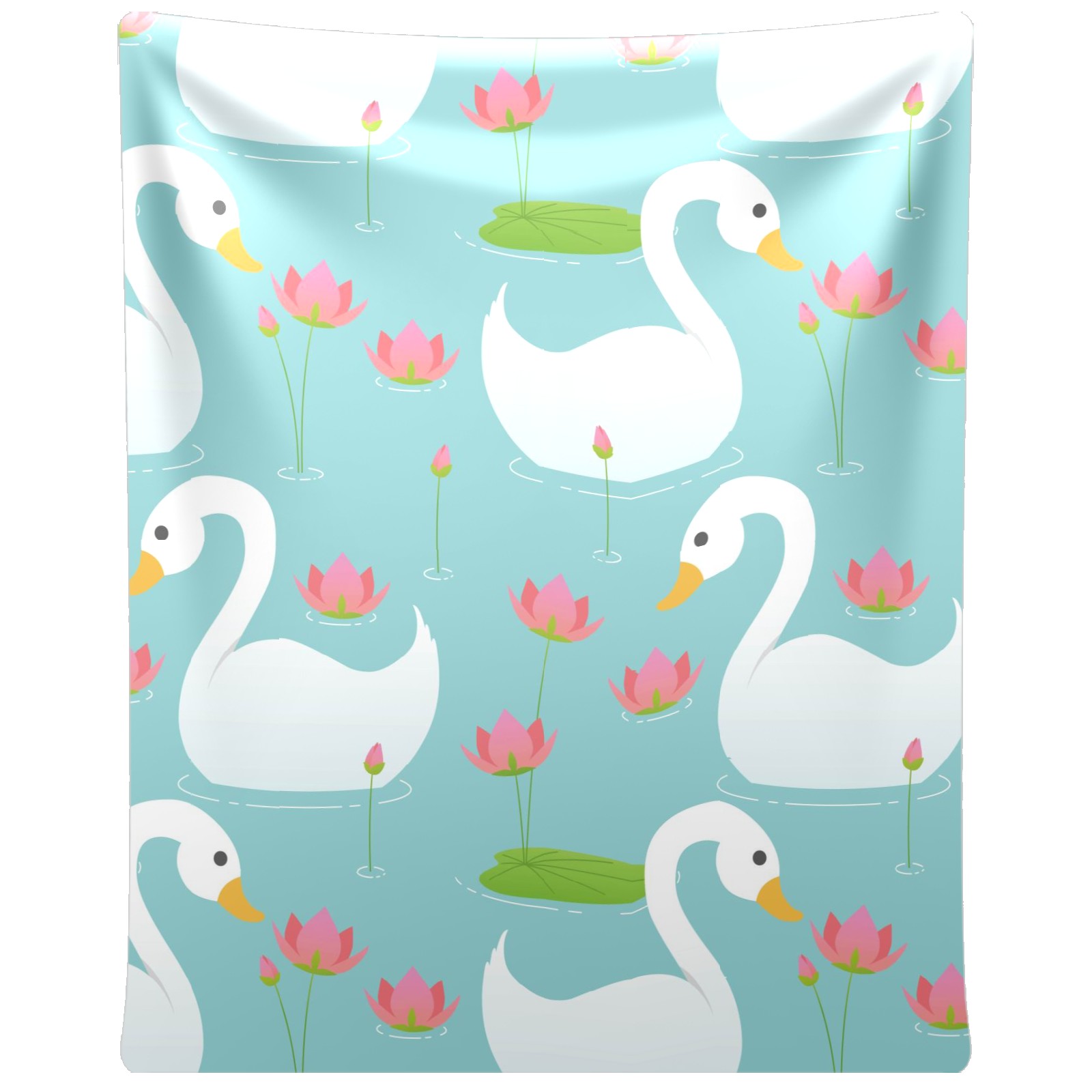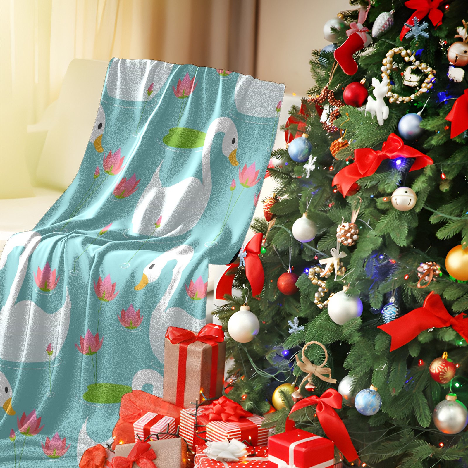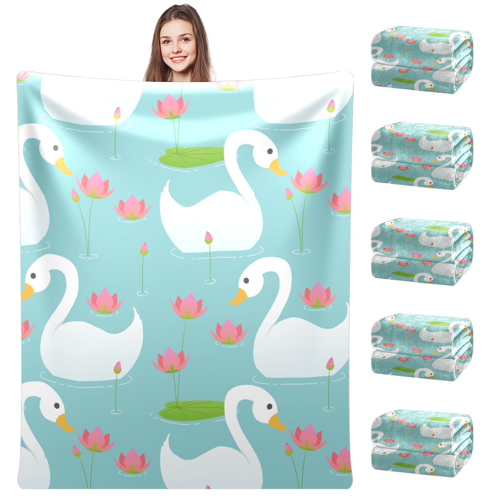 Flannel Blanket, Ultra-Soft Comfortable Home Decor Rug, The Perfect Comfort Gift for Both Men Women, Suitable for Beds, Sofas, Loungewear, and Travel 30x39in(White Swan Playing Lotus Flower Pool)