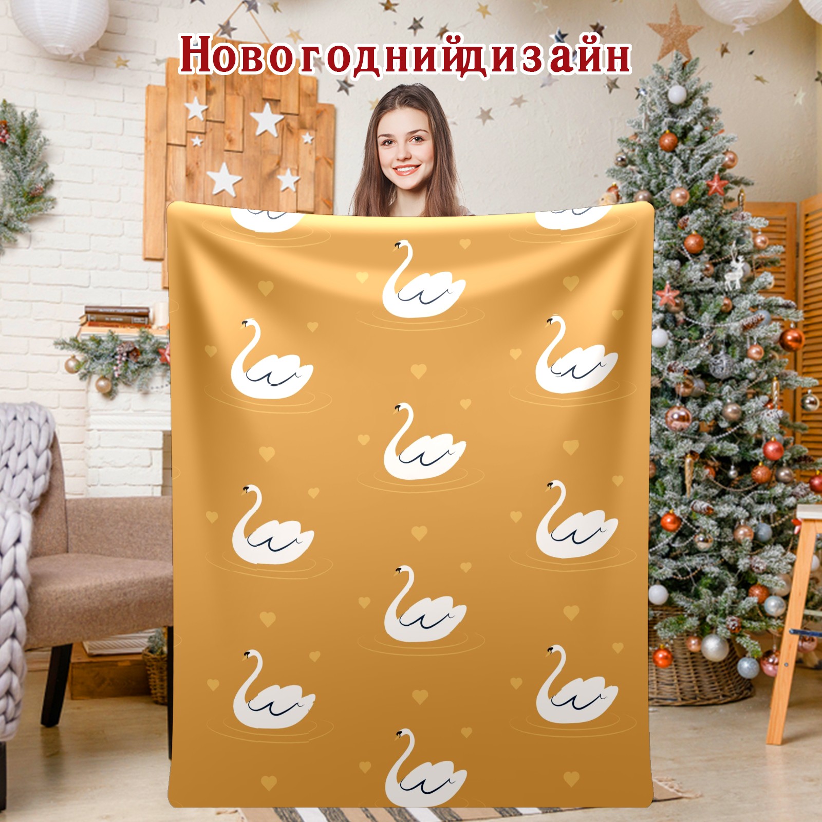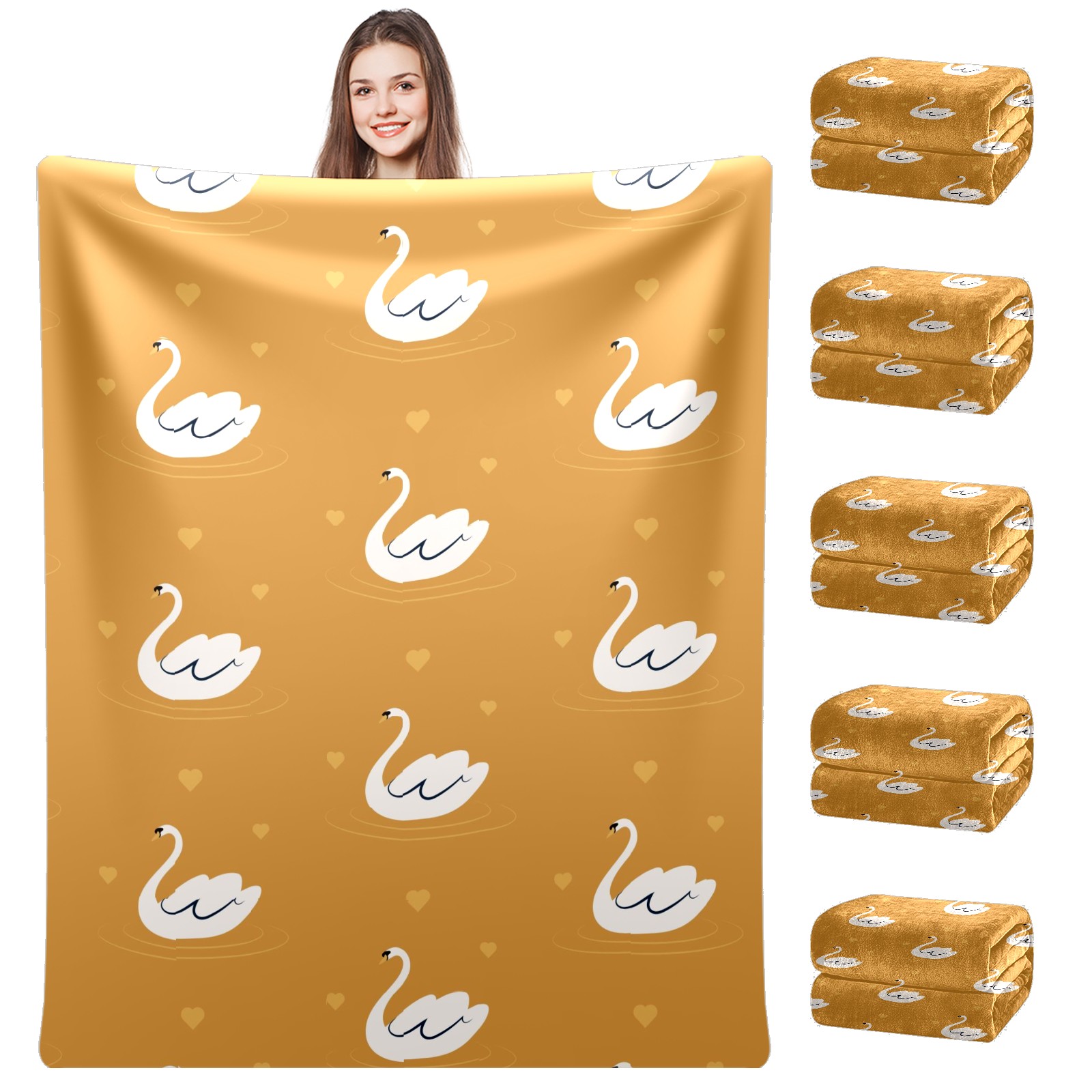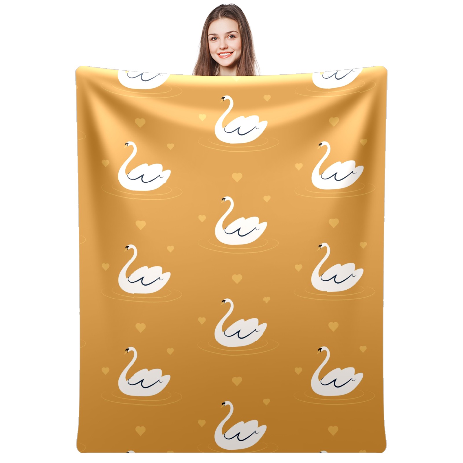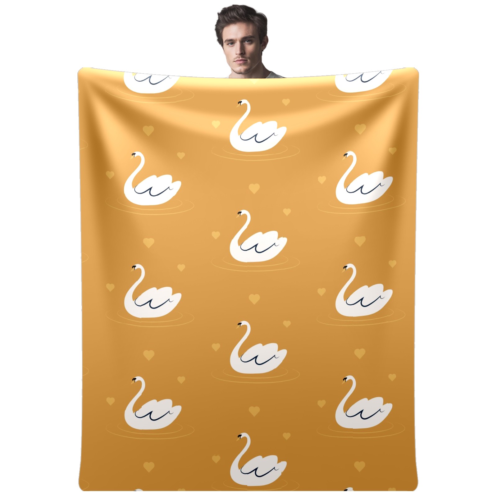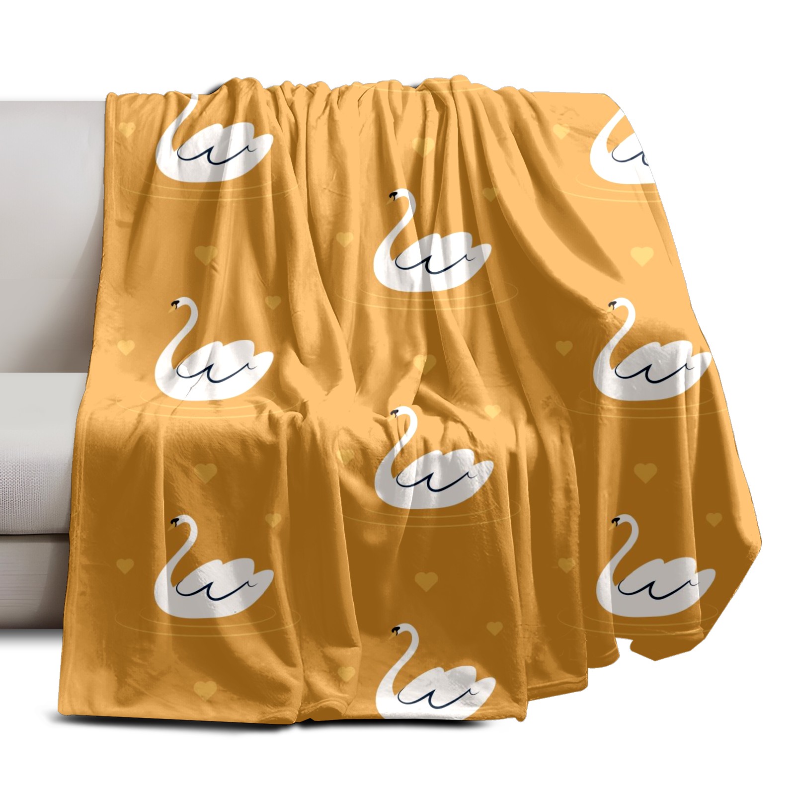 Flannel Blanket, Ultra-Soft Comfortable Home Decor Rug, The Perfect Comfort Gift for Both Men Women, Suitable for Beds, Sofas, Loungewear, and Travel 30x39in(White Swan Pattern Yellow Background)