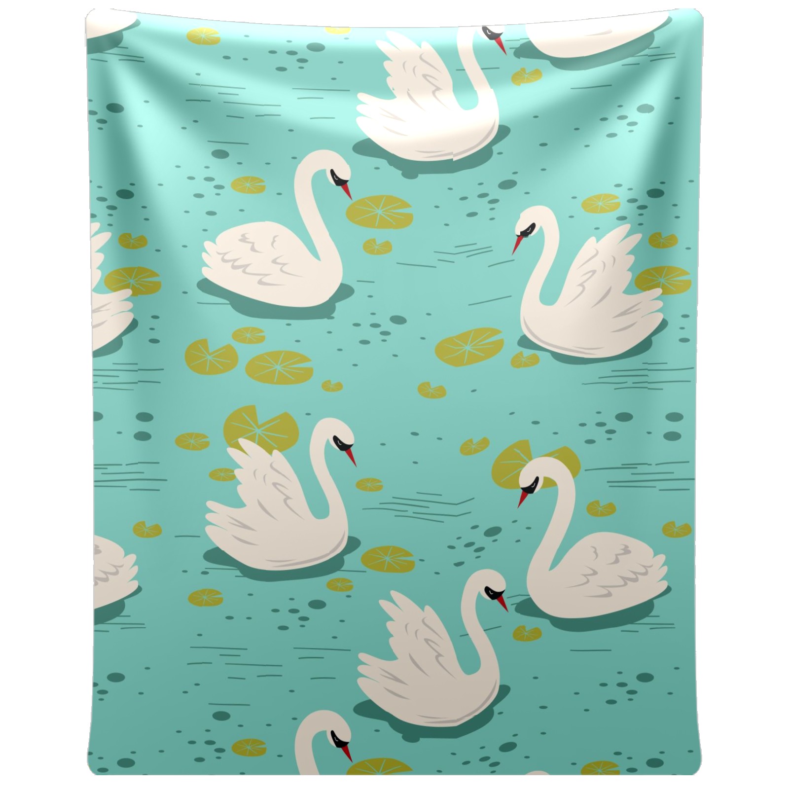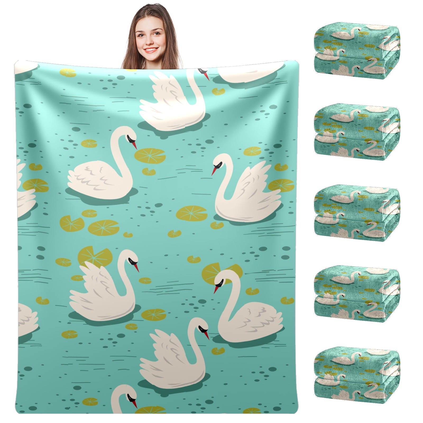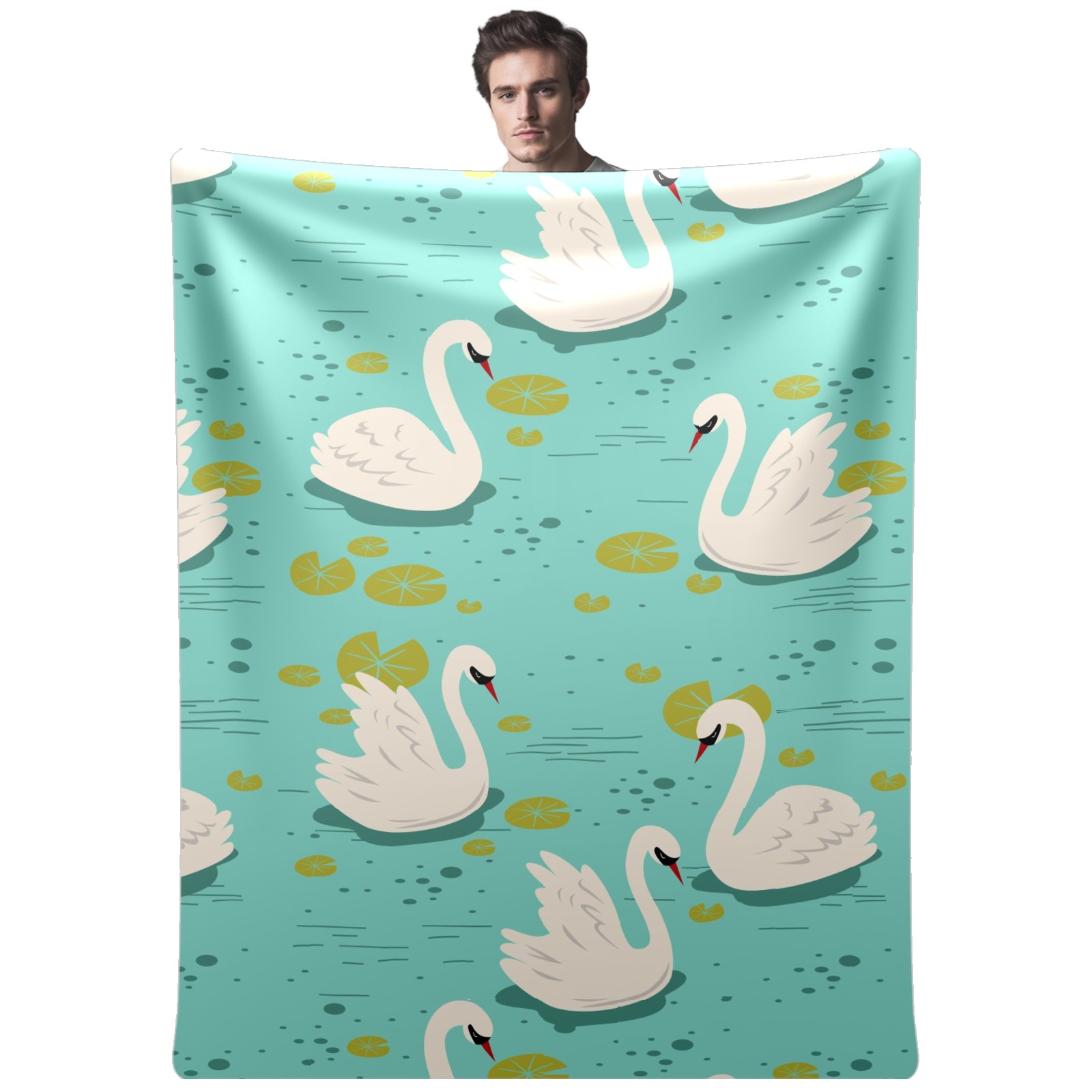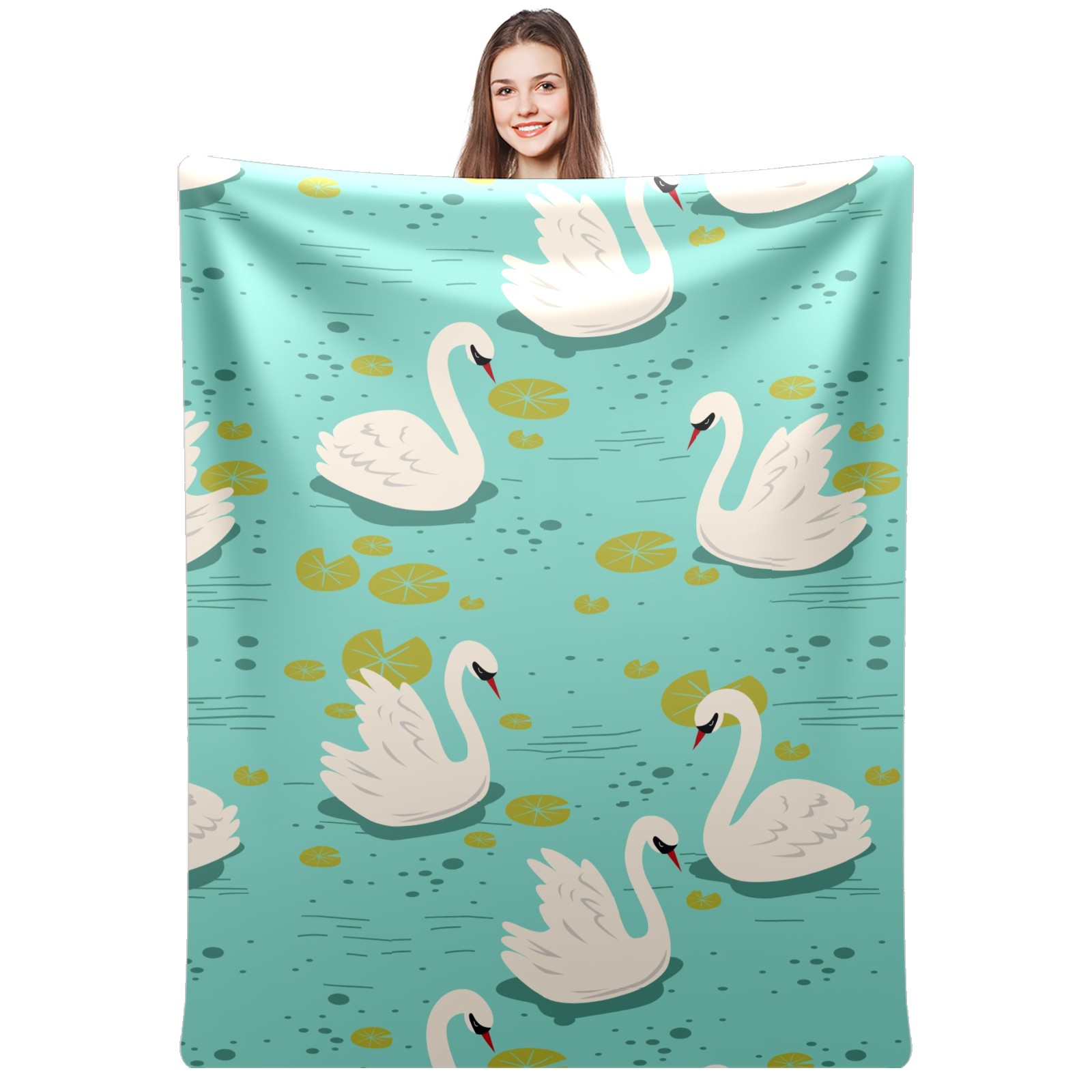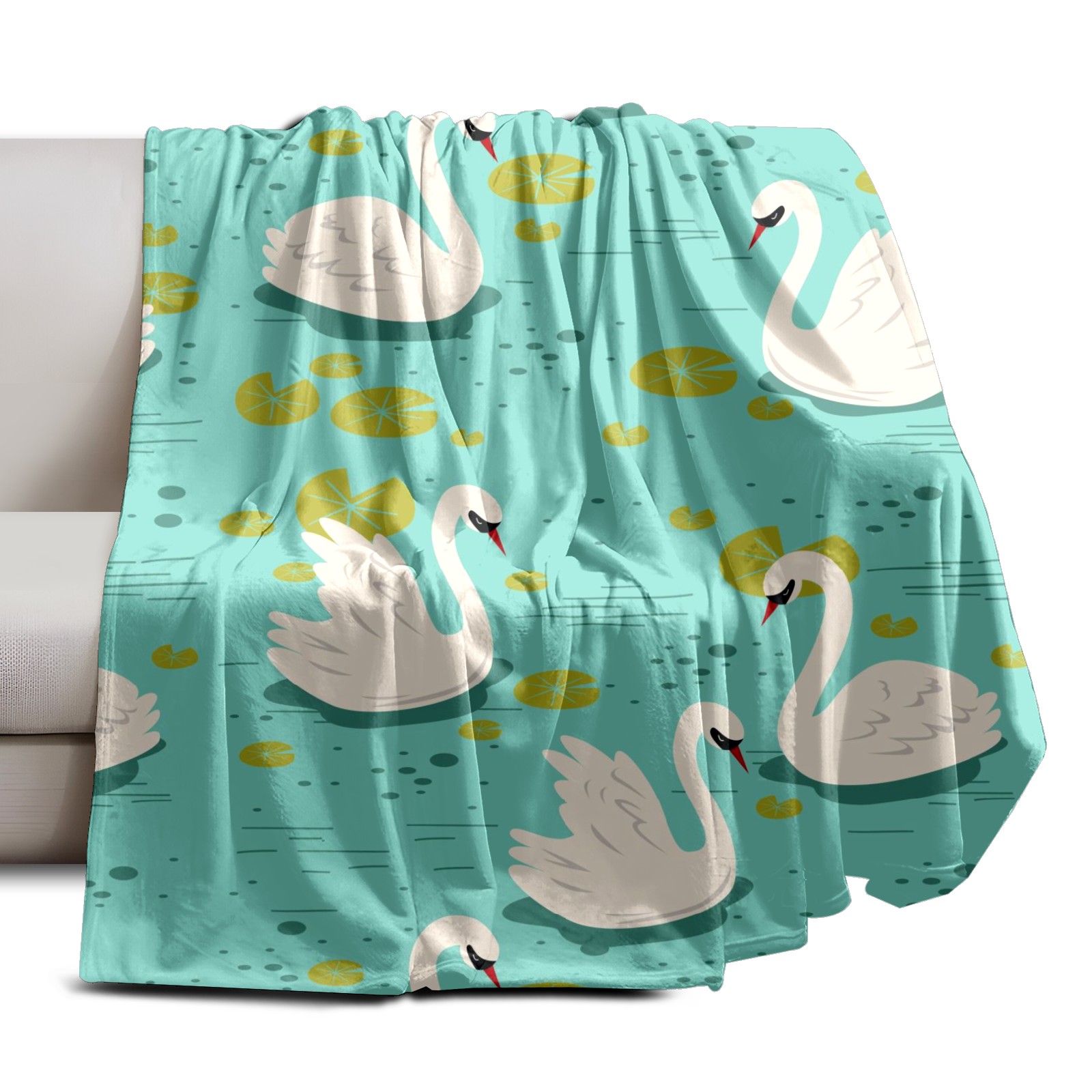 Flannel Blanket, Ultra-Soft Comfortable Home Decor Rug, The Perfect Comfort Gift for Both Men Women, Suitable for Beds, Sofas, Loungewear, and Travel 30x39in(White Swan Pattern Swim In The Pool Blue)