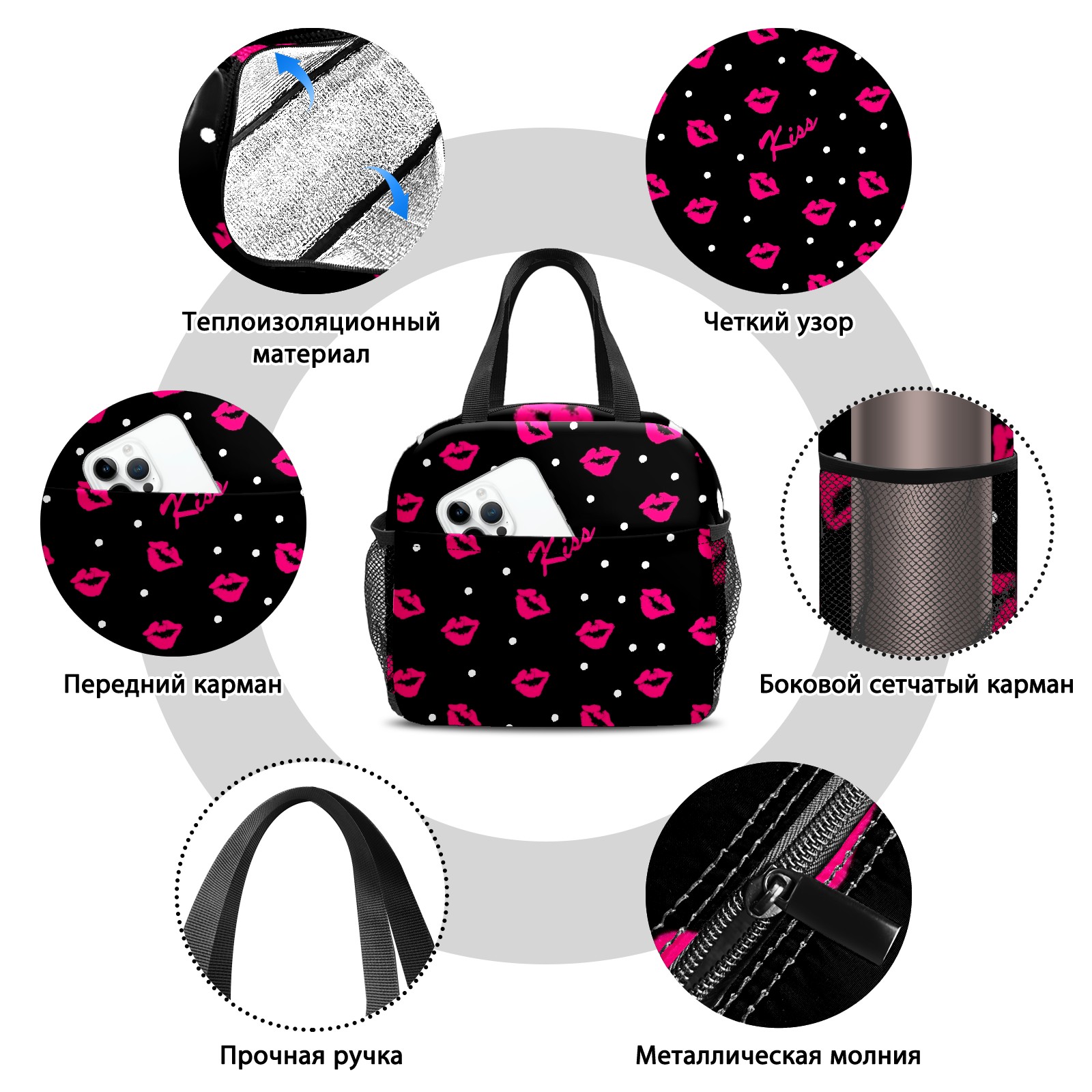 Lunch Bag,Lunch Box for Women Men,Pink Lip Reusable Insulated Lunch Tote,Small Leakproof Cute Lunch Cooler with High Capacity for Work,Picnic,Camping