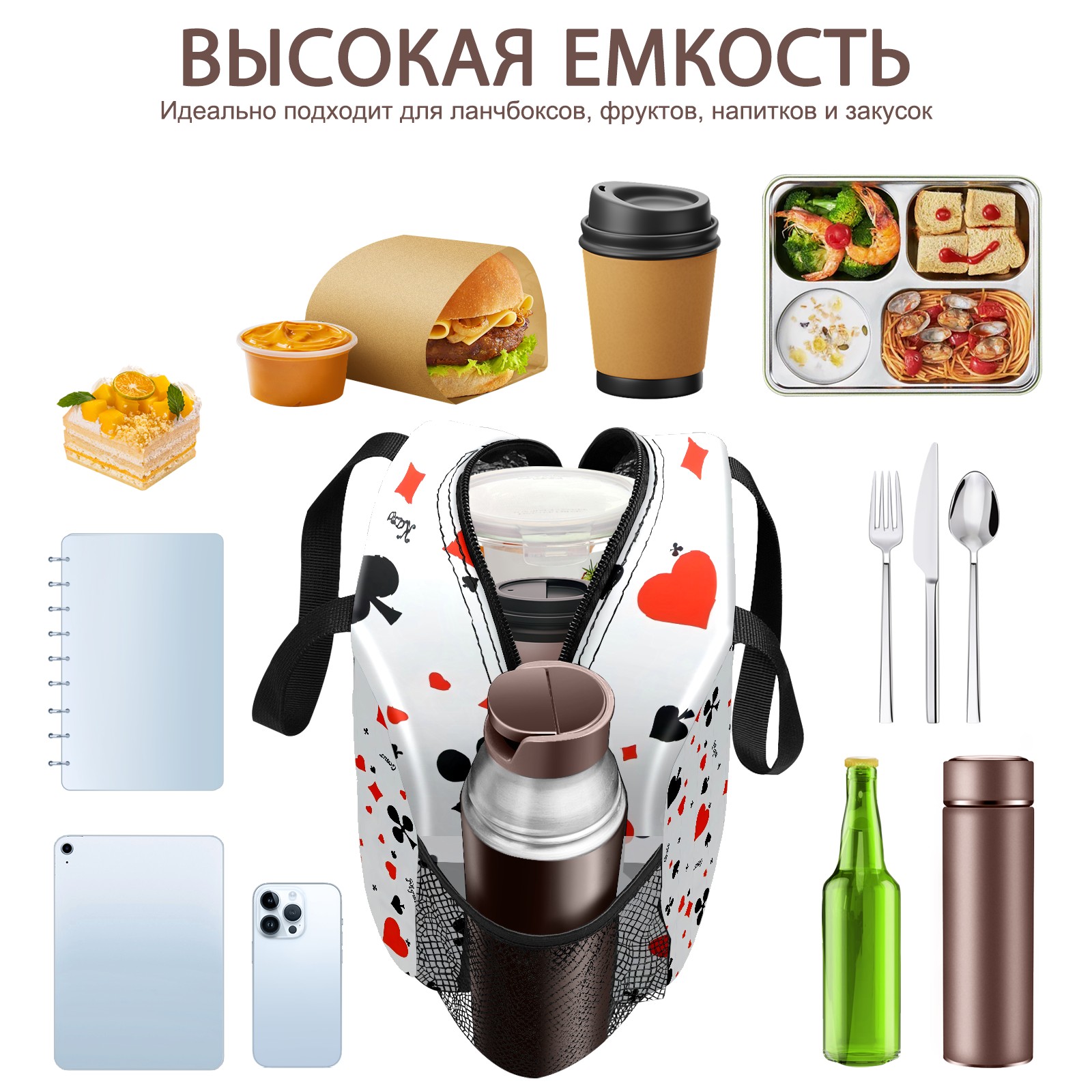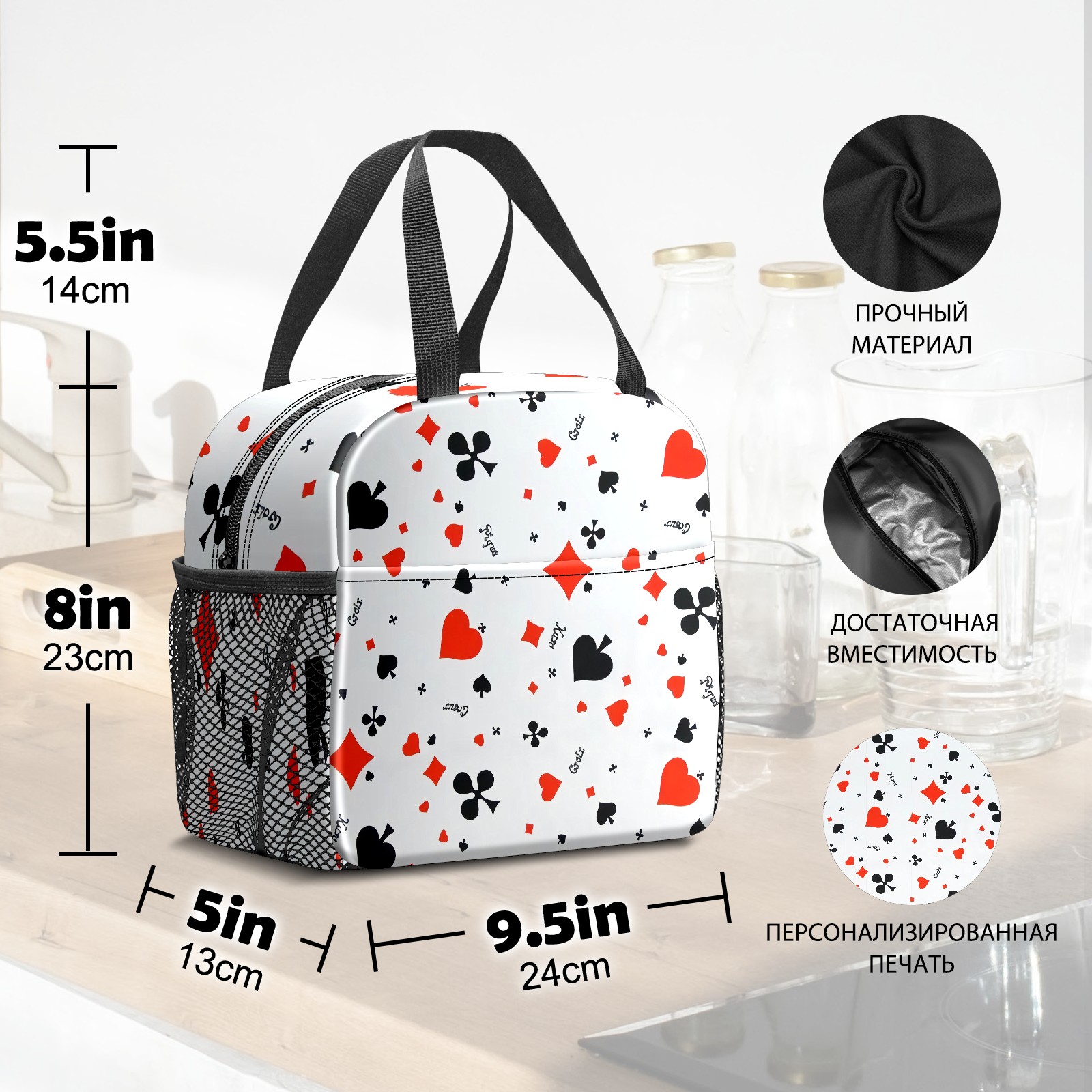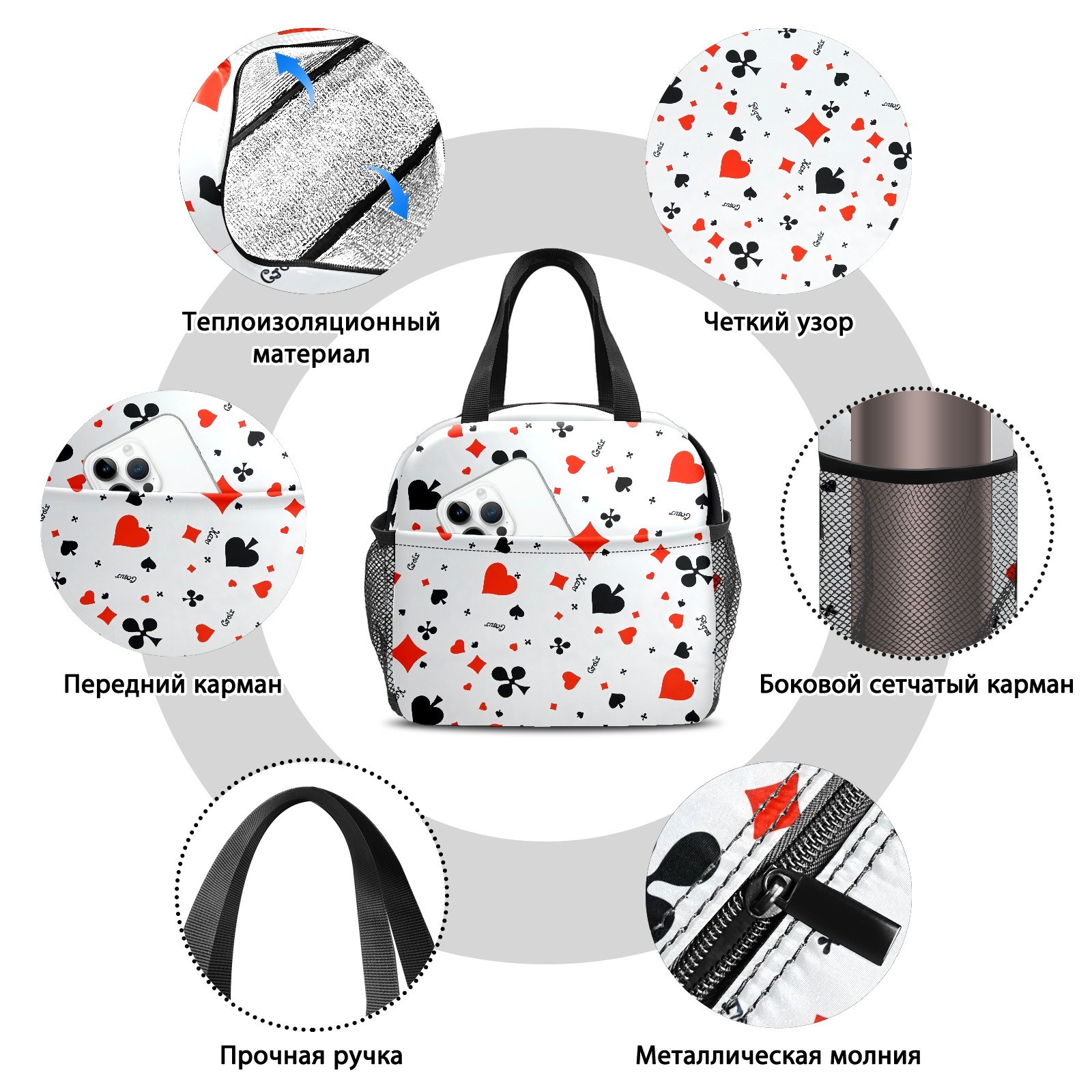 Lunch Bag,Lunch Box for Women Men,Poker Reusable Insulated Lunch Tote,Small Leakproof Cute Lunch Cooler with High Capacity for Work,Picnic,Camping