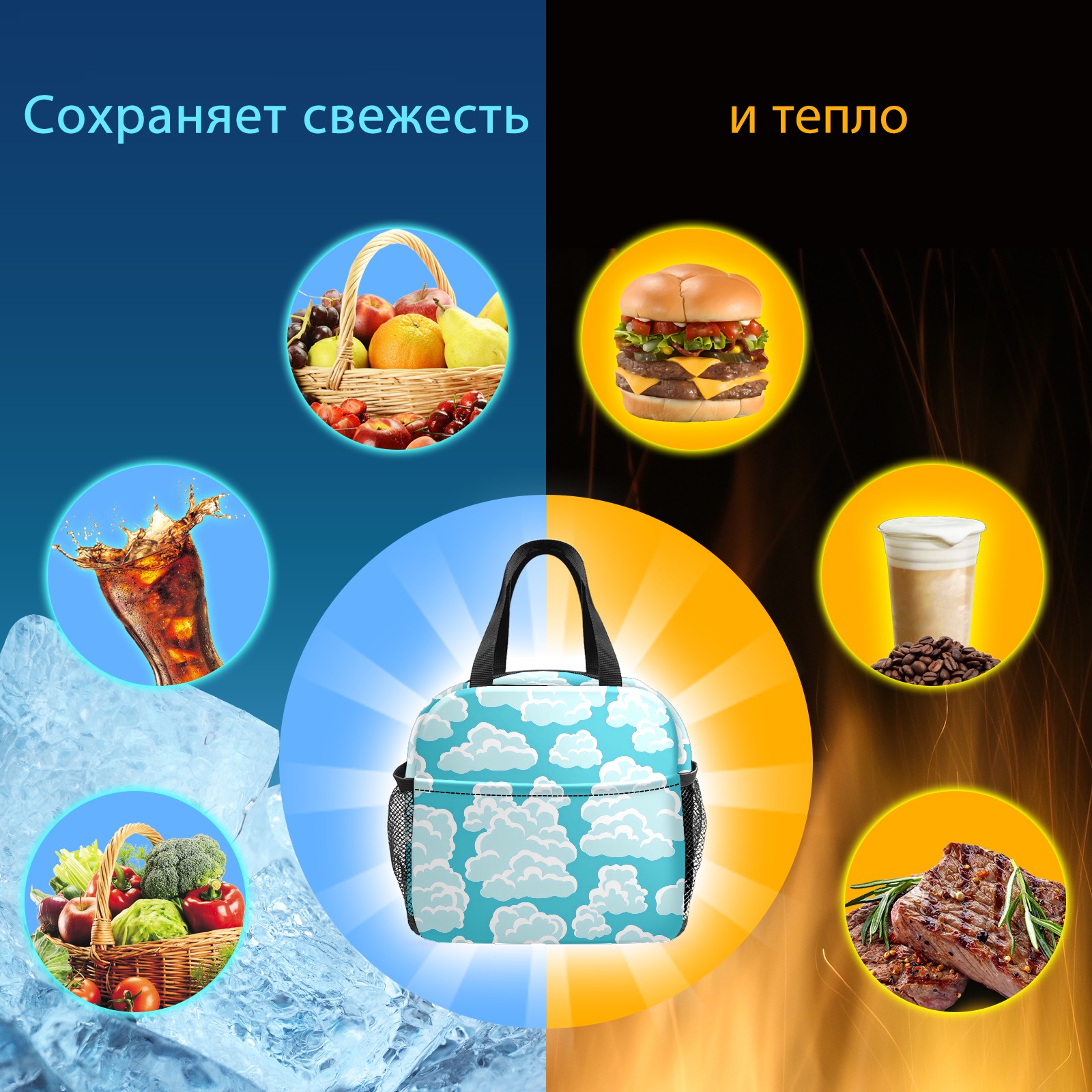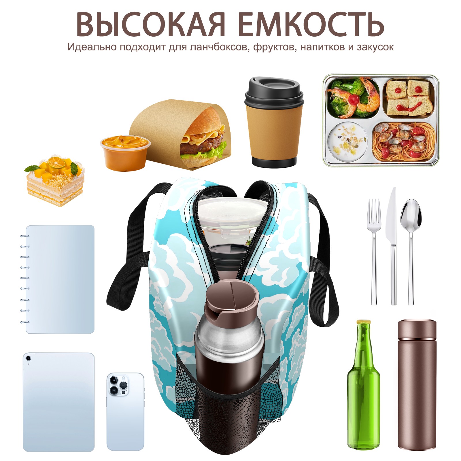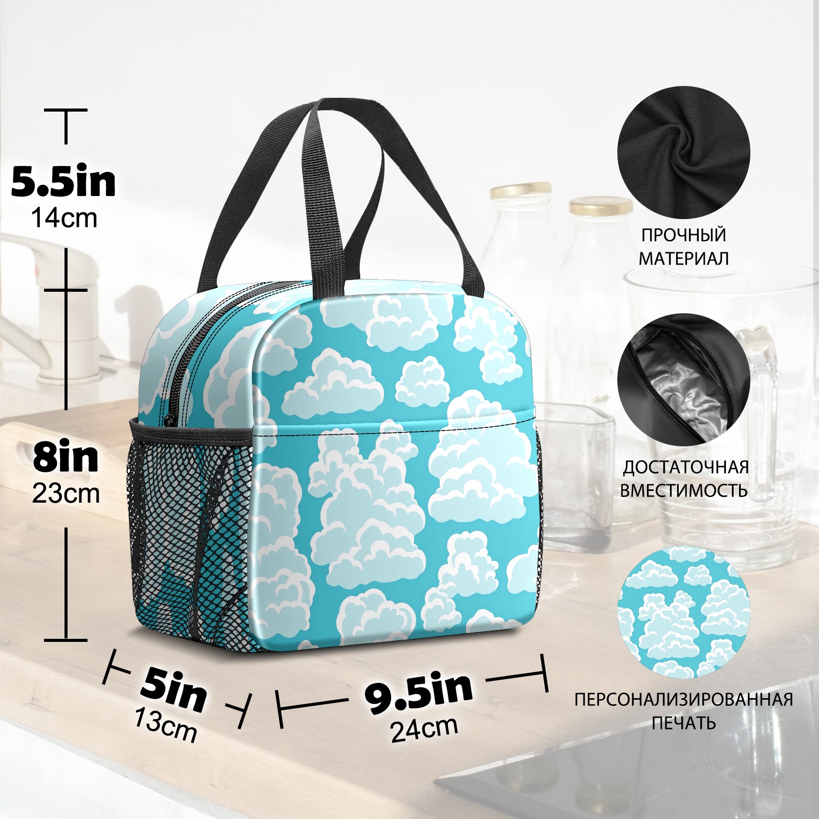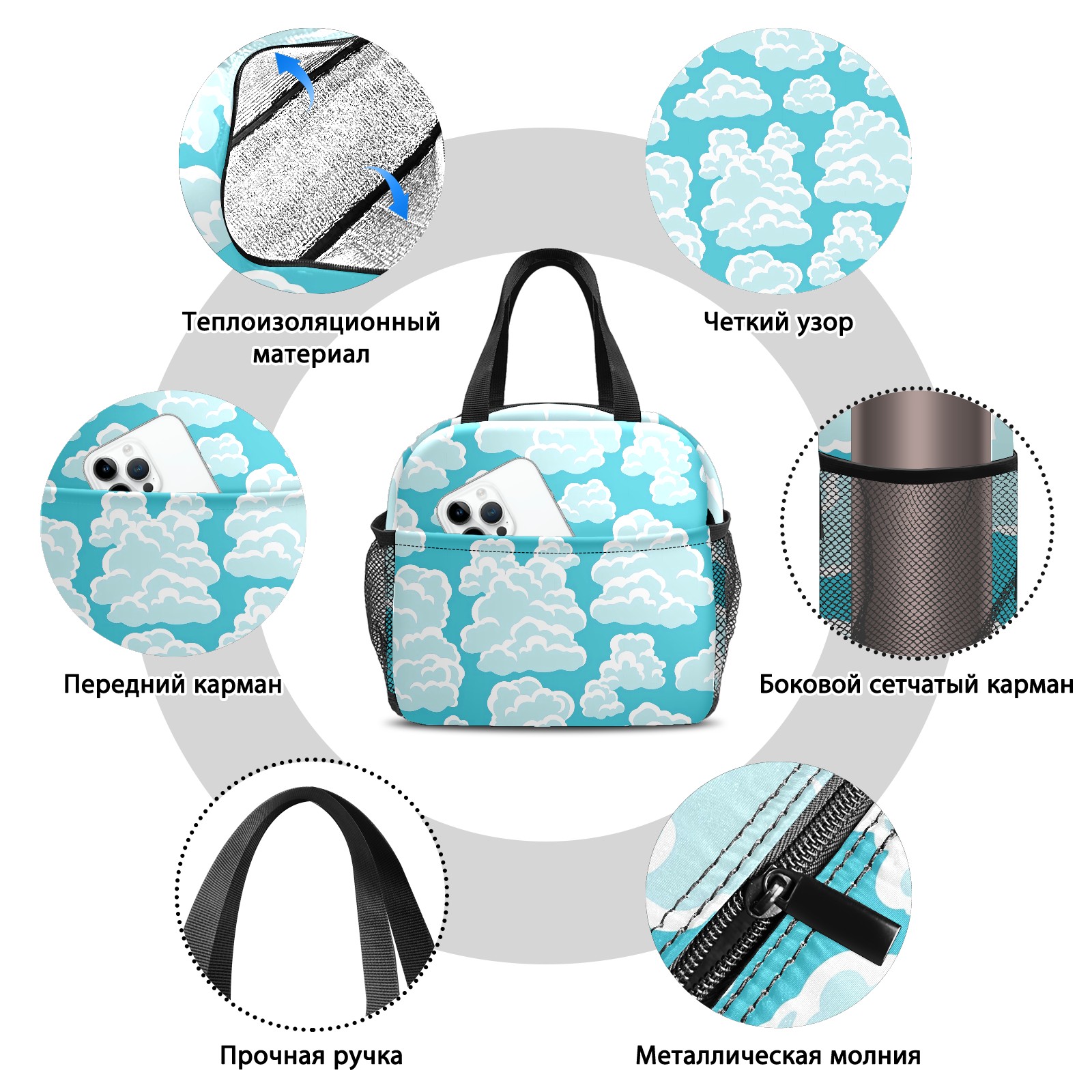 Lunch Bag,Lunch Box for Women Men,Blue Clouds Reusable Insulated Lunch Tote,Small Leakproof Cute Lunch Cooler with High Capacity for Work,Picnic,Camping