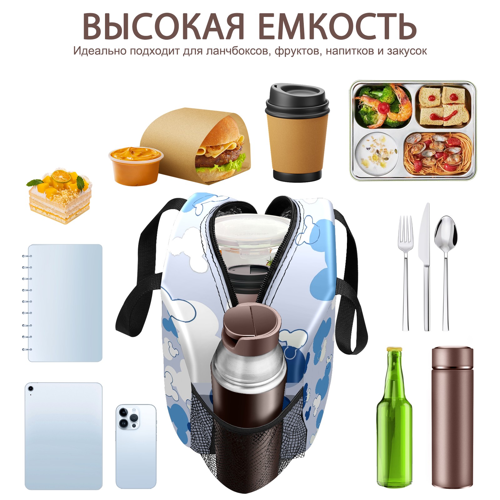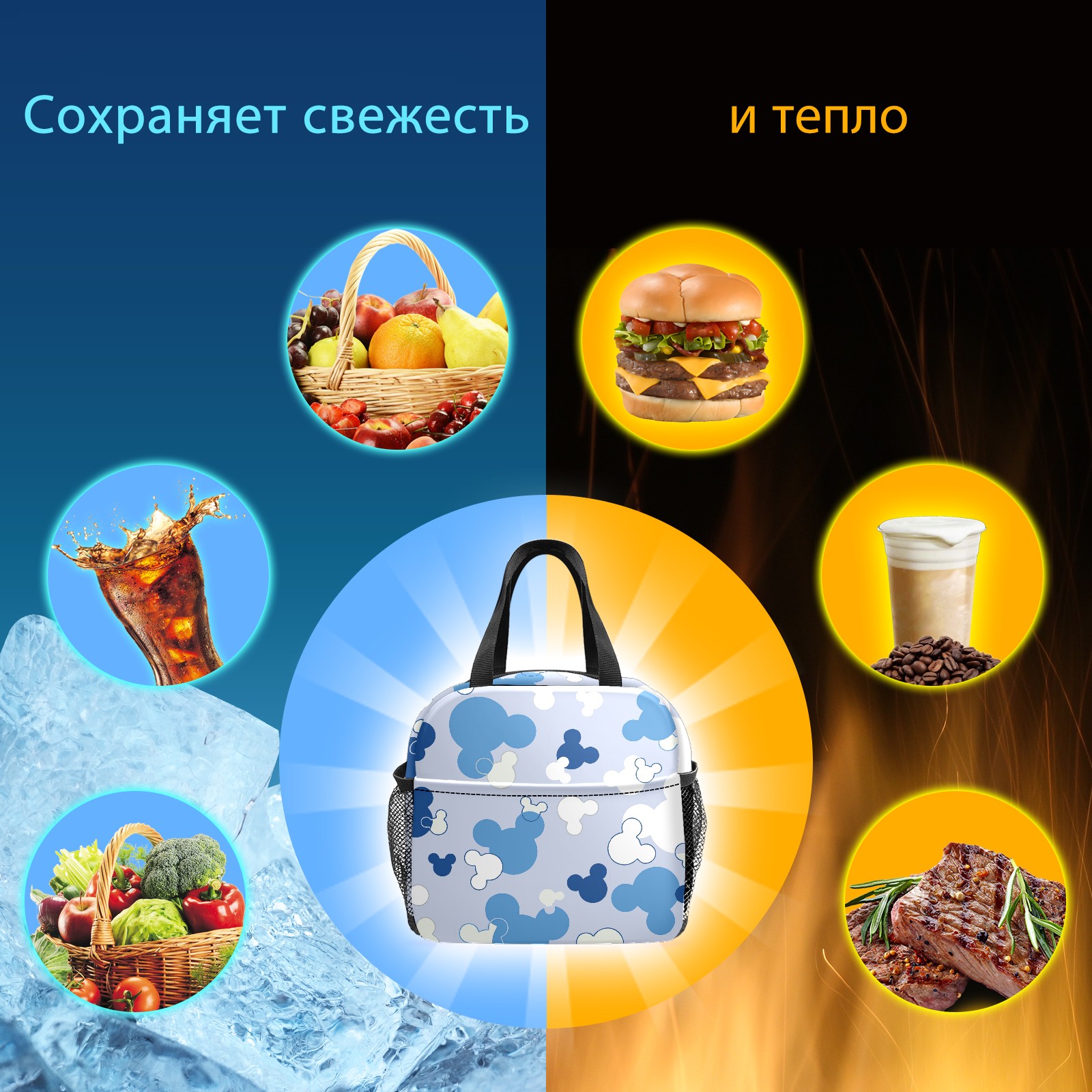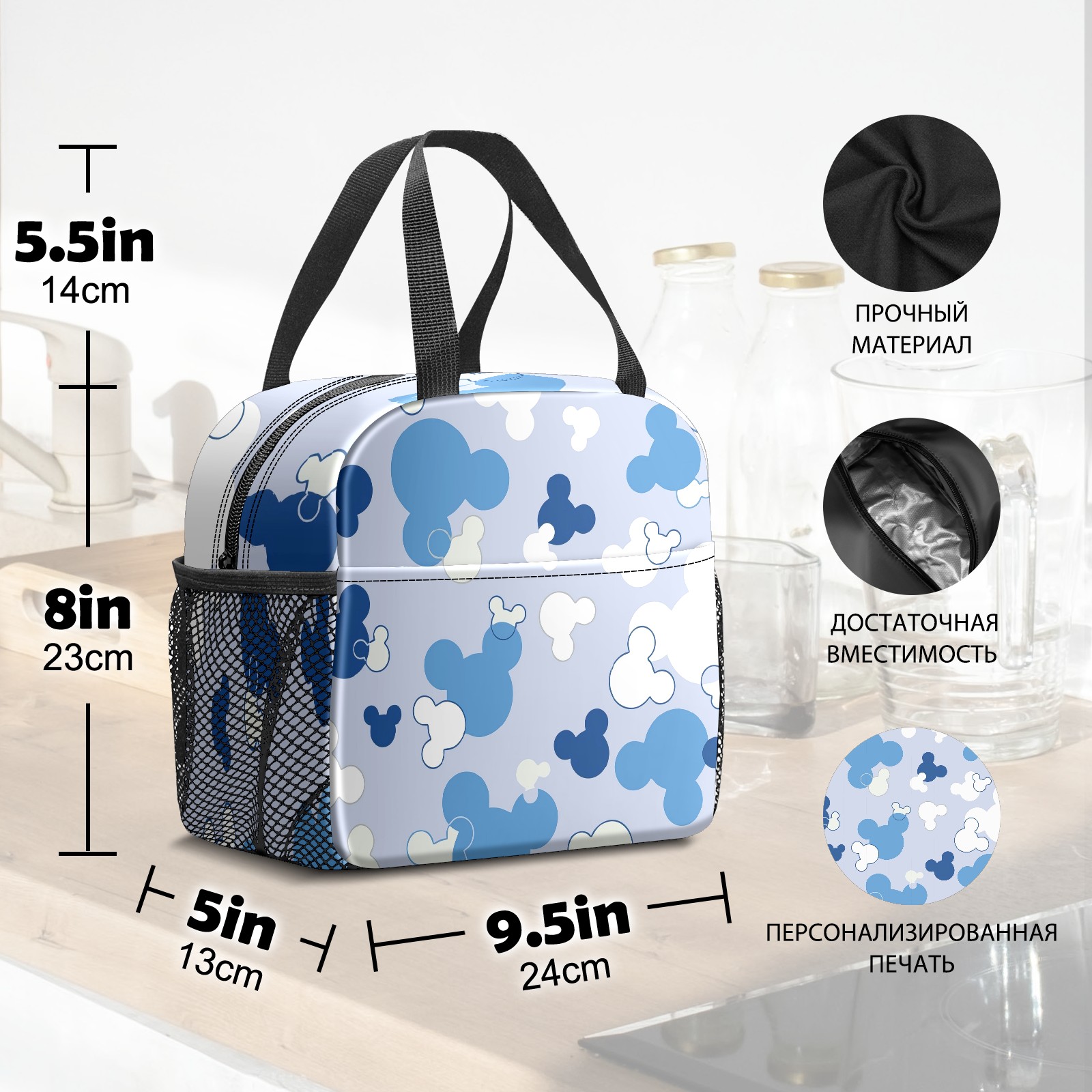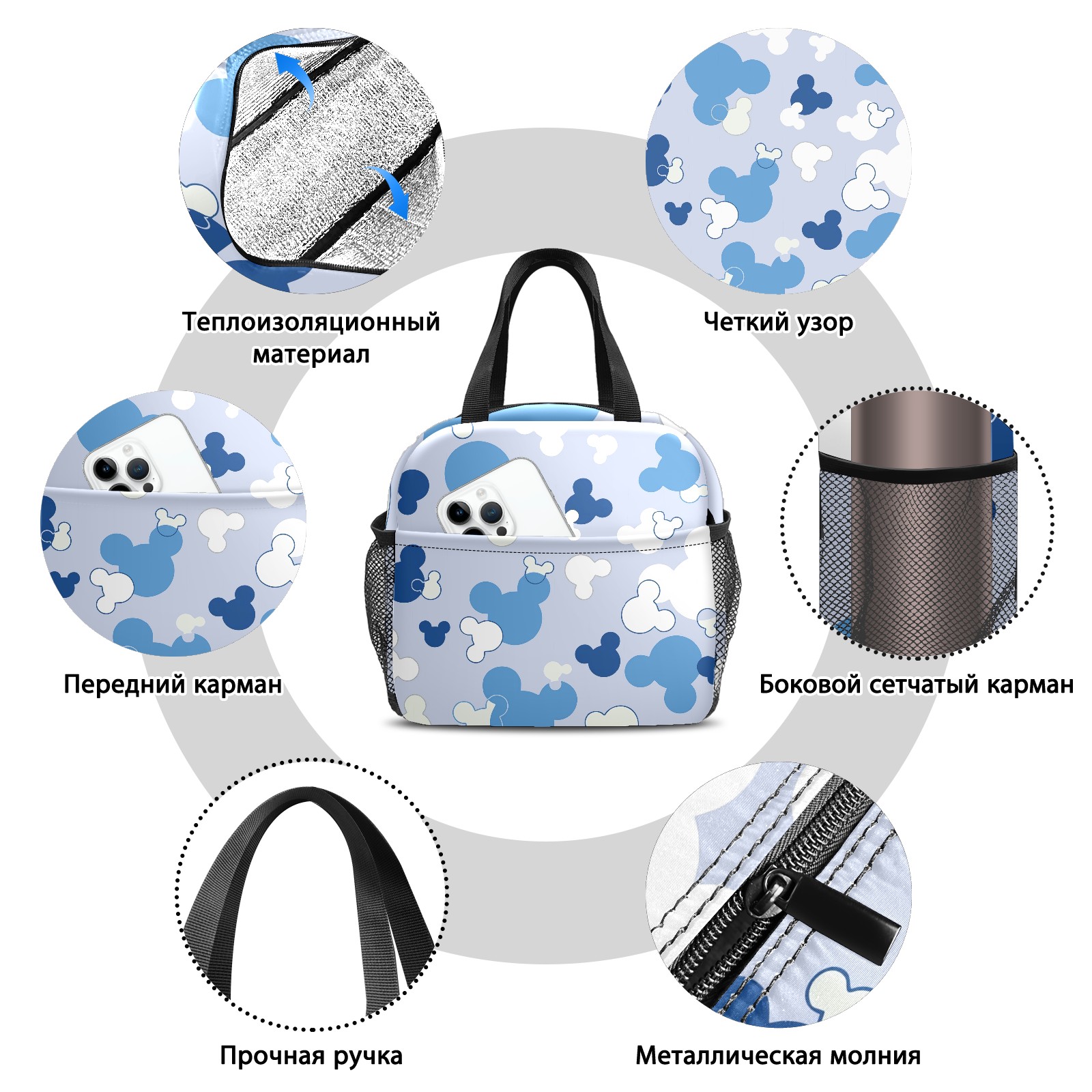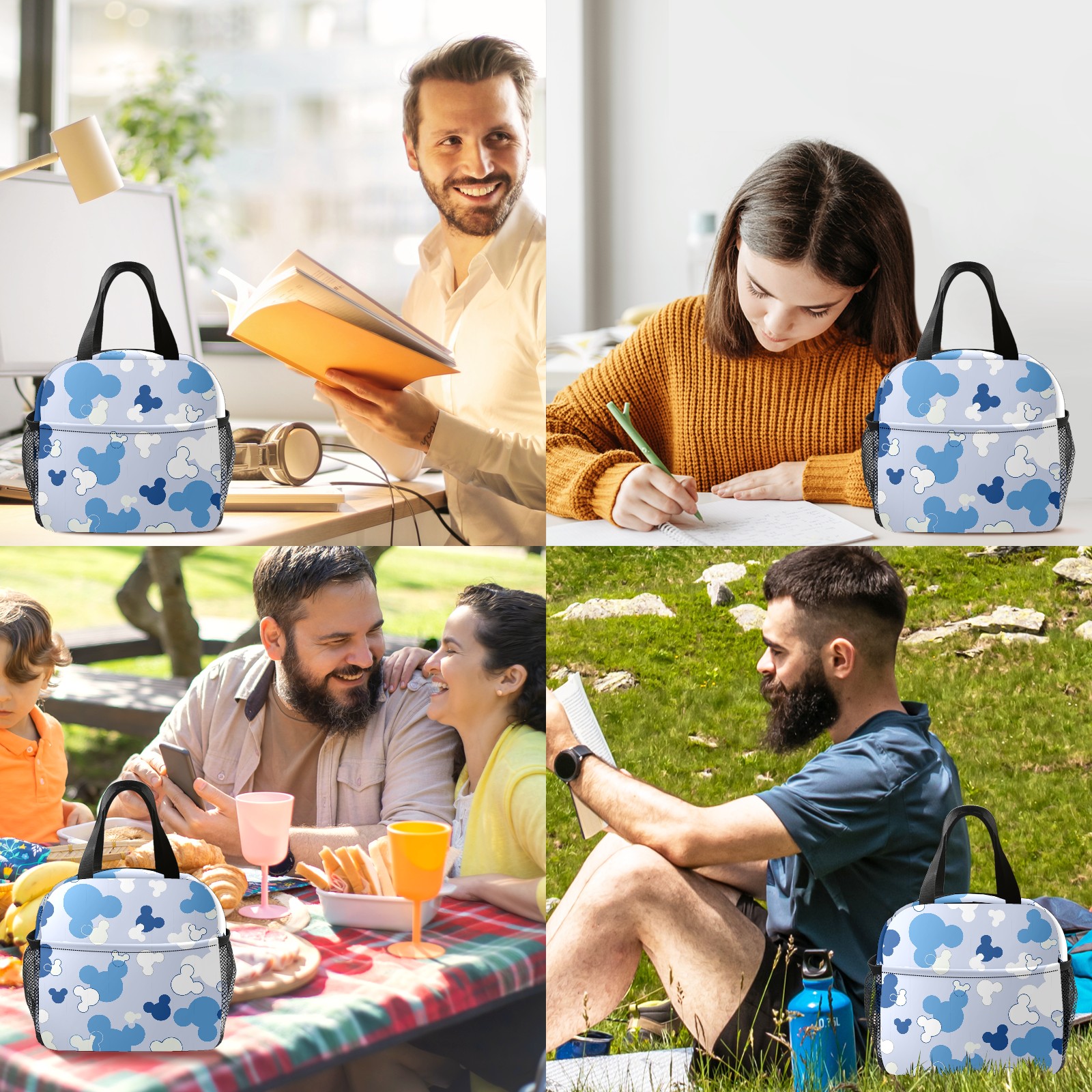 Lunch Bag,Lunch Box for Women Men,Blue Mouse Reusable Insulated Lunch Tote,Small Leakproof Cute Lunch Cooler with High Capacity for Work,Picnic,Camping