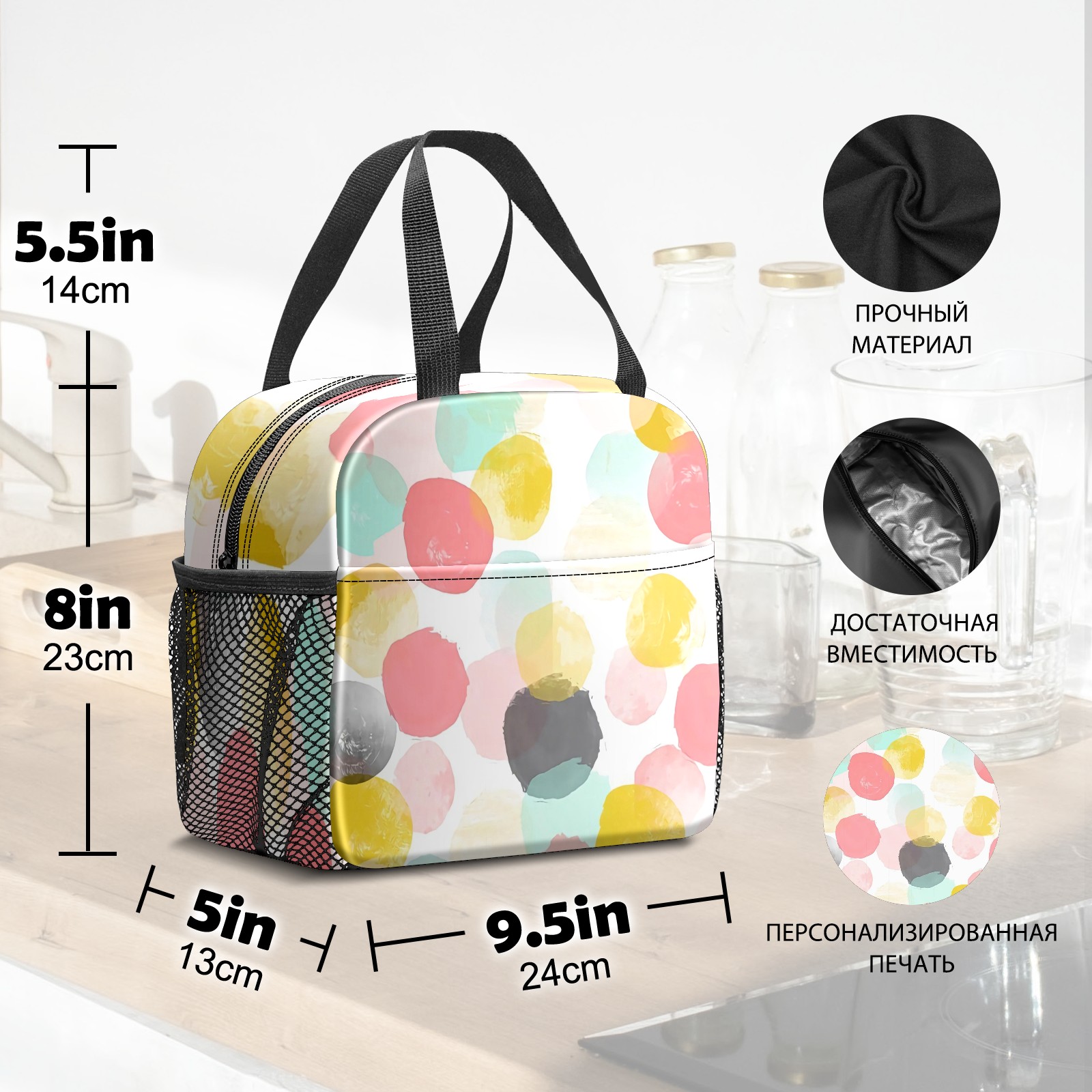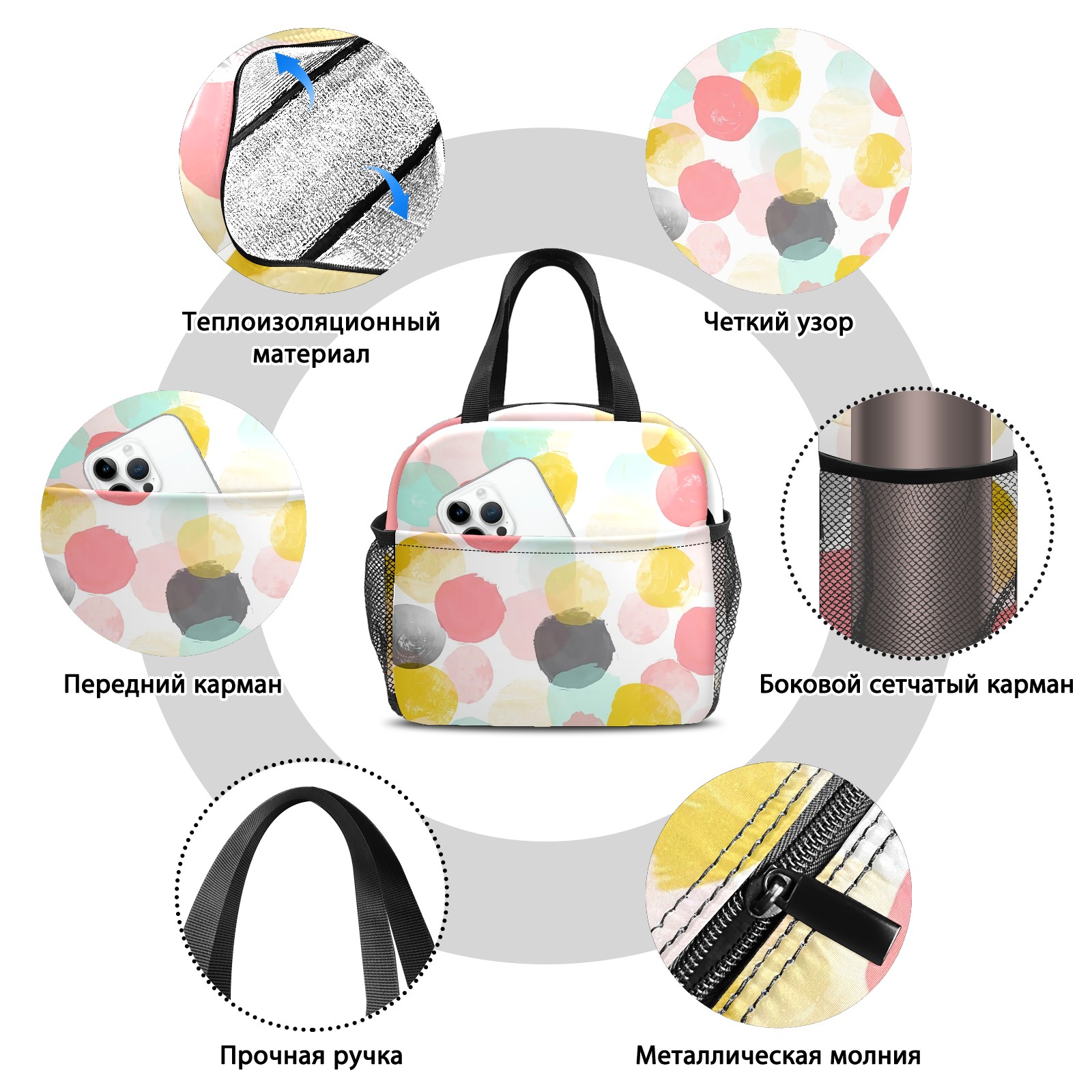Lunch Bag,Lunch Box for Women Men,Colorful Dot Reusable Insulated Lunch Tote,Small Leakproof Cute Lunch Cooler with High Capacity for Work,Picnic,Camping
