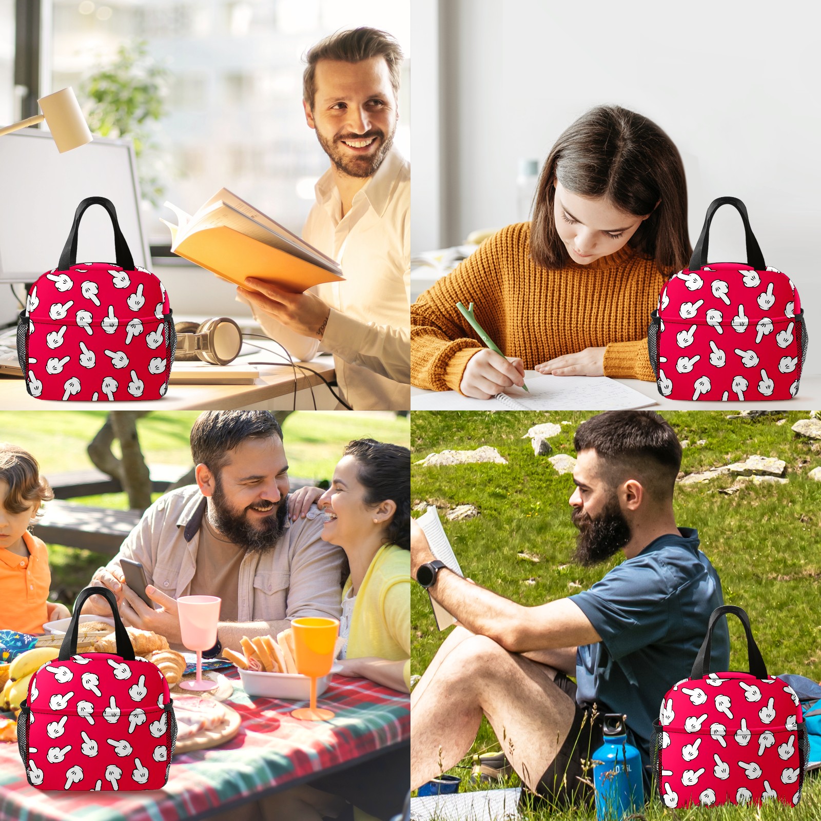 • <p>This stylish lunch bag is made of premium 600D waterproof Oxford cloth with thick insulating pearl foam lining and smooth, durable zippers, combining an attractive look with long-lasting daily use. Measuring 9.8*6.7*8.7, it offers ample space with a main zippered compartment and a front pocket to organize containers, food and snacks neatly for easy access. Boasting an extra-thick aluminum foil lining and heat-welded seams, it delivers reliable leak-proof performance and strong insulation to keep food hot or cold for hours, ideal for sandwiches, salads, fruits and more. Lightweight and portable with a sturdily stitched upgraded handle, this reusable lunch bag is a perfect companion for work, camping, picnics, beach trips and outdoor travel, helping you enjoy fresh homemade meals on the go.</p>