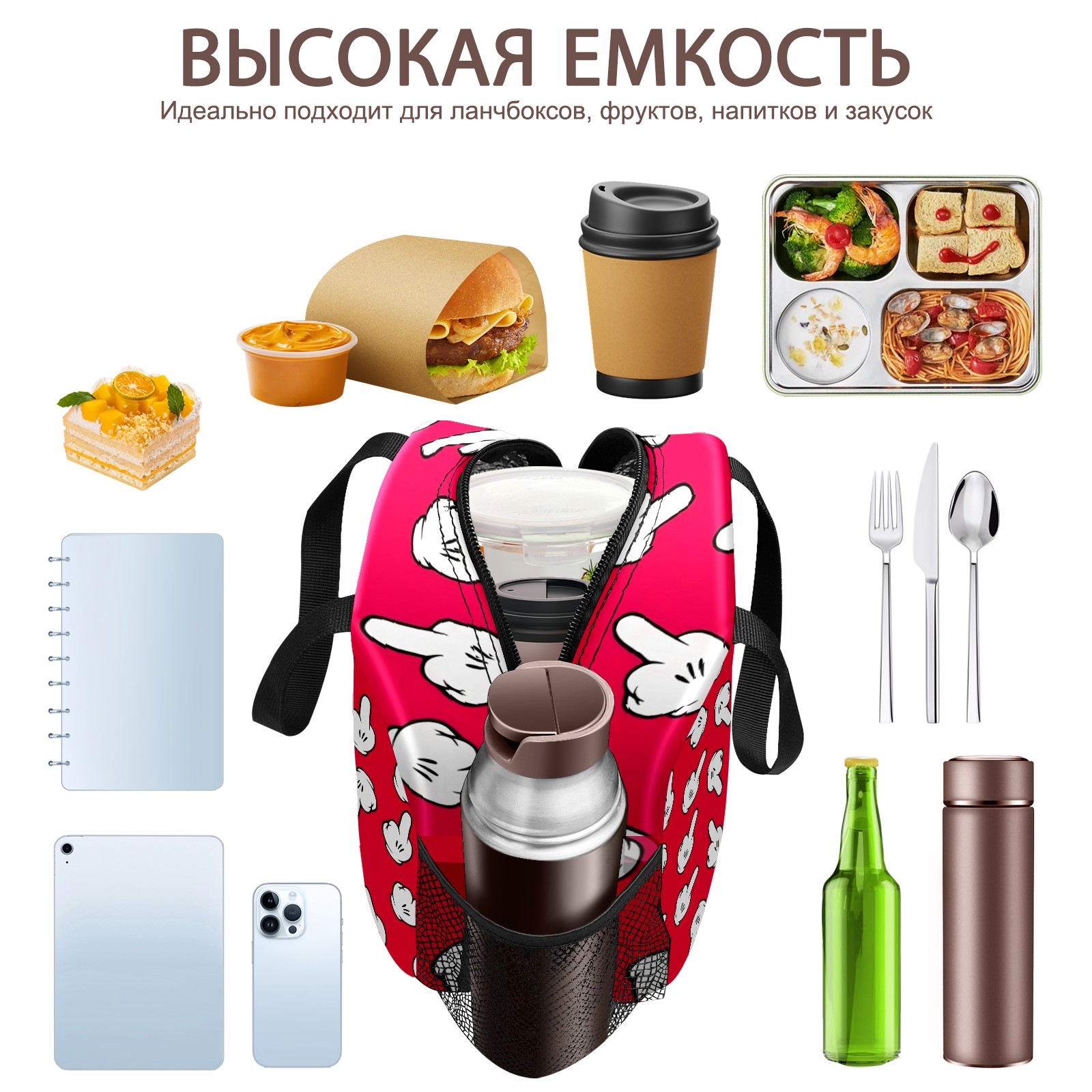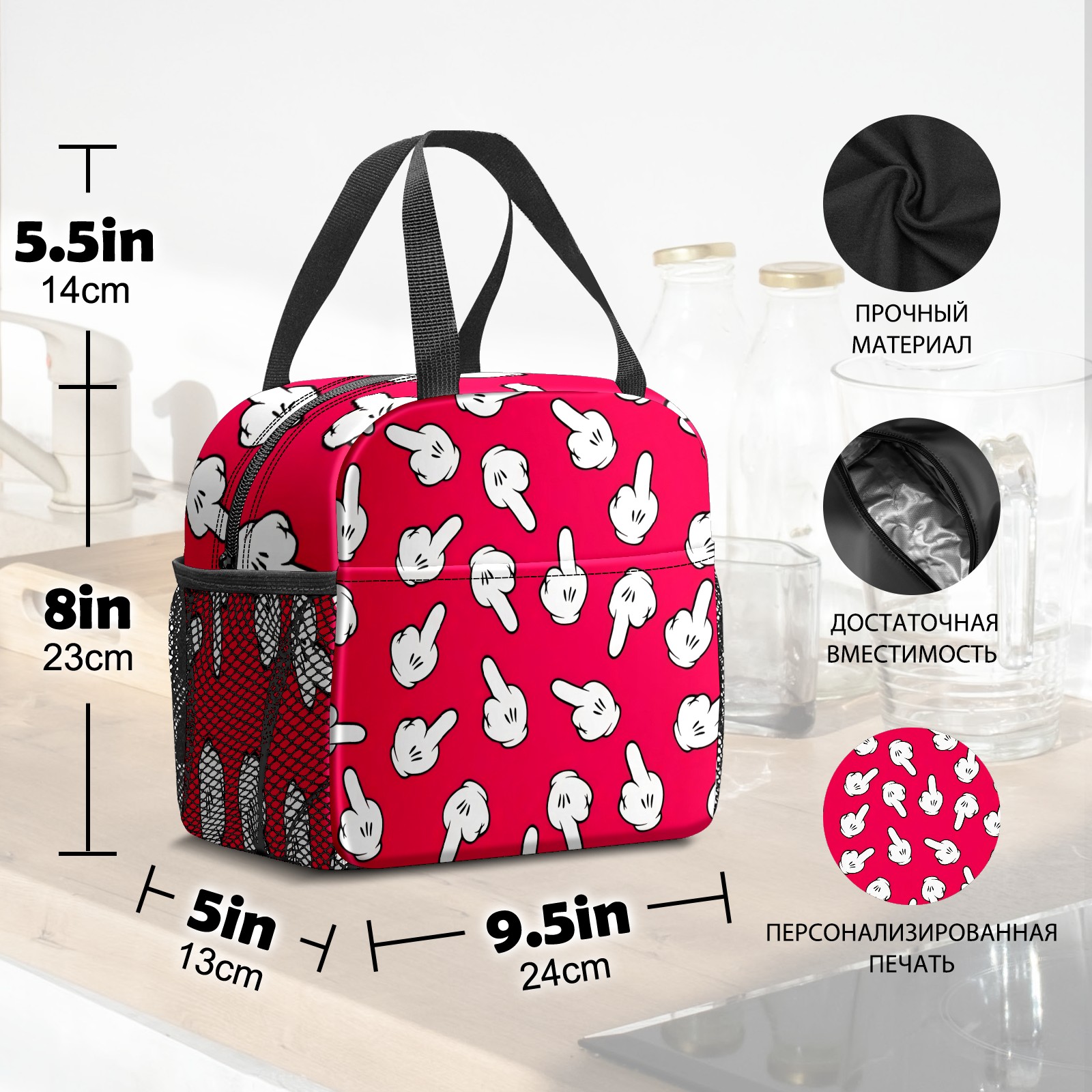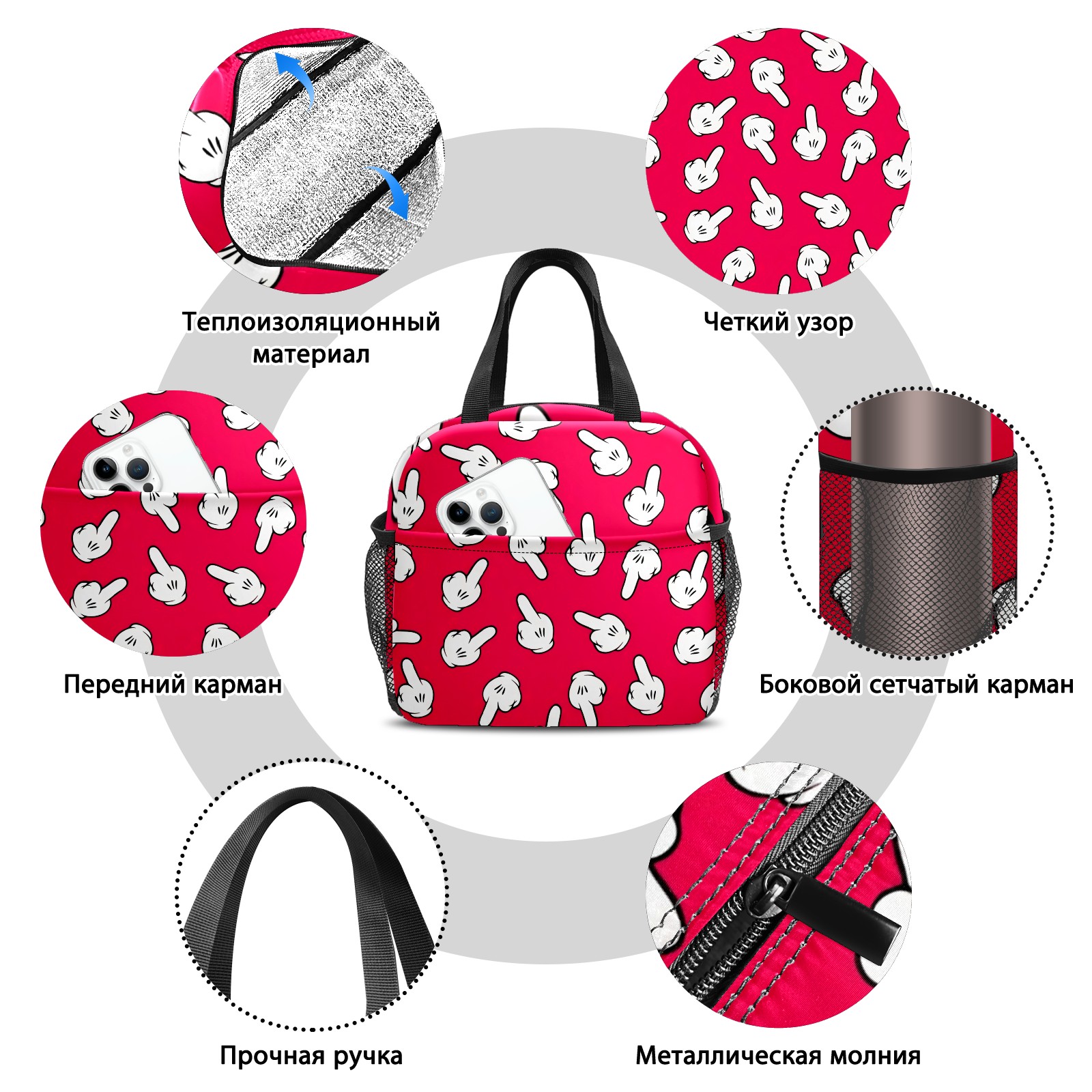 Lunch Bag,Lunch Box for Women Men,Pink Gloves Reusable Insulated Lunch Tote,Small Leakproof Cute Lunch Cooler with High Capacity for Work,Picnic,Camping
