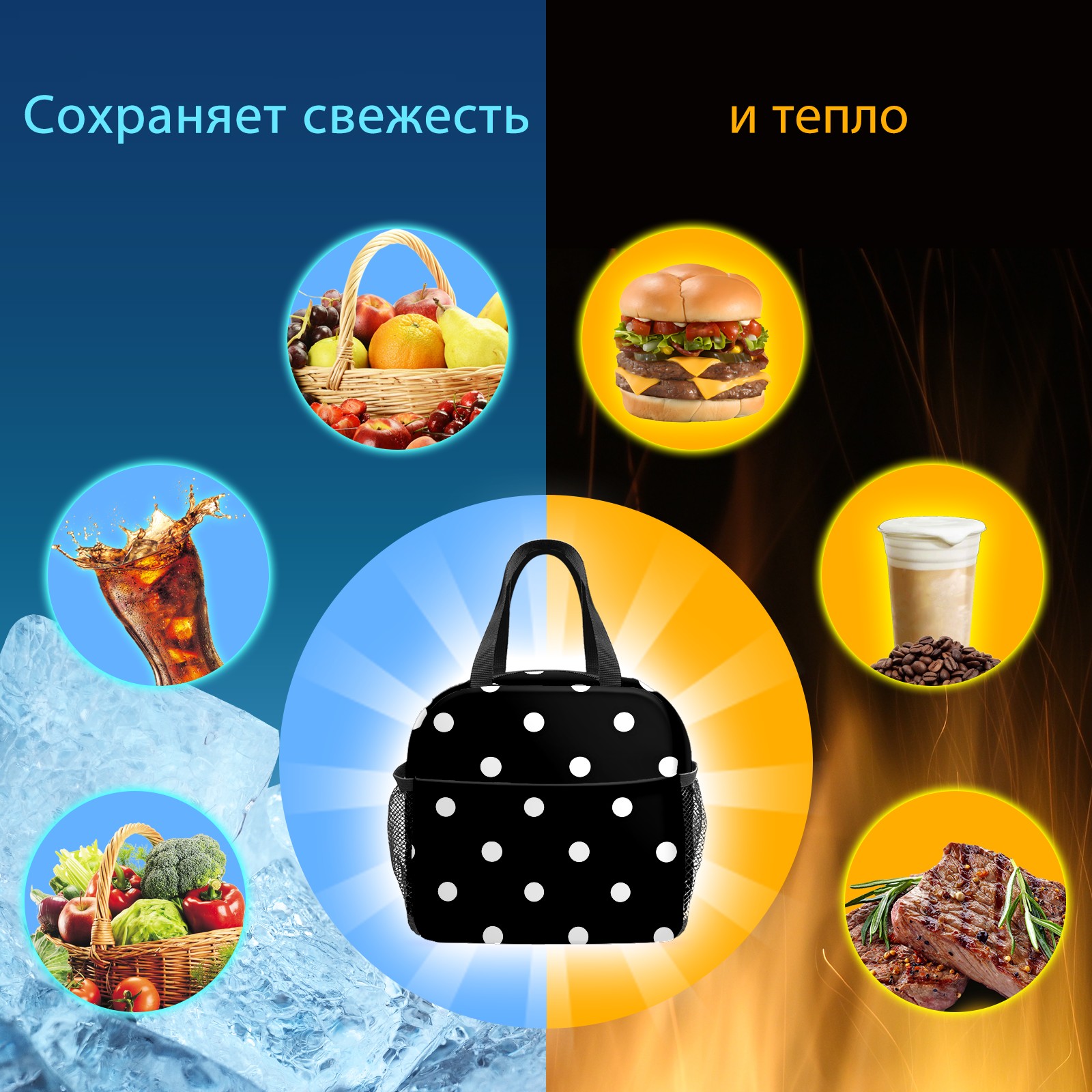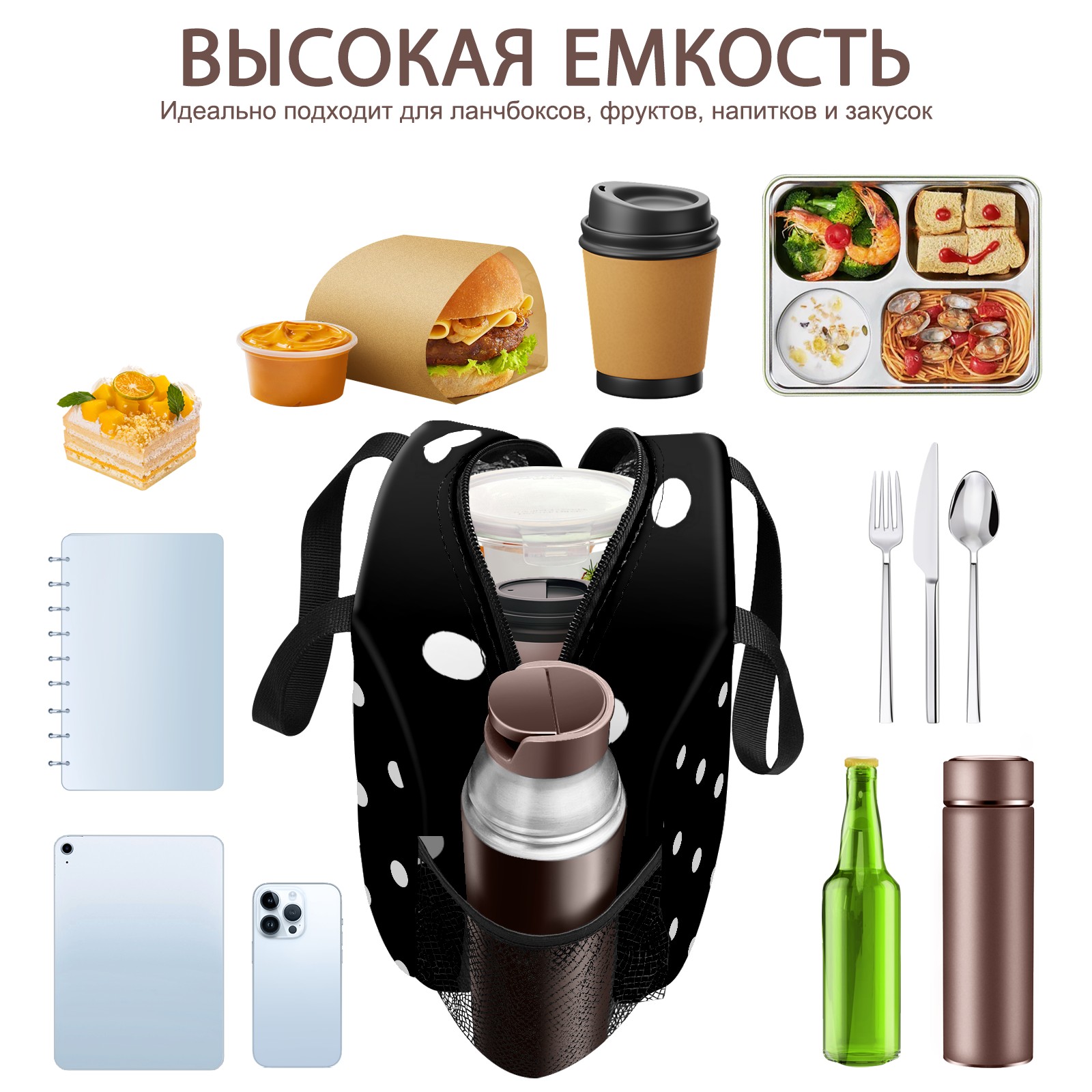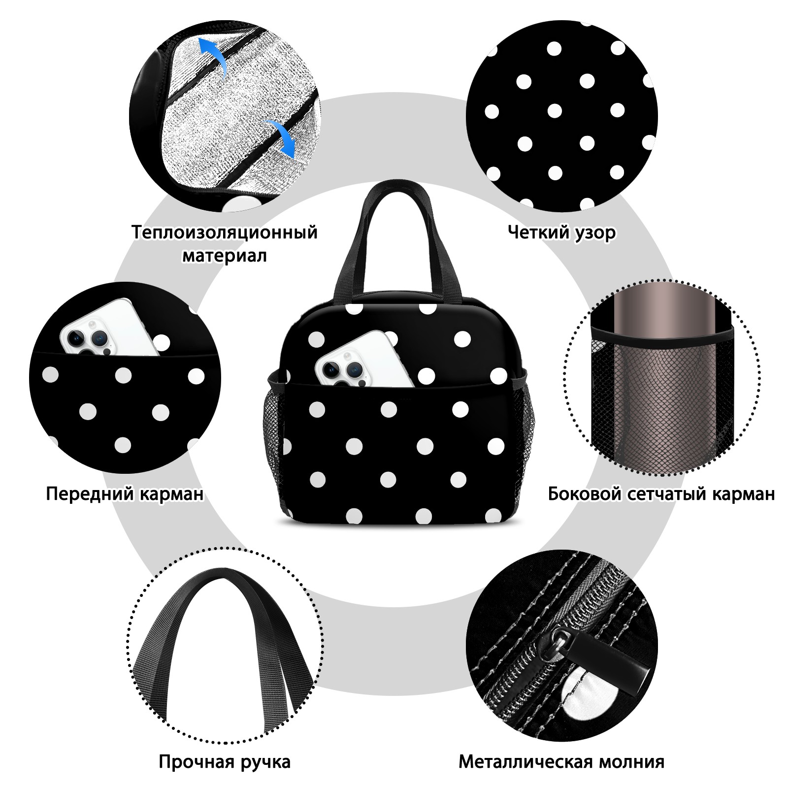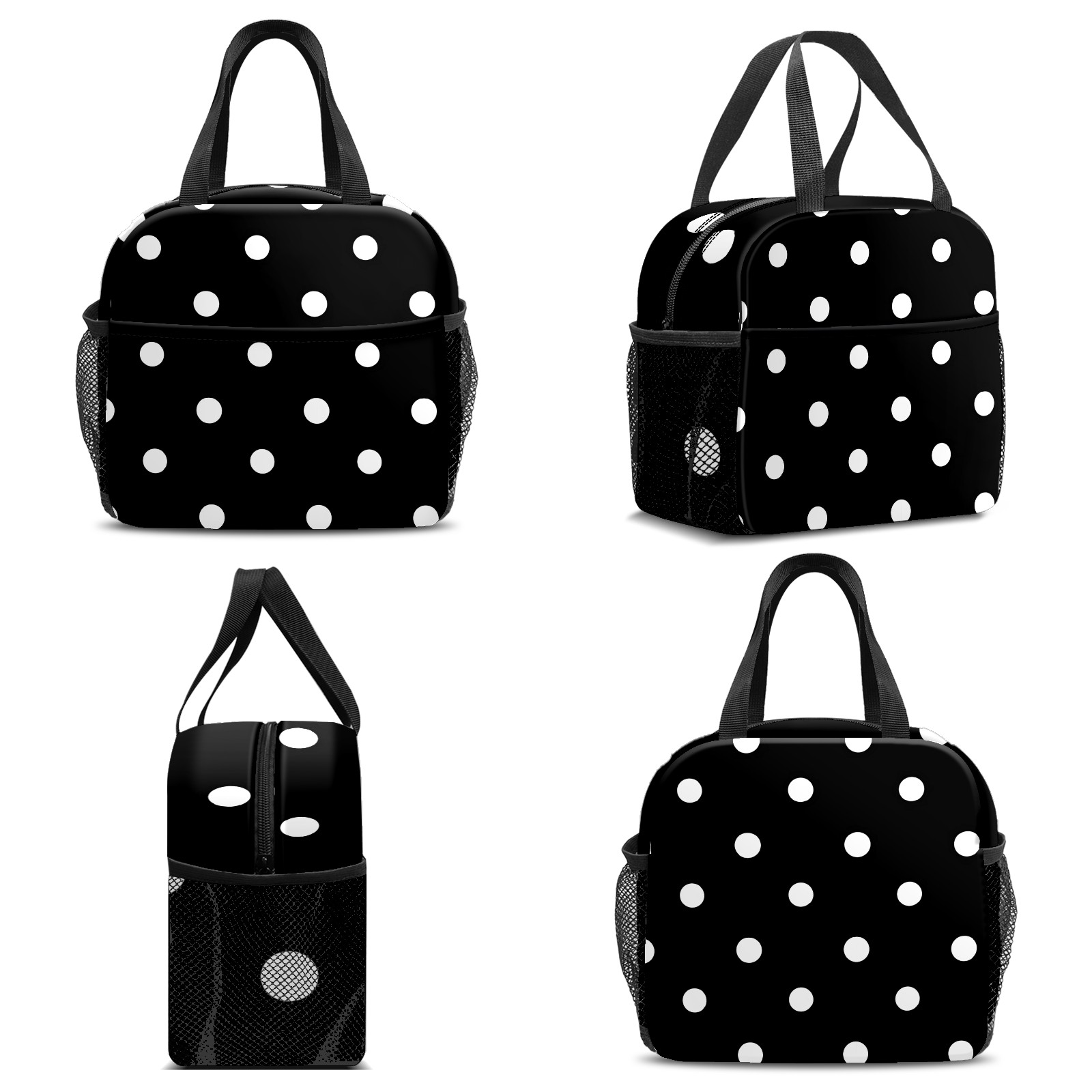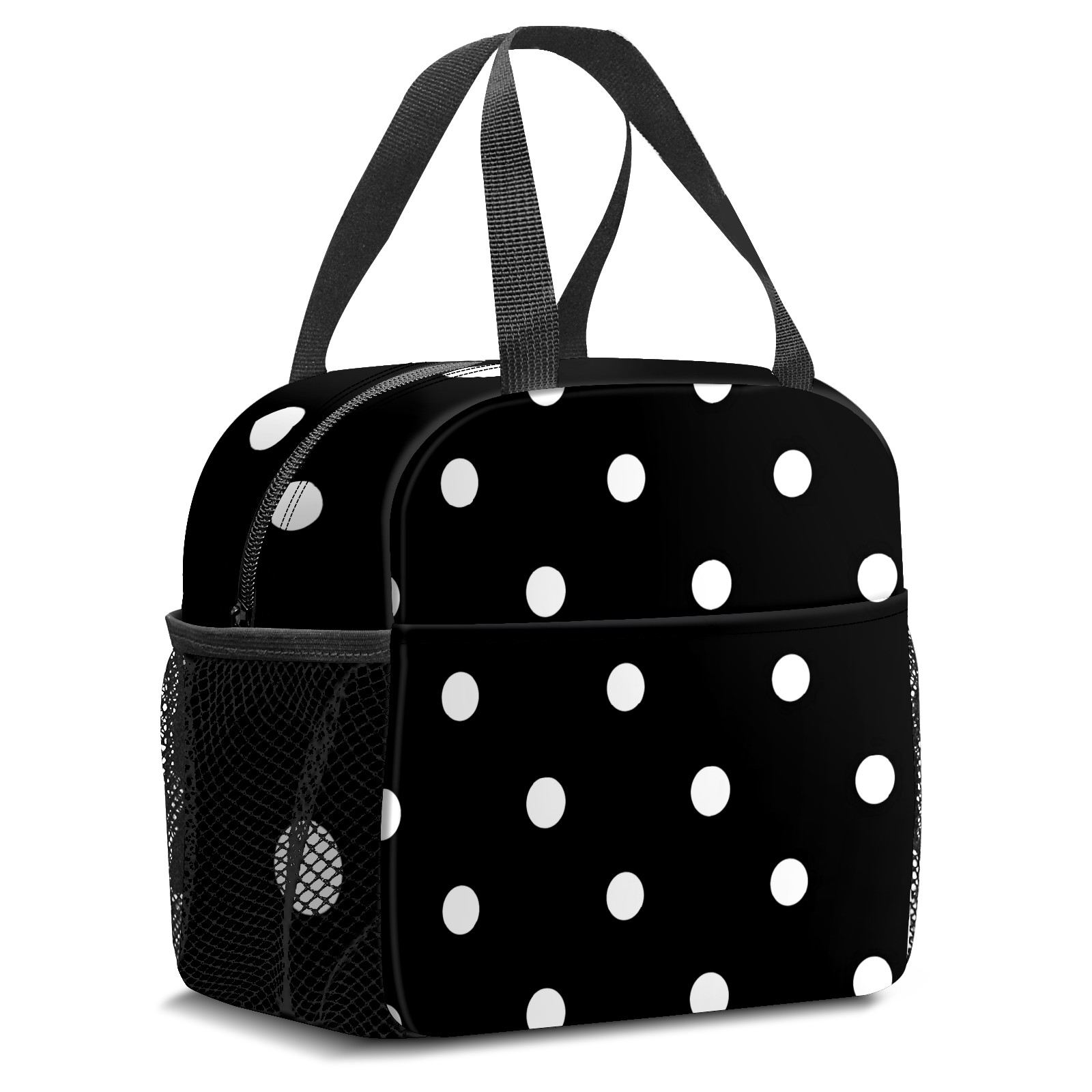 Lunch Bag,Lunch Box for Women Men,Black Dot Reusable Insulated Lunch Tote,Small Leakproof Cute Lunch Cooler with High Capacity for Work,Picnic,Camping
