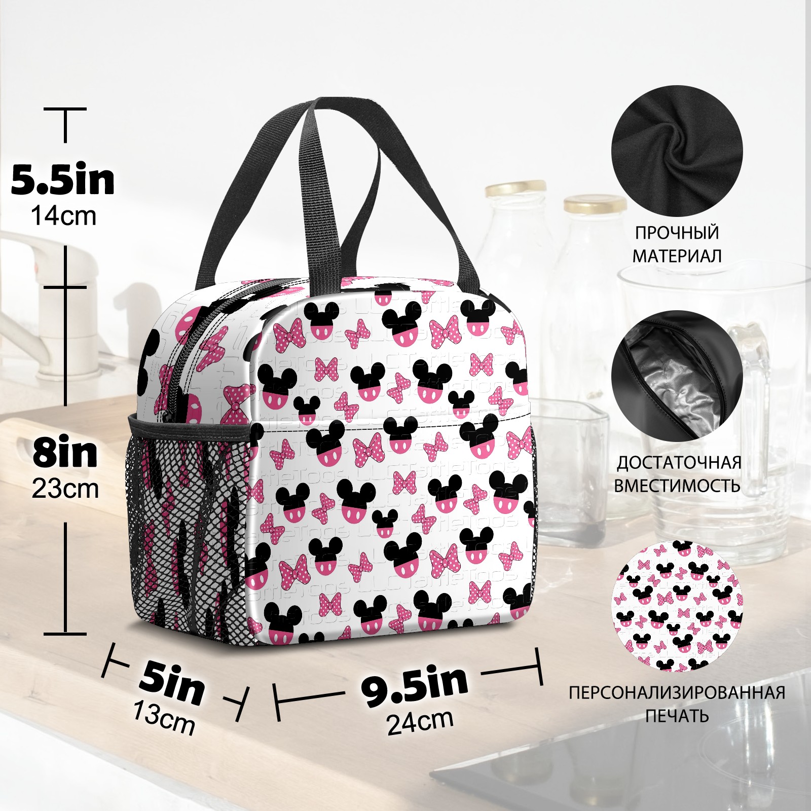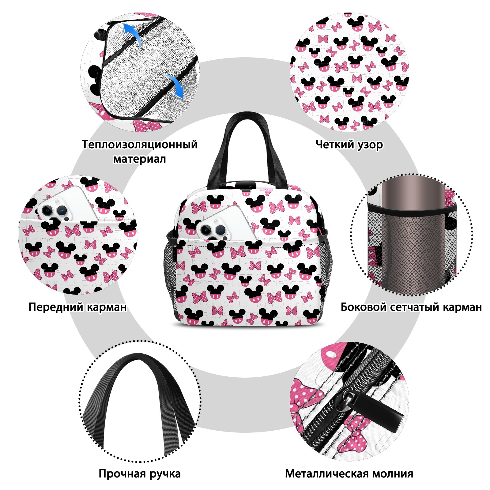 Lunch Bag,Lunch Box for Women Men,Bow Mouse Reusable Insulated Lunch Tote,Small Leakproof Cute Lunch Cooler with High Capacity for Work,Picnic,Camping