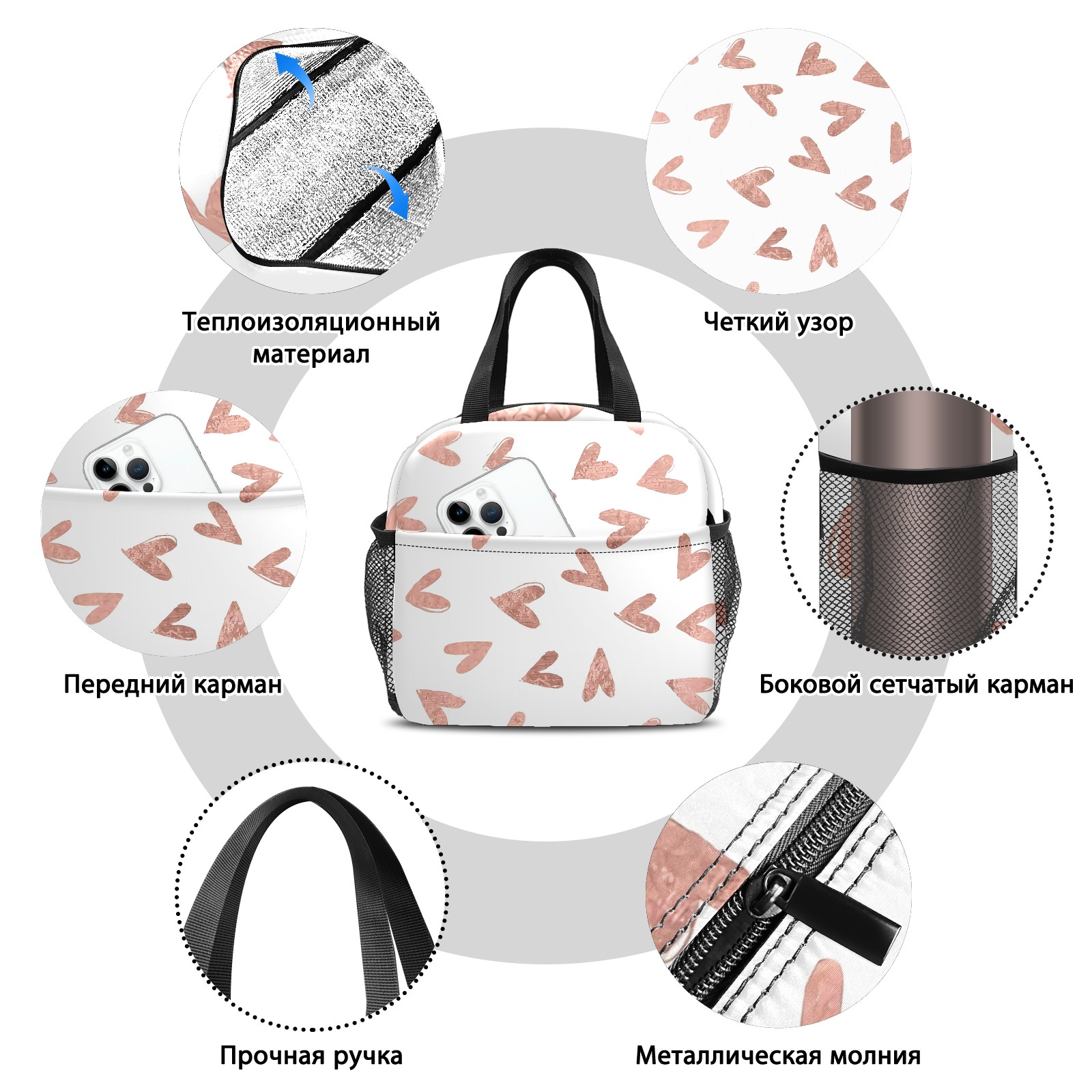 Lunch Bag,Lunch Box for Women Men,Pink Heart Reusable Insulated Lunch Tote,Small Leakproof Cute Lunch Cooler with High Capacity for Work,Picnic,Camping