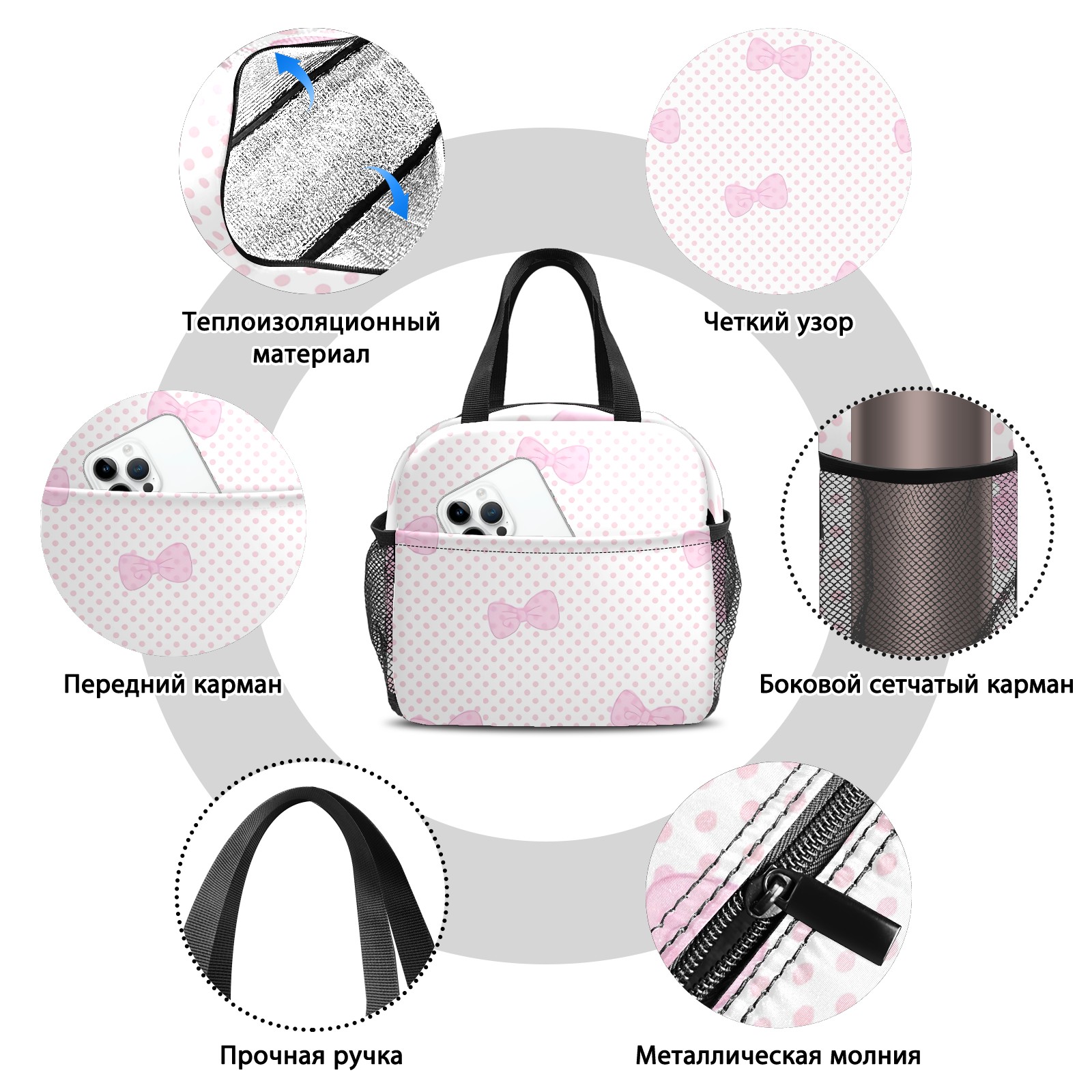 Lunch Bag,Lunch Box for Women Men,Pink Bow Reusable Insulated Lunch Tote,Small Leakproof Cute Lunch Cooler with High Capacity for Work,Picnic,Camping