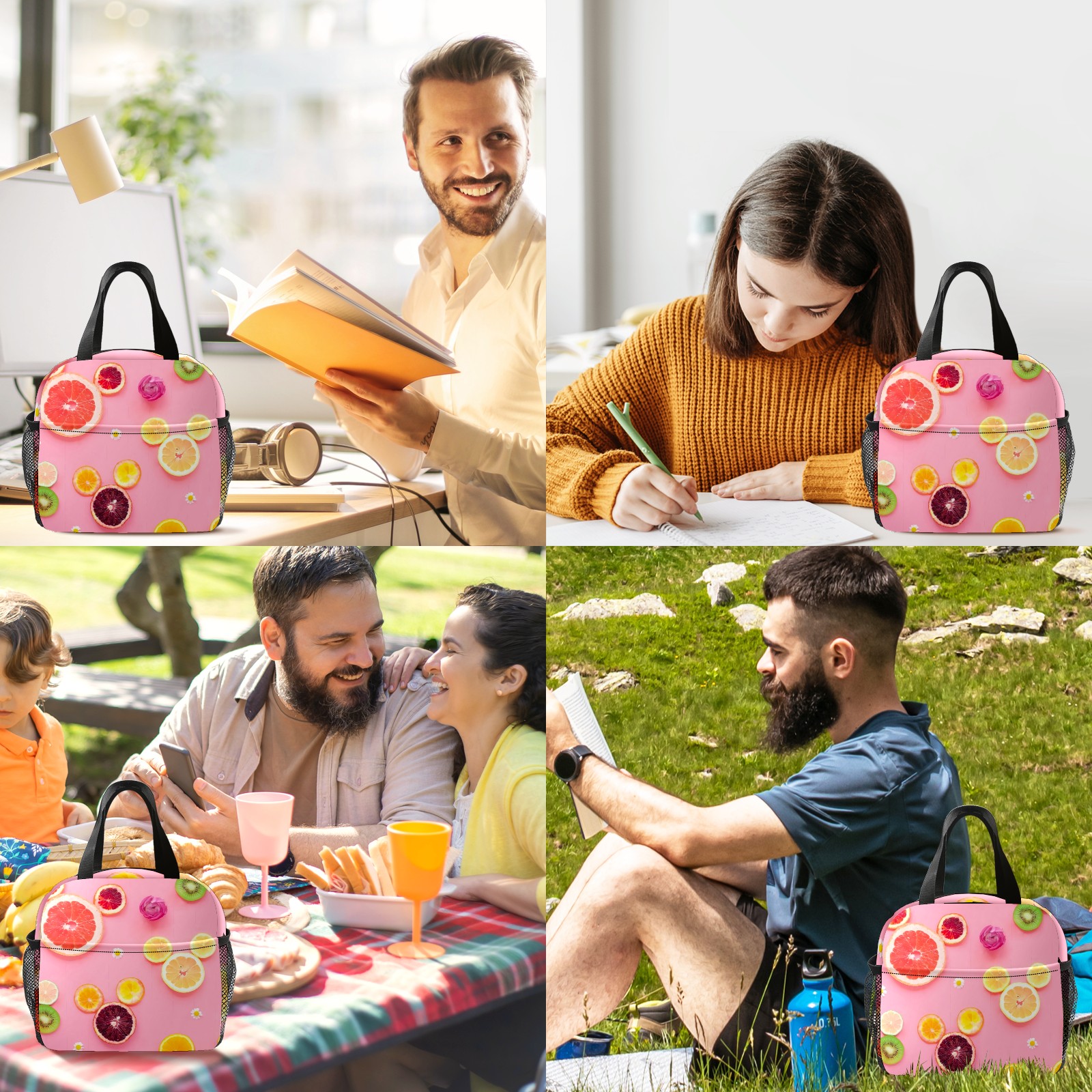 • <p>This stylish lunch bag is made of premium 600D waterproof Oxford cloth with thick insulating pearl foam lining and smooth, durable zippers, combining an attractive look with long-lasting daily use. Measuring 9.8*6.7*8.7, it offers ample space with a main zippered compartment and a front pocket to organize containers, food and snacks neatly for easy access. Boasting an extra-thick aluminum foil lining and heat-welded seams, it delivers reliable leak-proof performance and strong insulation to keep food hot or cold for hours, ideal for sandwiches, salads, fruits and more. Lightweight and portable with a sturdily stitched upgraded handle, this reusable lunch bag is a perfect companion for work, camping, picnics, beach trips and outdoor travel, helping you enjoy fresh homemade meals on the go.</p>