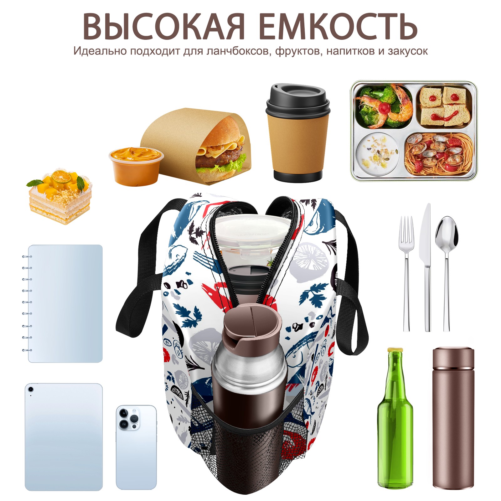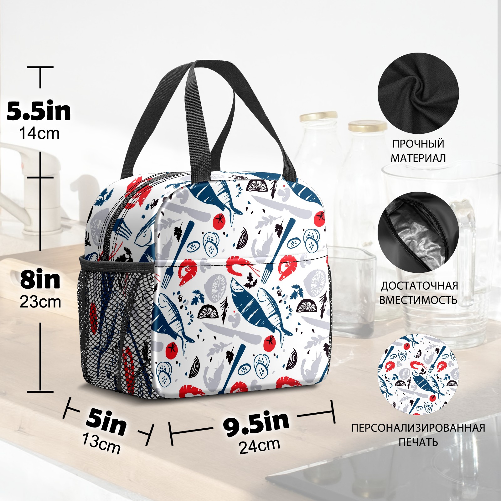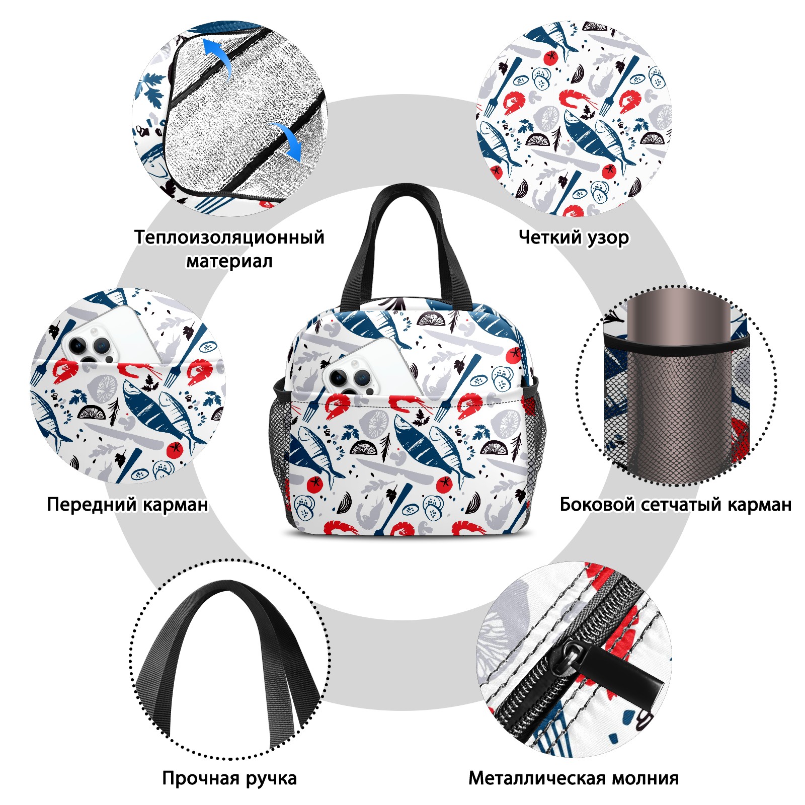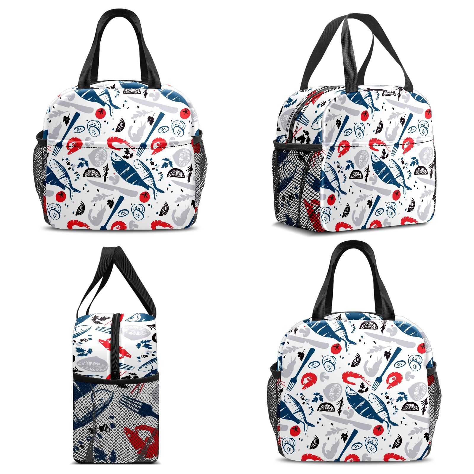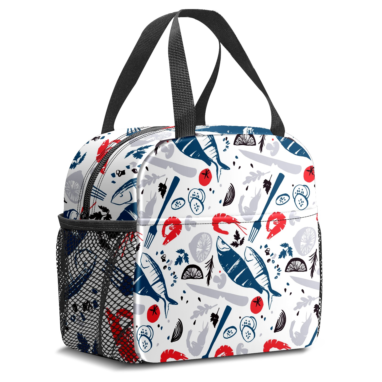 Lunch Bag,Lunch Box for Women Men,Hand Drawn Fish And Shrimp Reusable Insulated Lunch Tote,Small Leakproof Cute Lunch Cooler with High Capacity for Work,Picnic,Camping