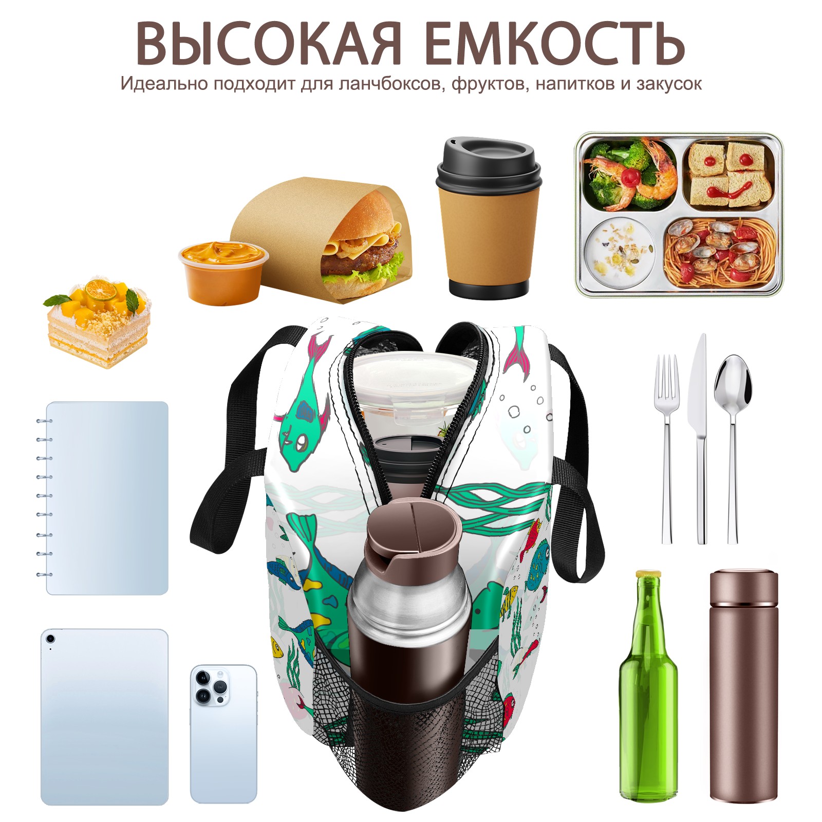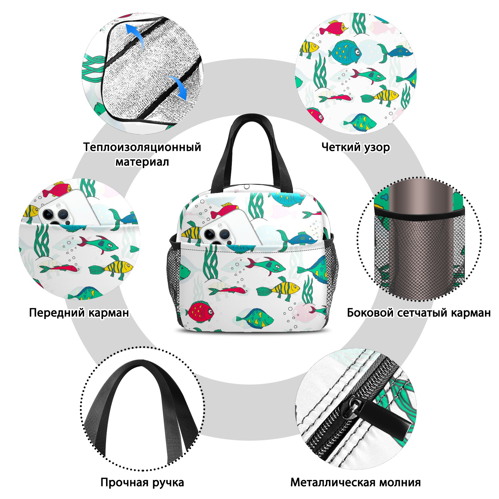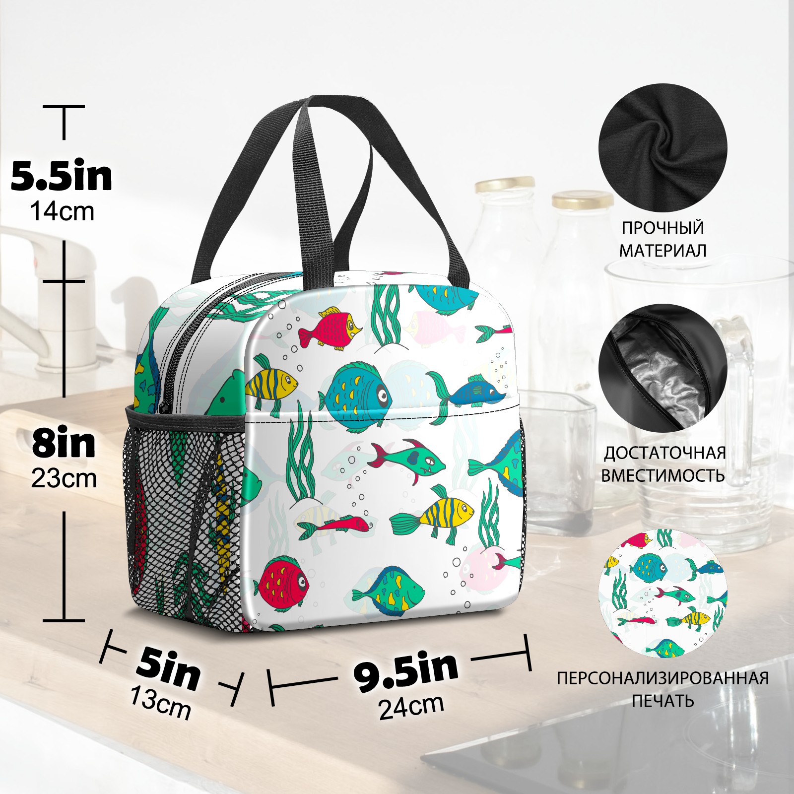 Lunch Bag,Lunch Box for Women Men,Fishes And Sea Grass Reusable Insulated Lunch Tote,Small Leakproof Cute Lunch Cooler with High Capacity for Work,Picnic,Camping