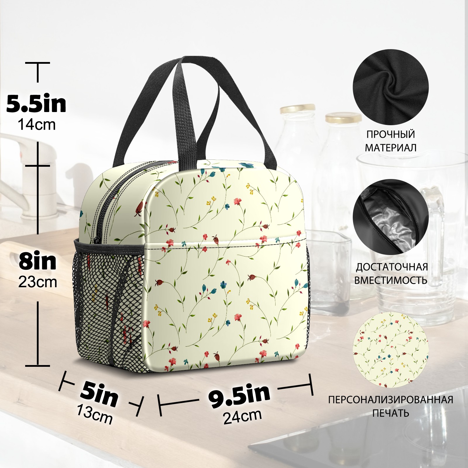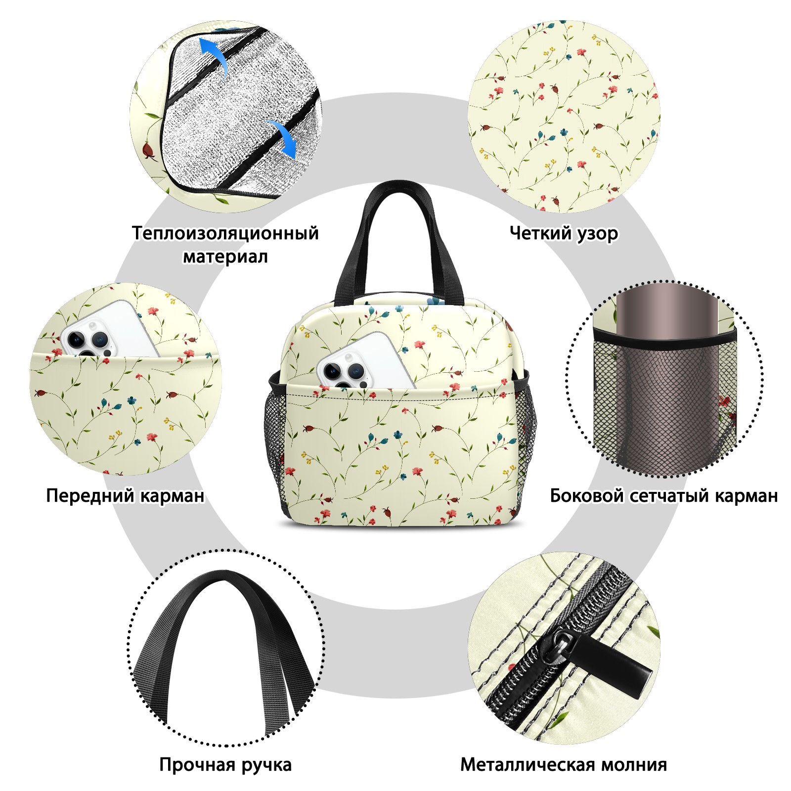 Lunch Bag,Lunch Box for Women Men,Floral Pattern Reusable Insulated Lunch Tote,Small Leakproof Cute Lunch Cooler with High Capacity for Work,Picnic,Camping