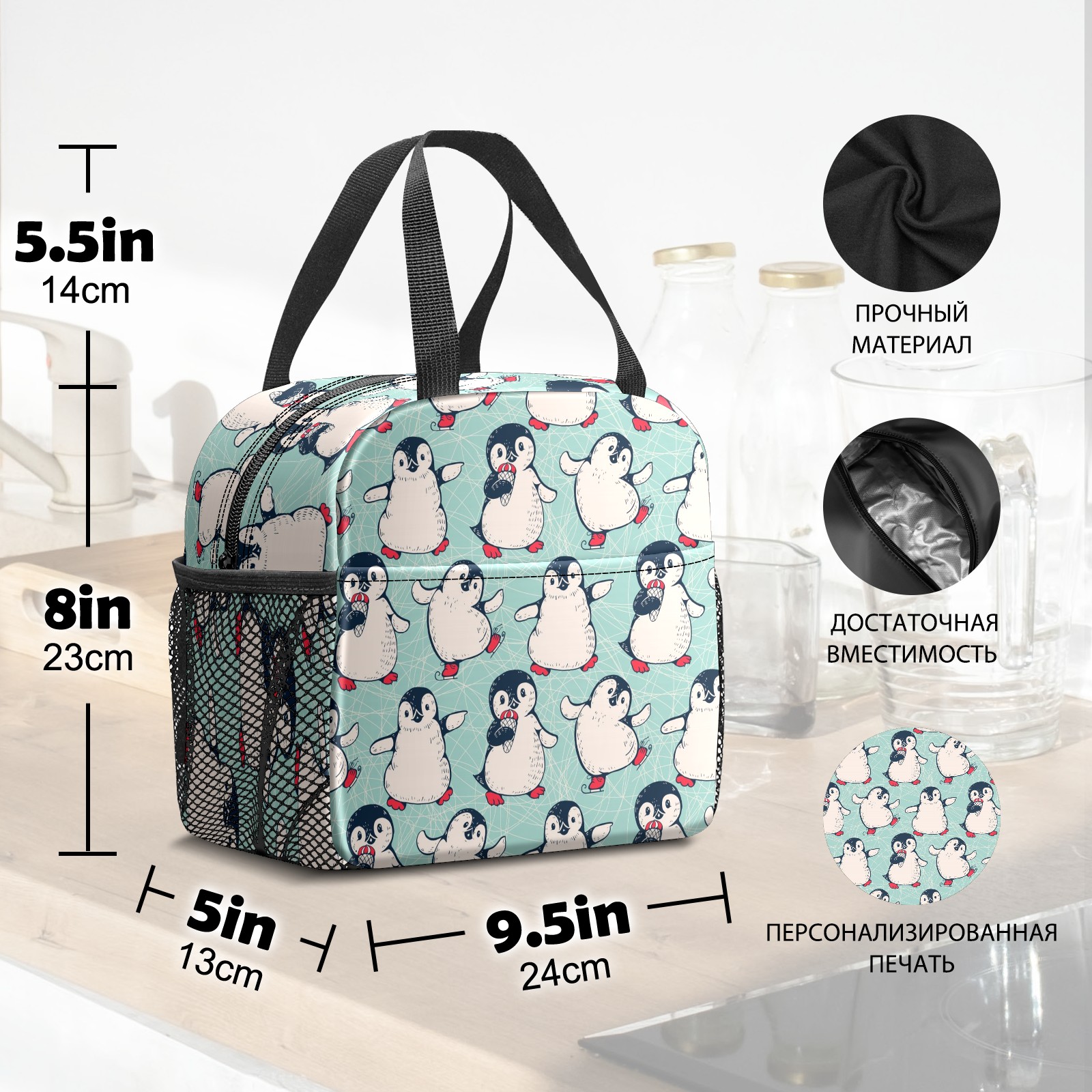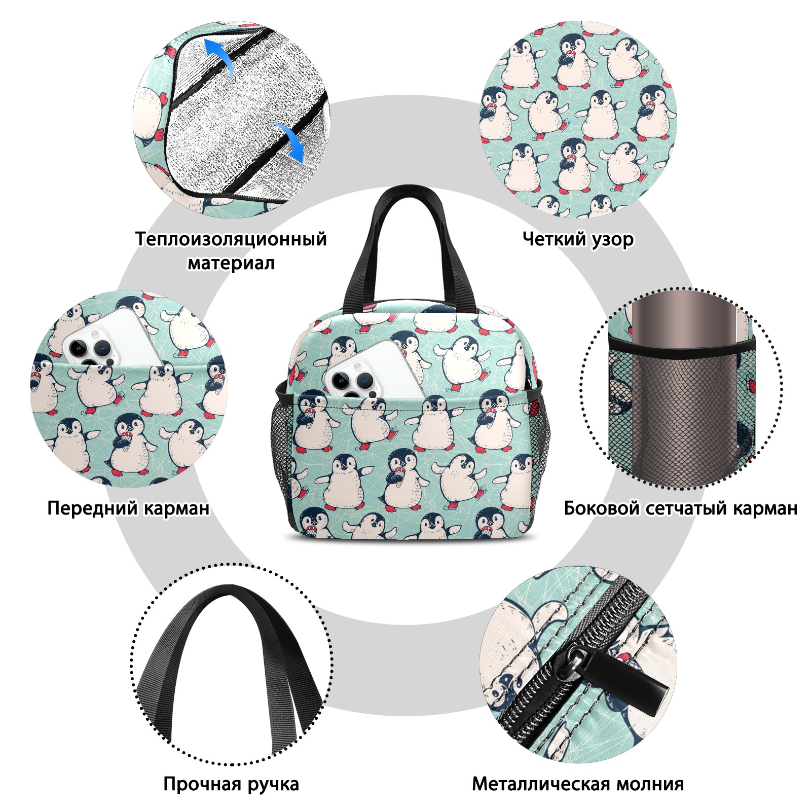 Lunch Bag,Lunch Box for Women Men,Penguin Reusable Insulated Lunch Tote,Small Leakproof Cute Lunch Cooler with High Capacity for Work,Picnic,Camping