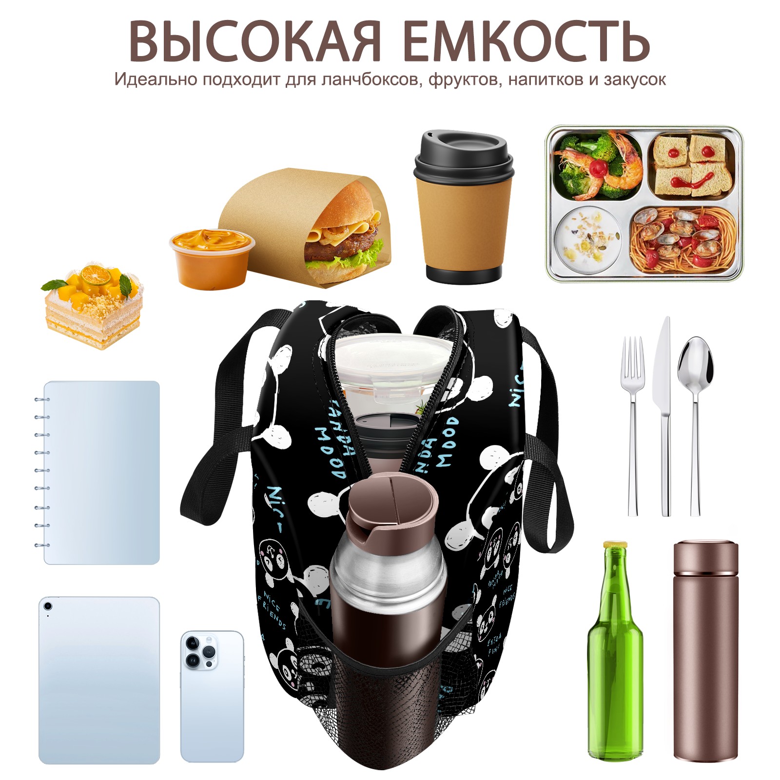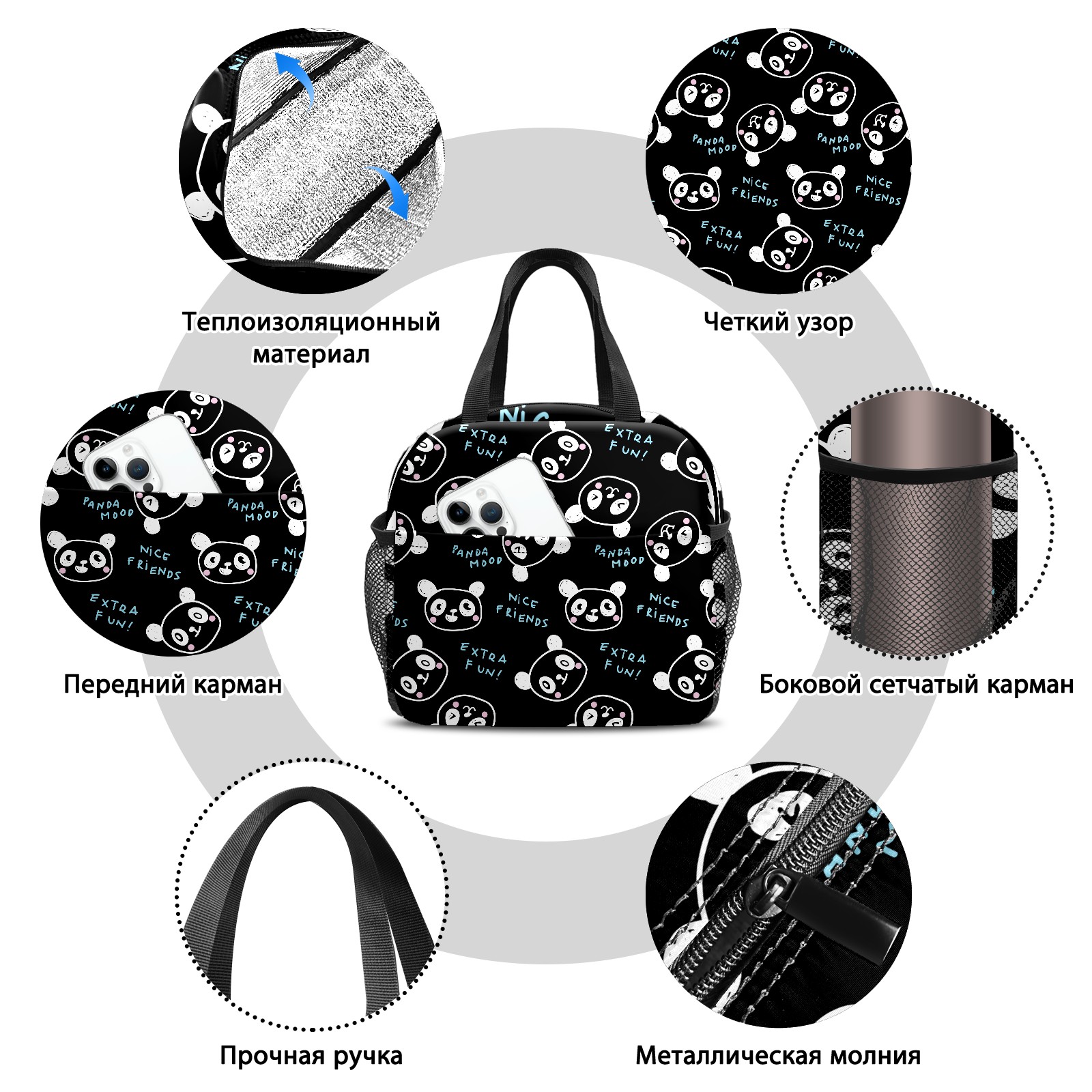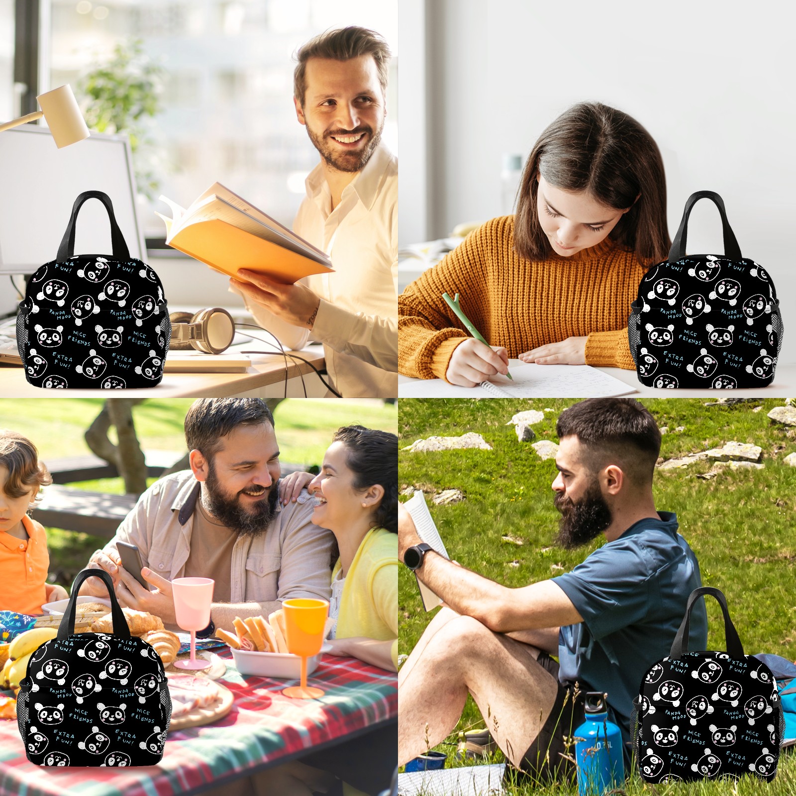 Lunch Bag,Lunch Box for Women Men,Panda Face Reusable Insulated Lunch Tote,Small Leakproof Cute Lunch Cooler with High Capacity for Work,Picnic,Camping