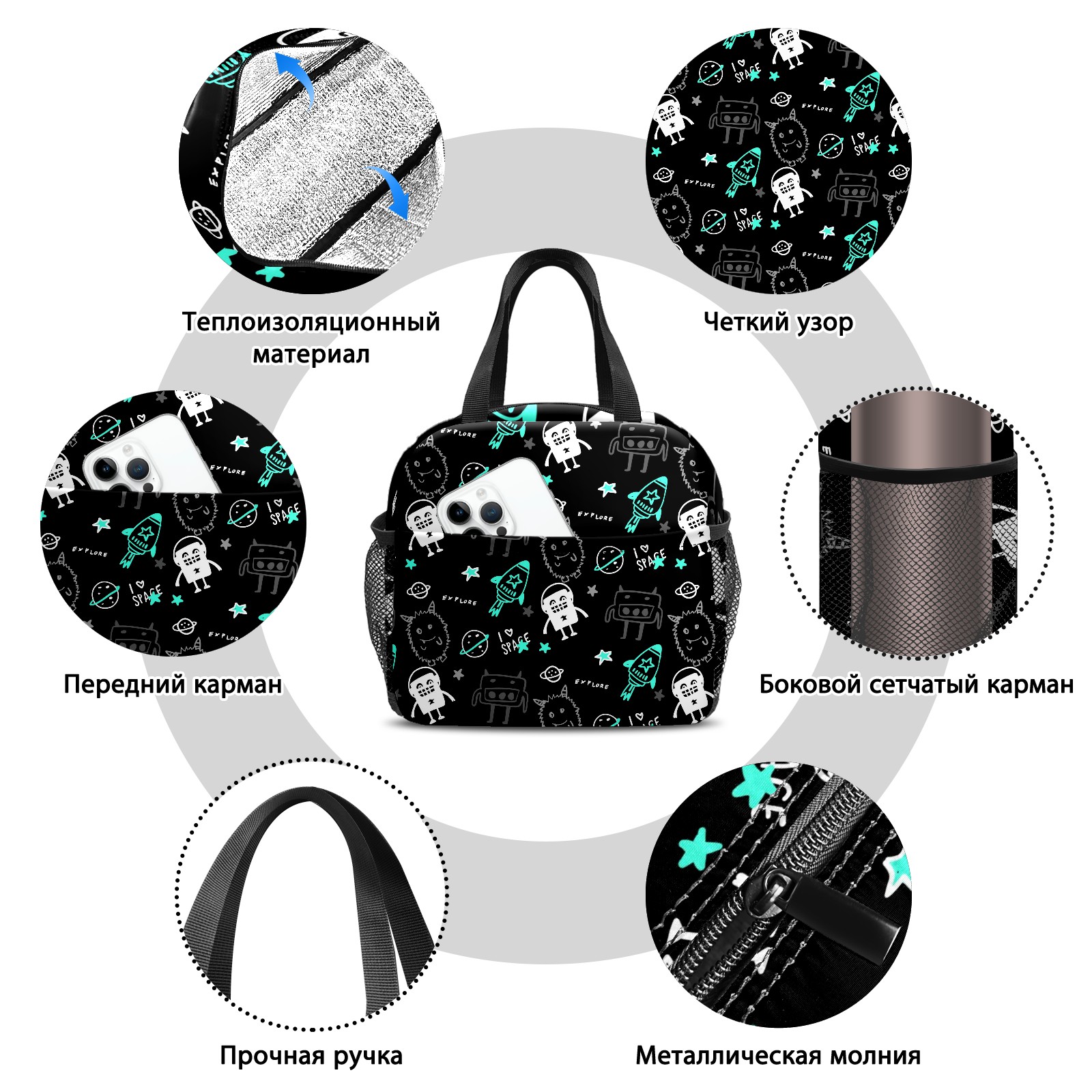 • <p>This stylish lunch bag is made of premium 600D waterproof Oxford cloth with thick insulating pearl foam lining and smooth, durable zippers, combining an attractive look with long-lasting daily use. Measuring 9.8*6.7*8.7, it offers ample space with a main zippered compartment and a front pocket to organize containers, food and snacks neatly for easy access. Boasting an extra-thick aluminum foil lining and heat-welded seams, it delivers reliable leak-proof performance and strong insulation to keep food hot or cold for hours, ideal for sandwiches, salads, fruits and more. Lightweight and portable with a sturdily stitched upgraded handle, this reusable lunch bag is a perfect companion for work, camping, picnics, beach trips and outdoor travel, helping you enjoy fresh homemade meals on the go.</p>