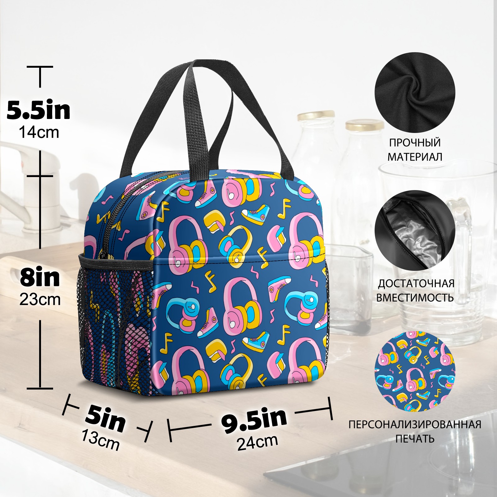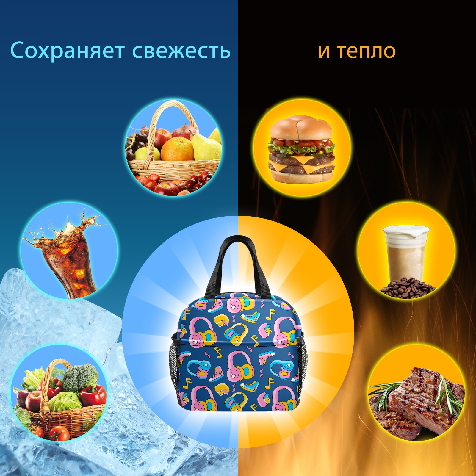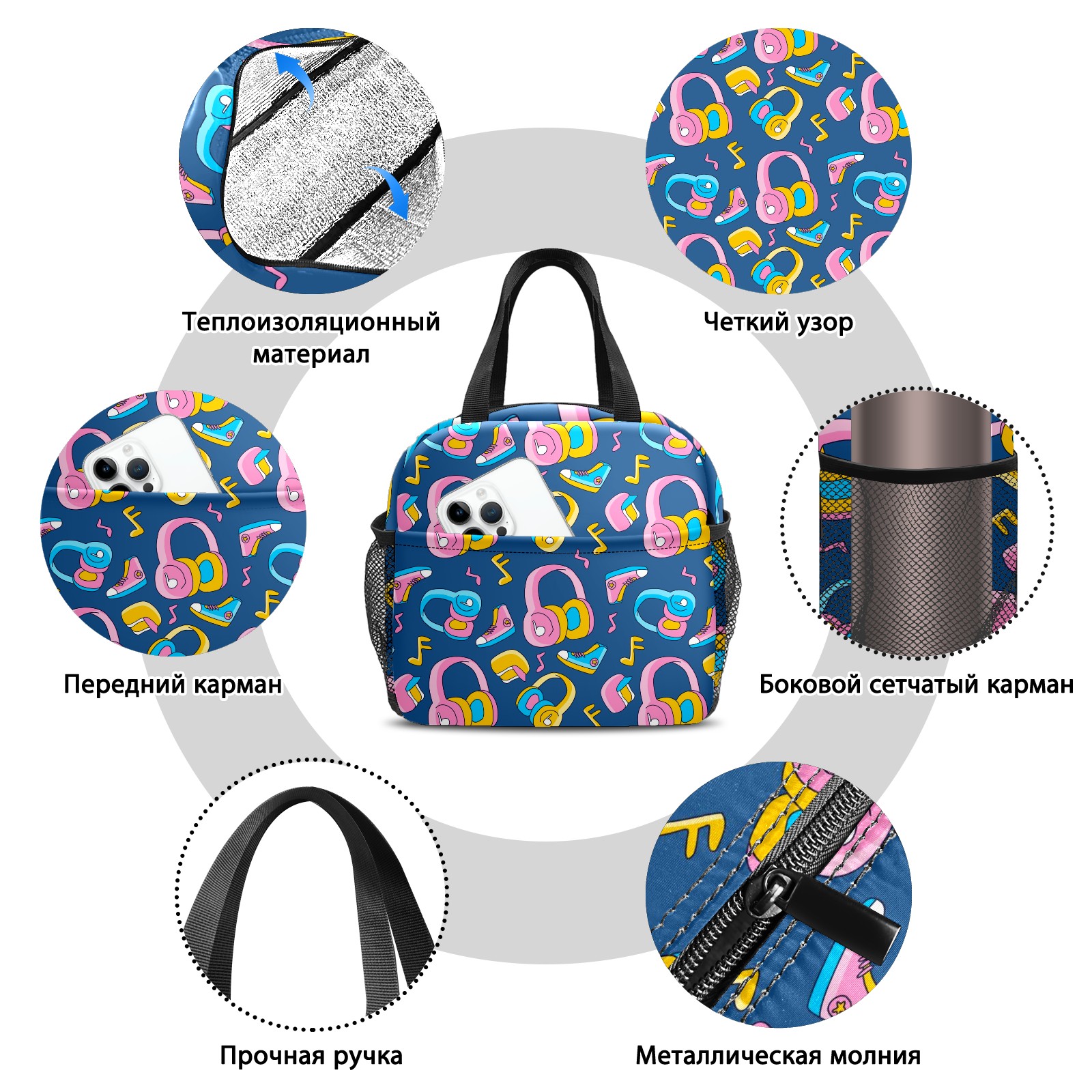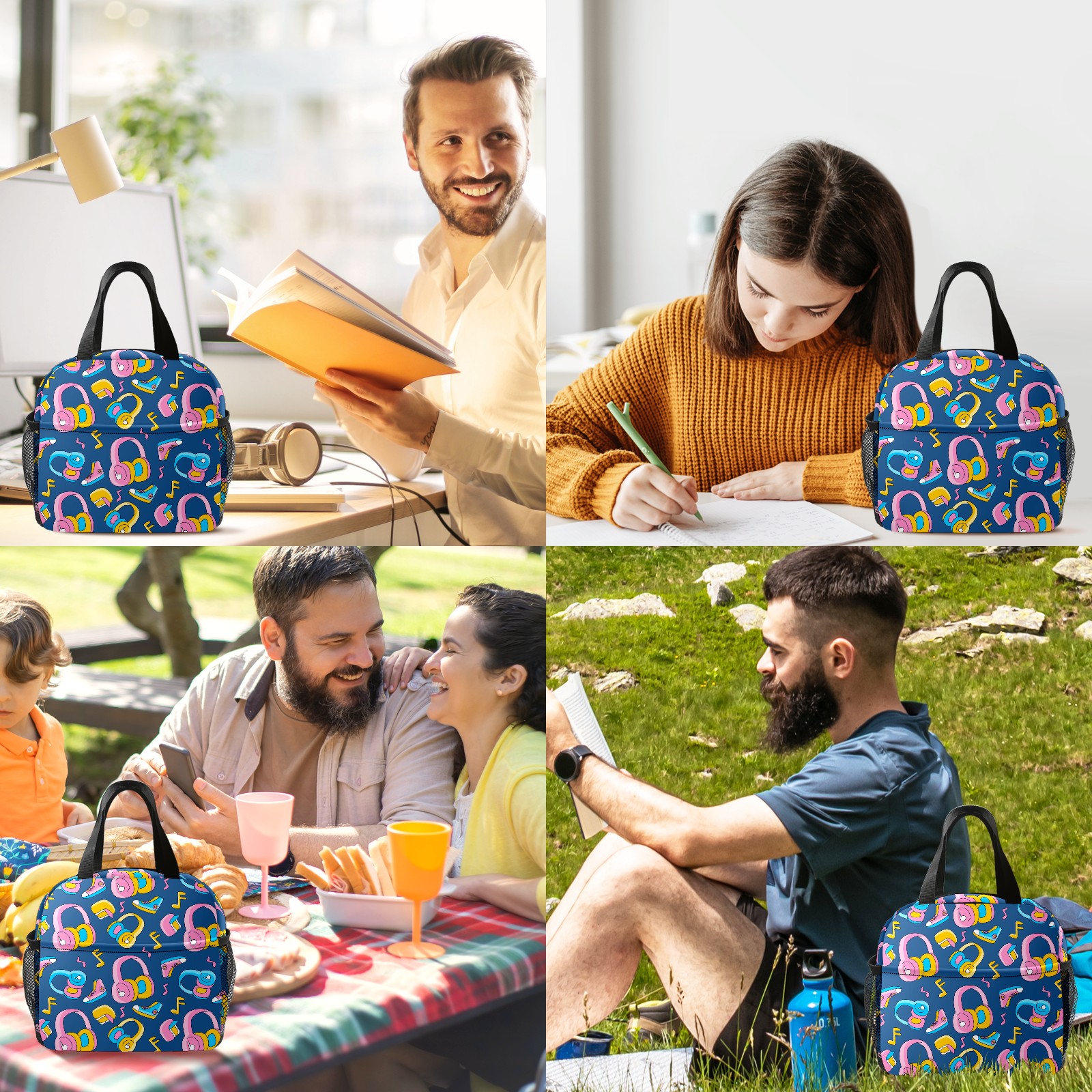 Lunch Bag,Lunch Box for Women Men,Funky Head Phone Reusable Insulated Lunch Tote,Small Leakproof Cute Lunch Cooler with High Capacity for Work,Picnic,Camping