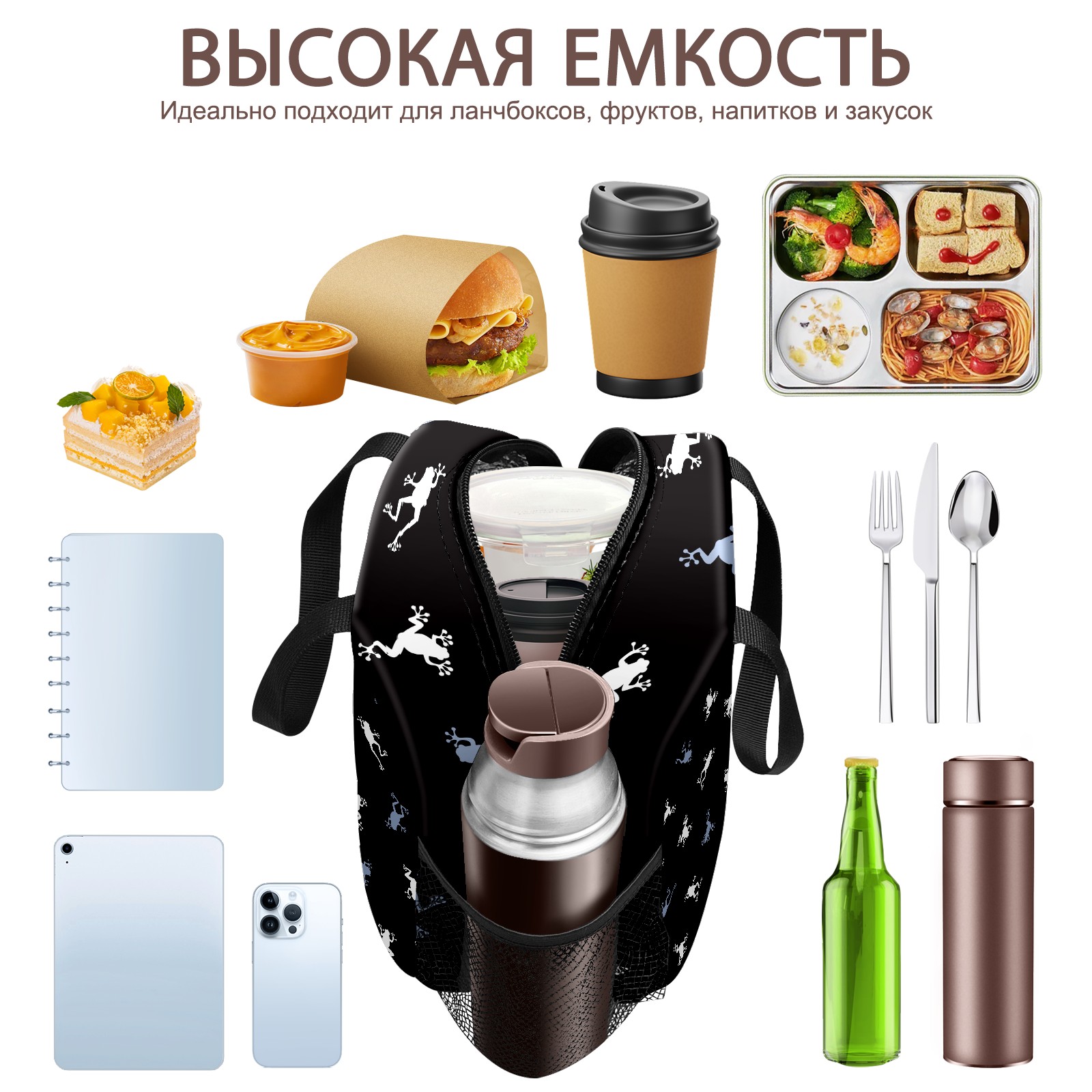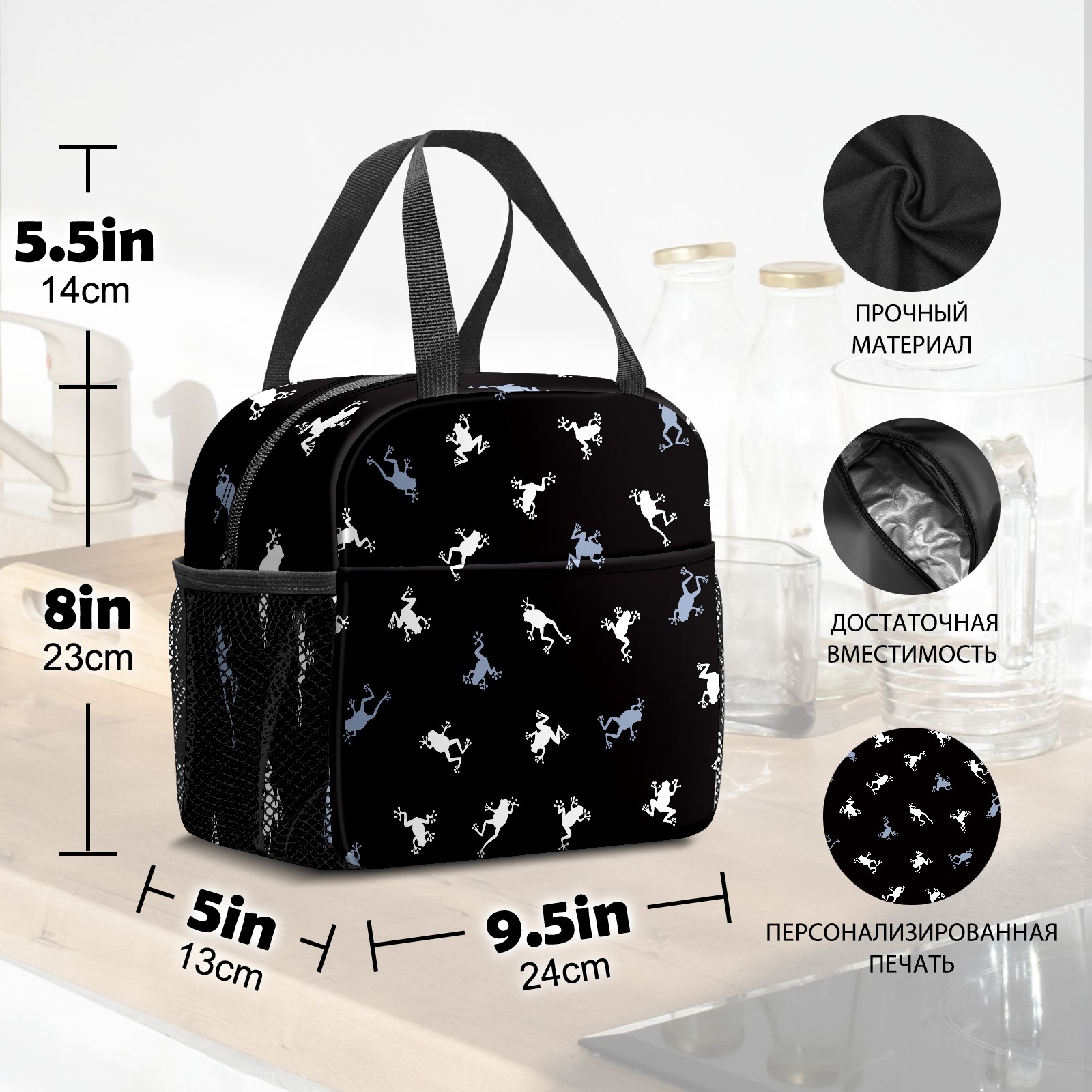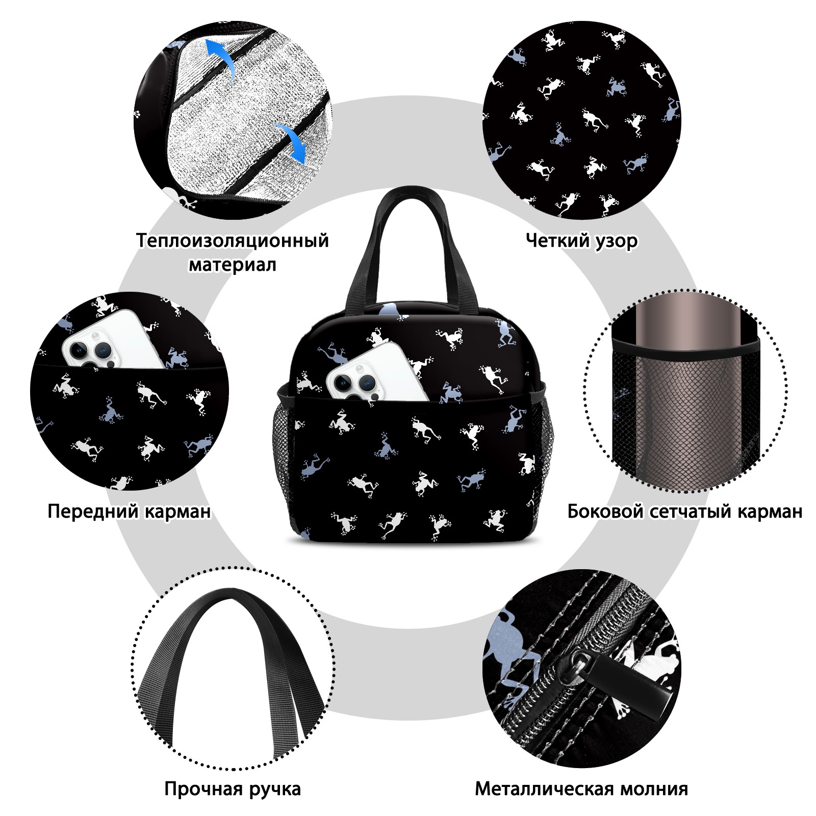 Lunch Bag,Lunch Box for Women Men,Frog Silhouette Pattern Reusable Insulated Lunch Tote,Small Leakproof Cute Lunch Cooler with High Capacity for Work,Picnic,Camping
