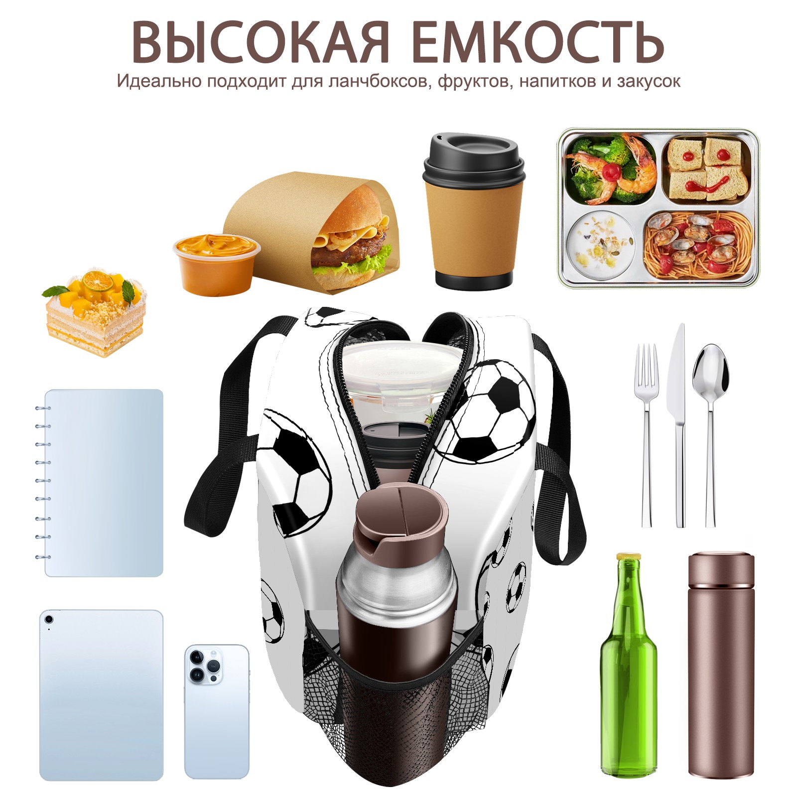 Lunch Bag,Lunch Box for Women Men,Footballs Reusable Insulated Lunch Tote,Small Leakproof Cute Lunch Cooler with High Capacity for Work,Picnic,Camping