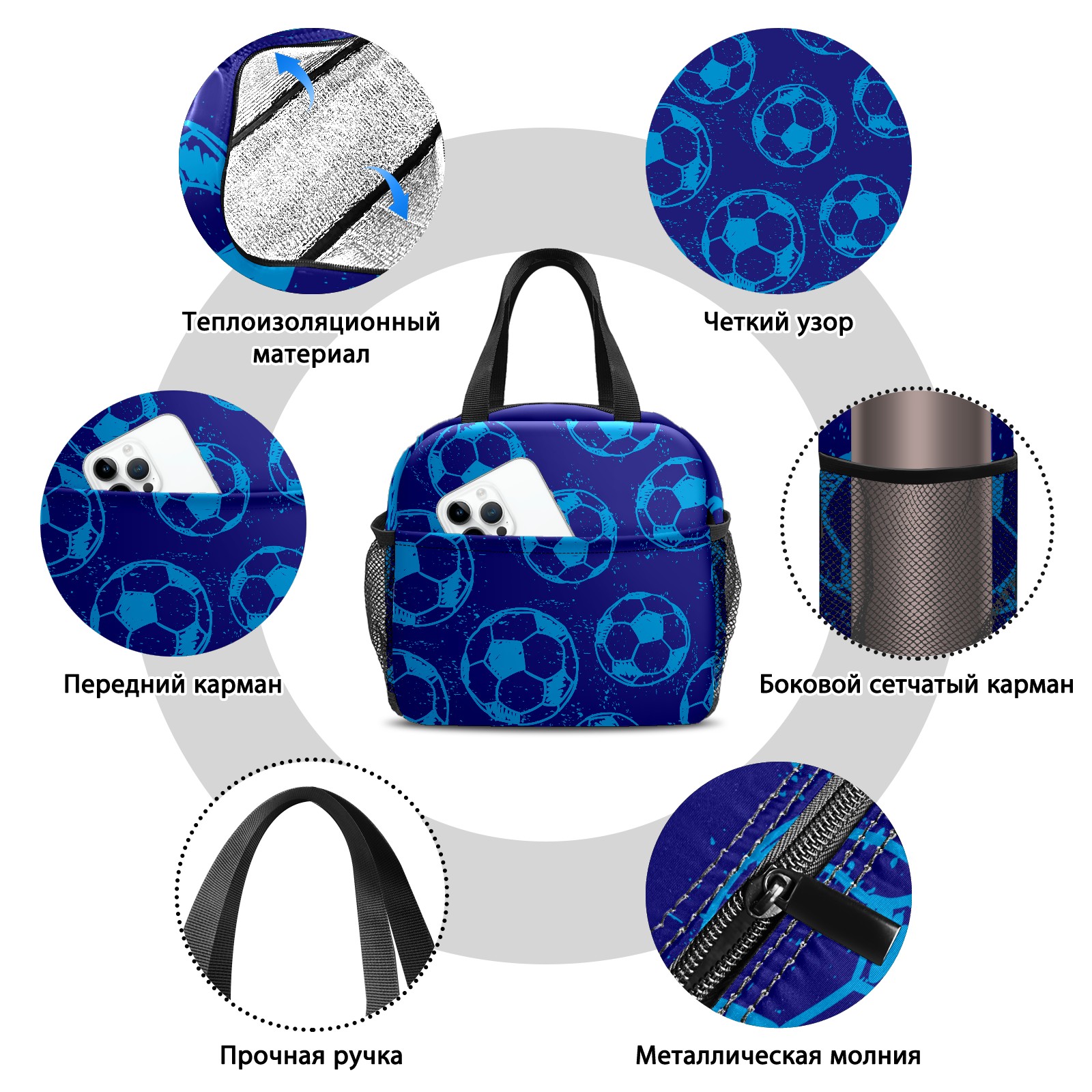 Lunch Bag,Lunch Box for Women Men,Footballs Collection Reusable Insulated Lunch Tote,Small Leakproof Cute Lunch Cooler with High Capacity for Work,Picnic,Camping