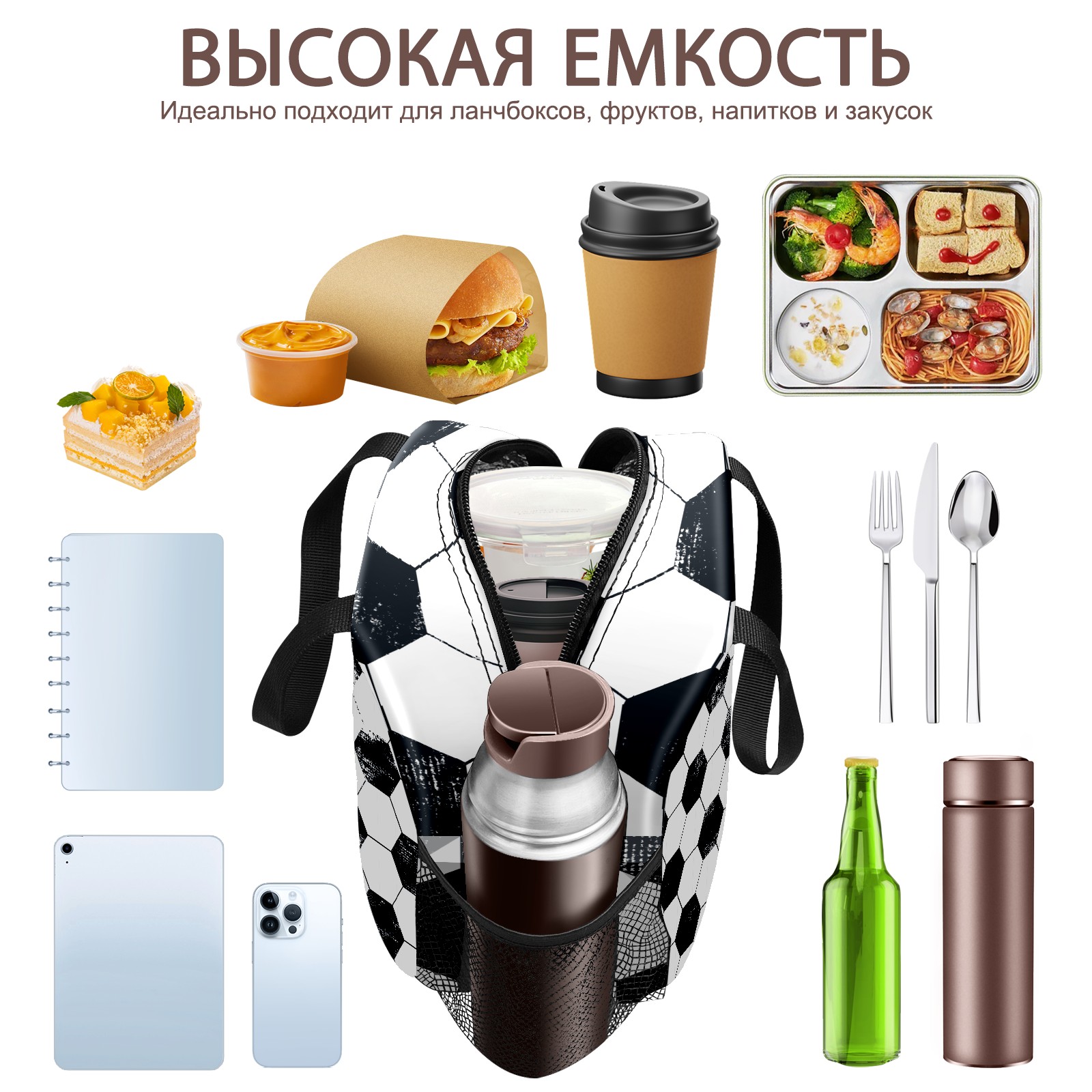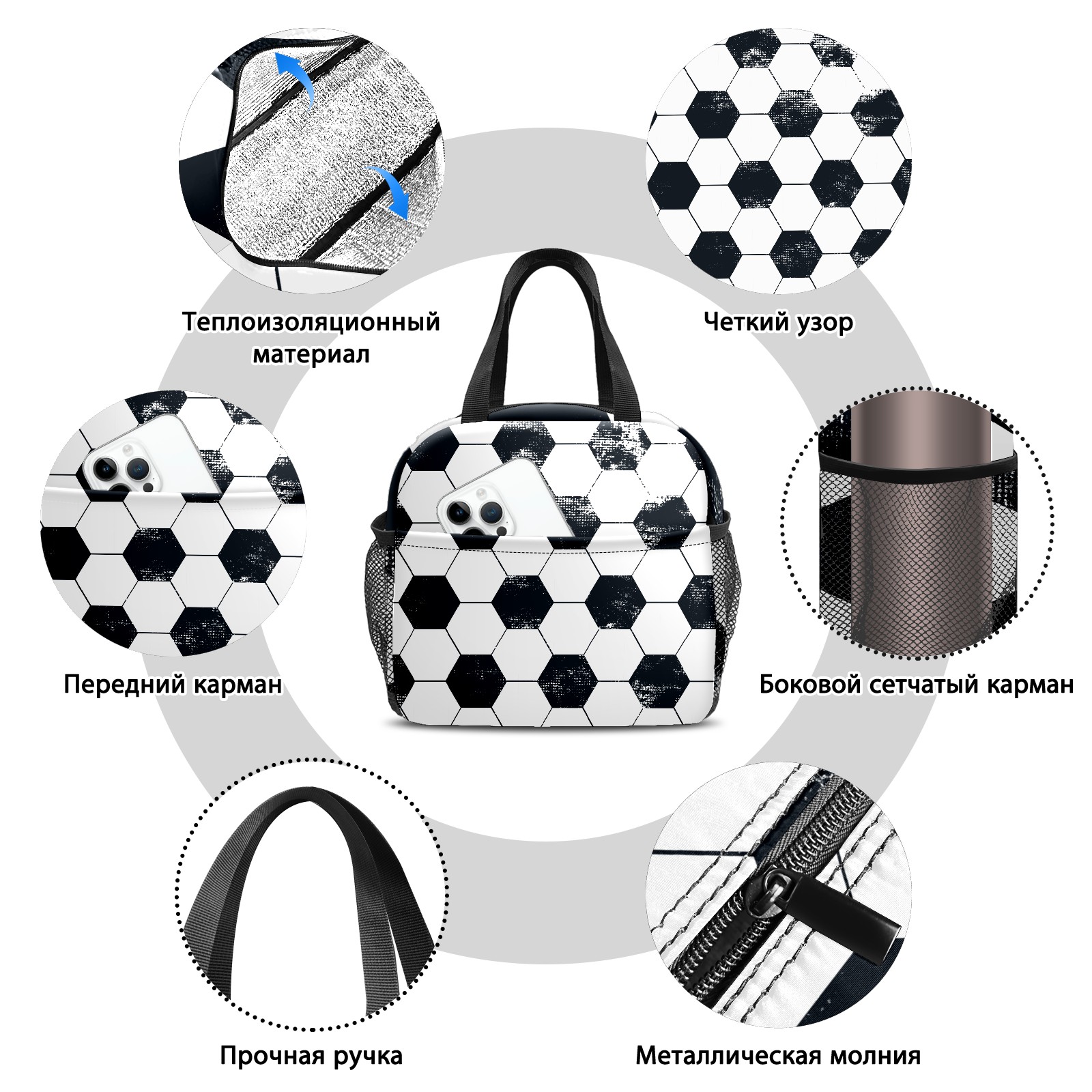 Lunch Bag,Lunch Box for Women Men,Football Pattern Reusable Insulated Lunch Tote,Small Leakproof Cute Lunch Cooler with High Capacity for Work,Picnic,Camping