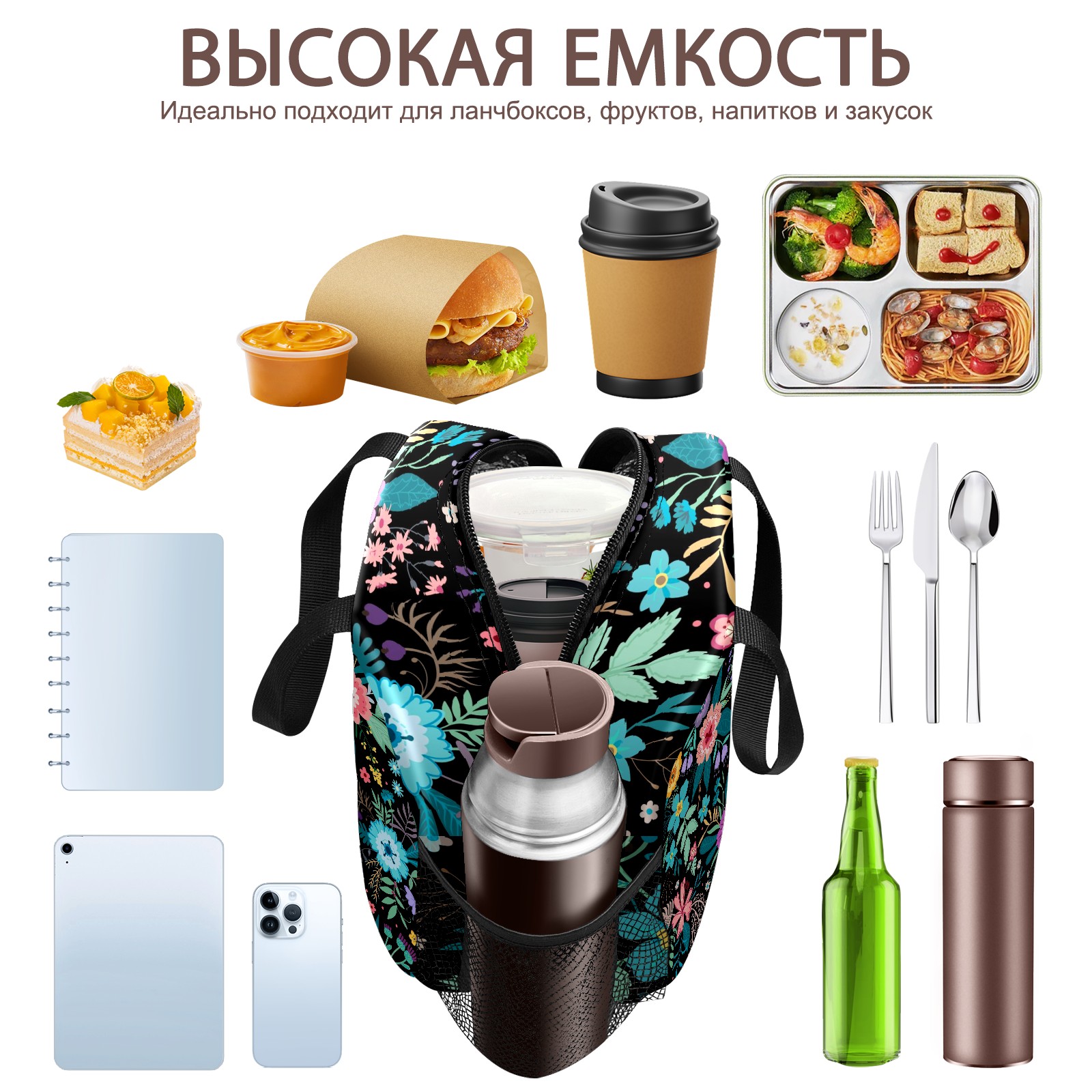 Lunch Bag,Lunch Box for Women Men,Flowering Flower Reusable Insulated Lunch Tote,Small Leakproof Cute Lunch Cooler with High Capacity for Work,Picnic,Camping