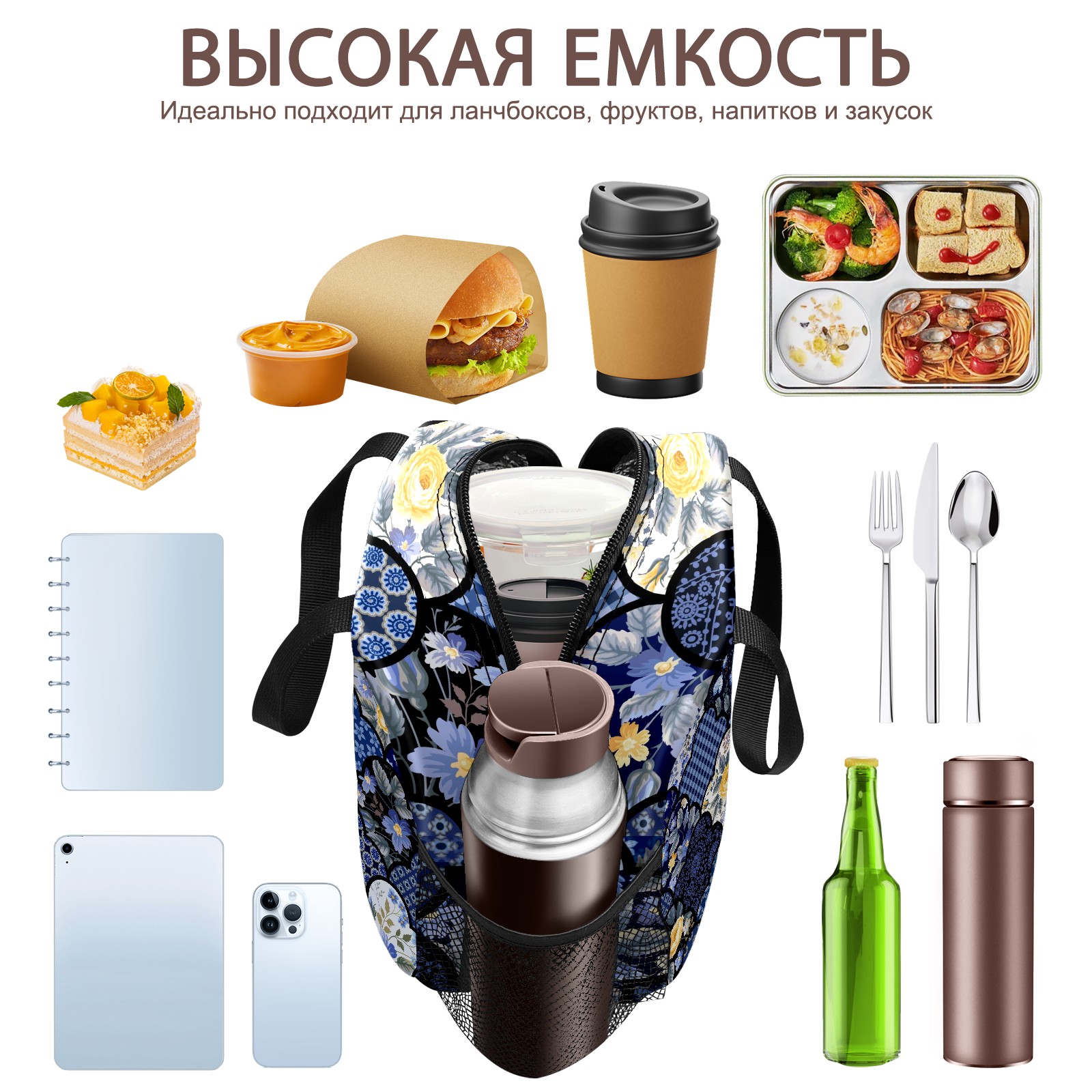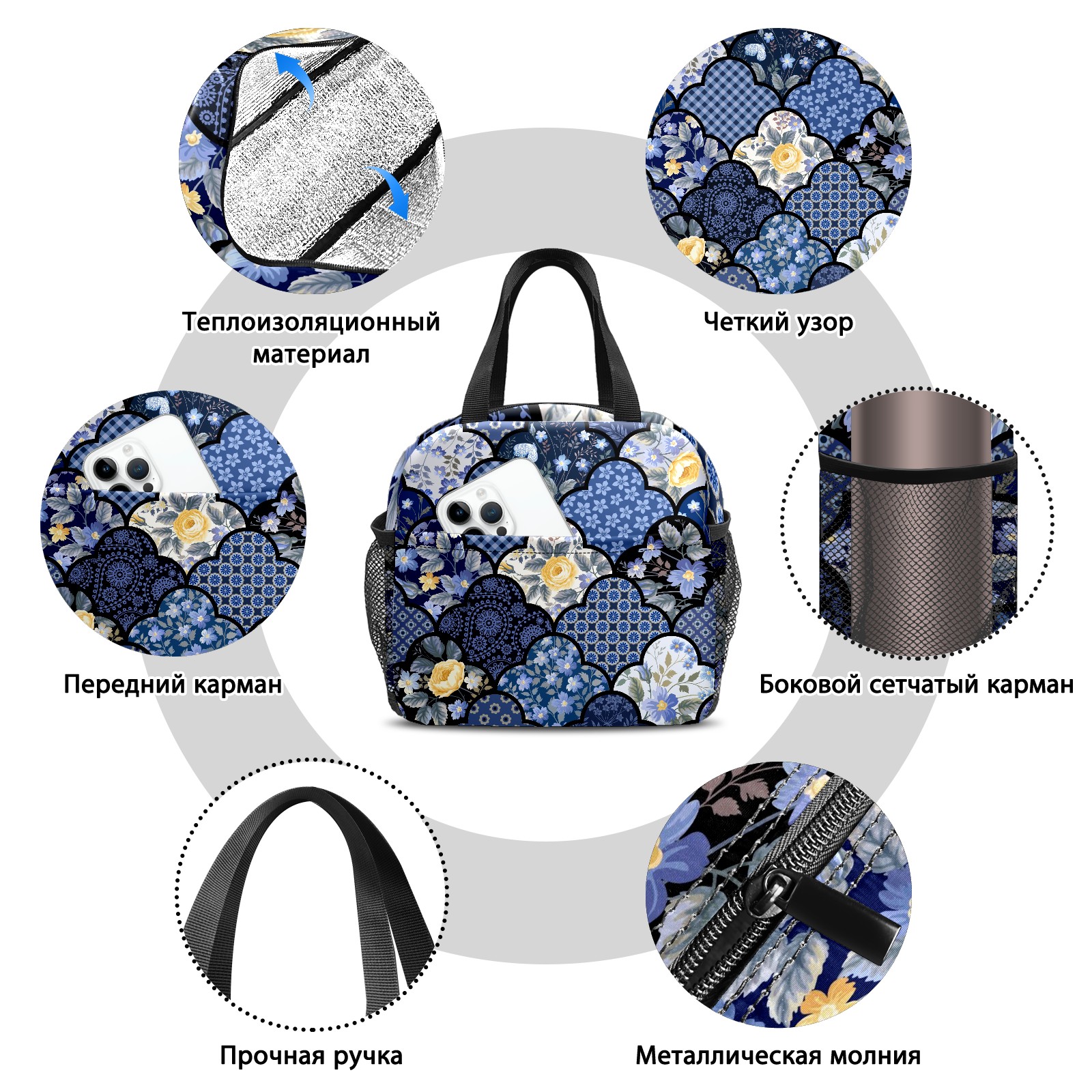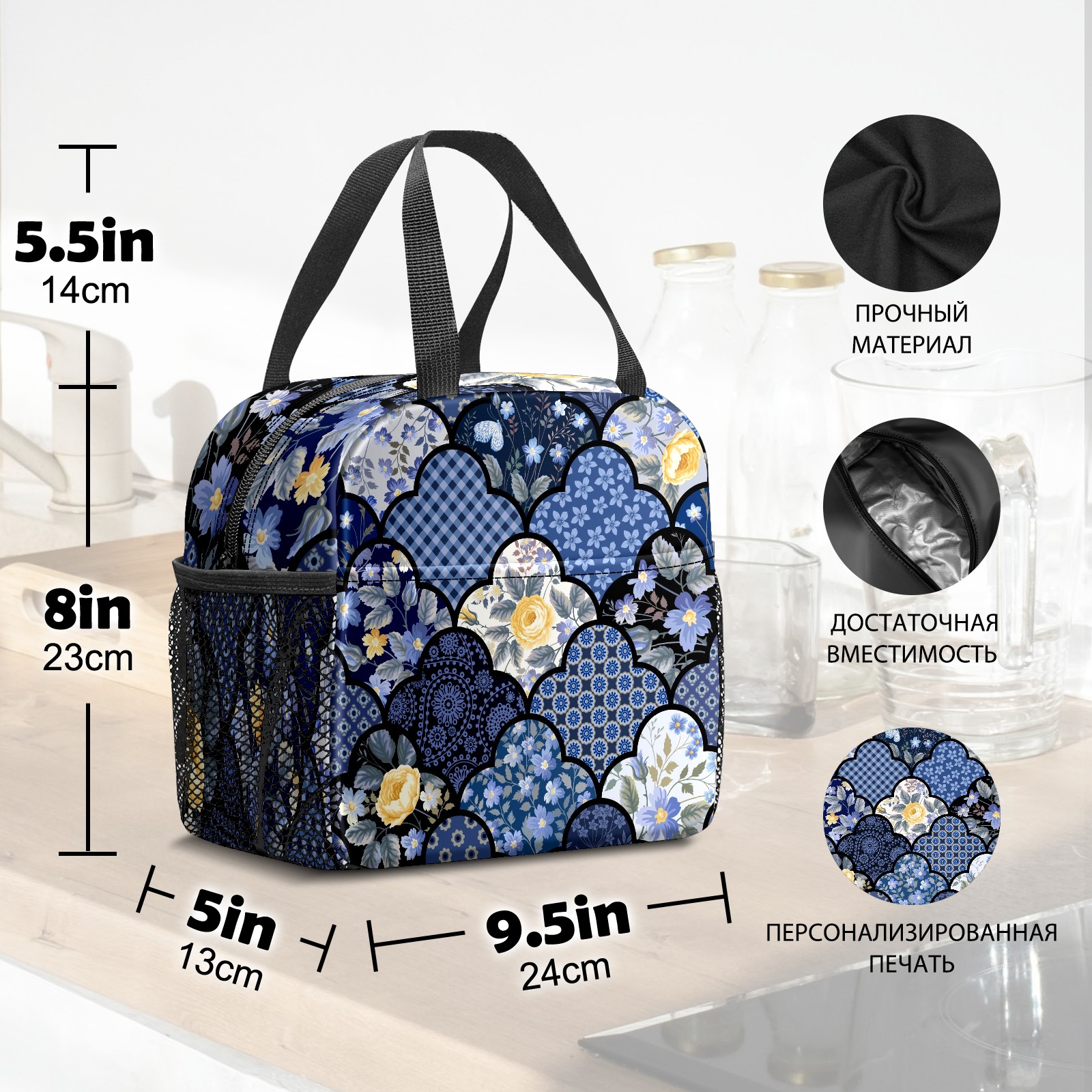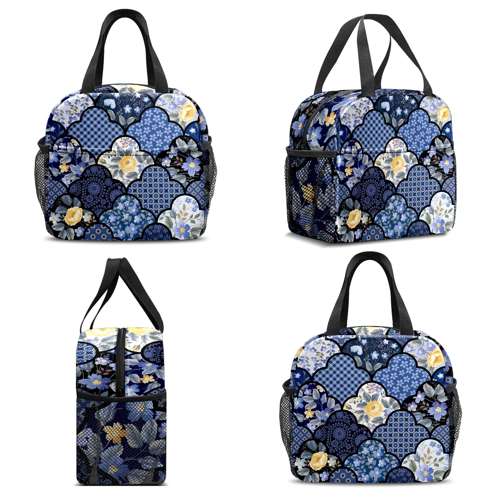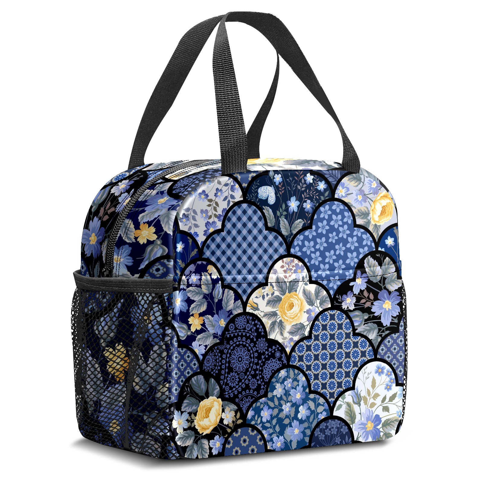 Lunch Bag,Lunch Box for Women Men,Flower Decorative Reusable Insulated Lunch Tote,Small Leakproof Cute Lunch Cooler with High Capacity for Work,Picnic,Camping