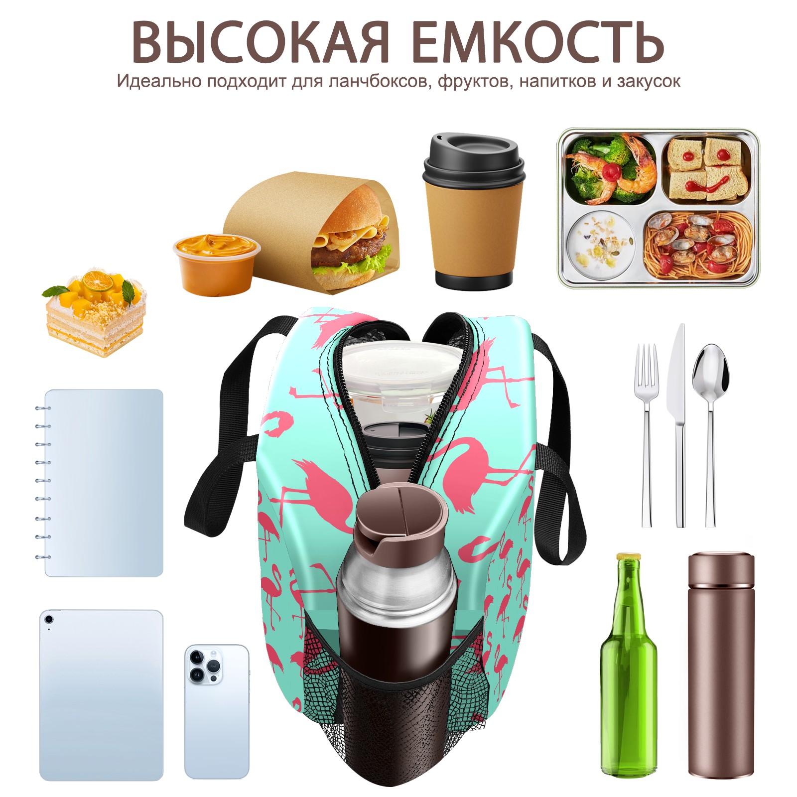 Lunch Bag,Lunch Box for Women Men,Flamingo Pattern Reusable Insulated Lunch Tote,Small Leakproof Cute Lunch Cooler with High Capacity for Work,Picnic,Camping