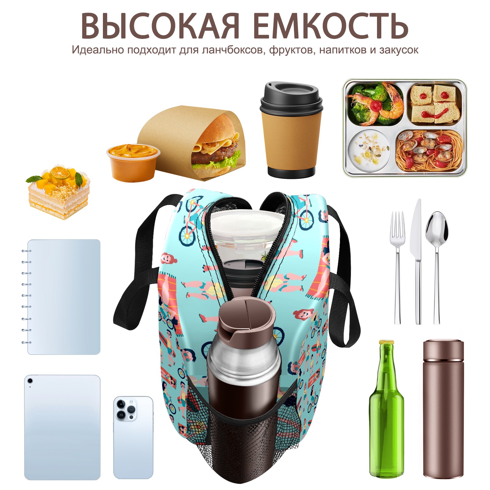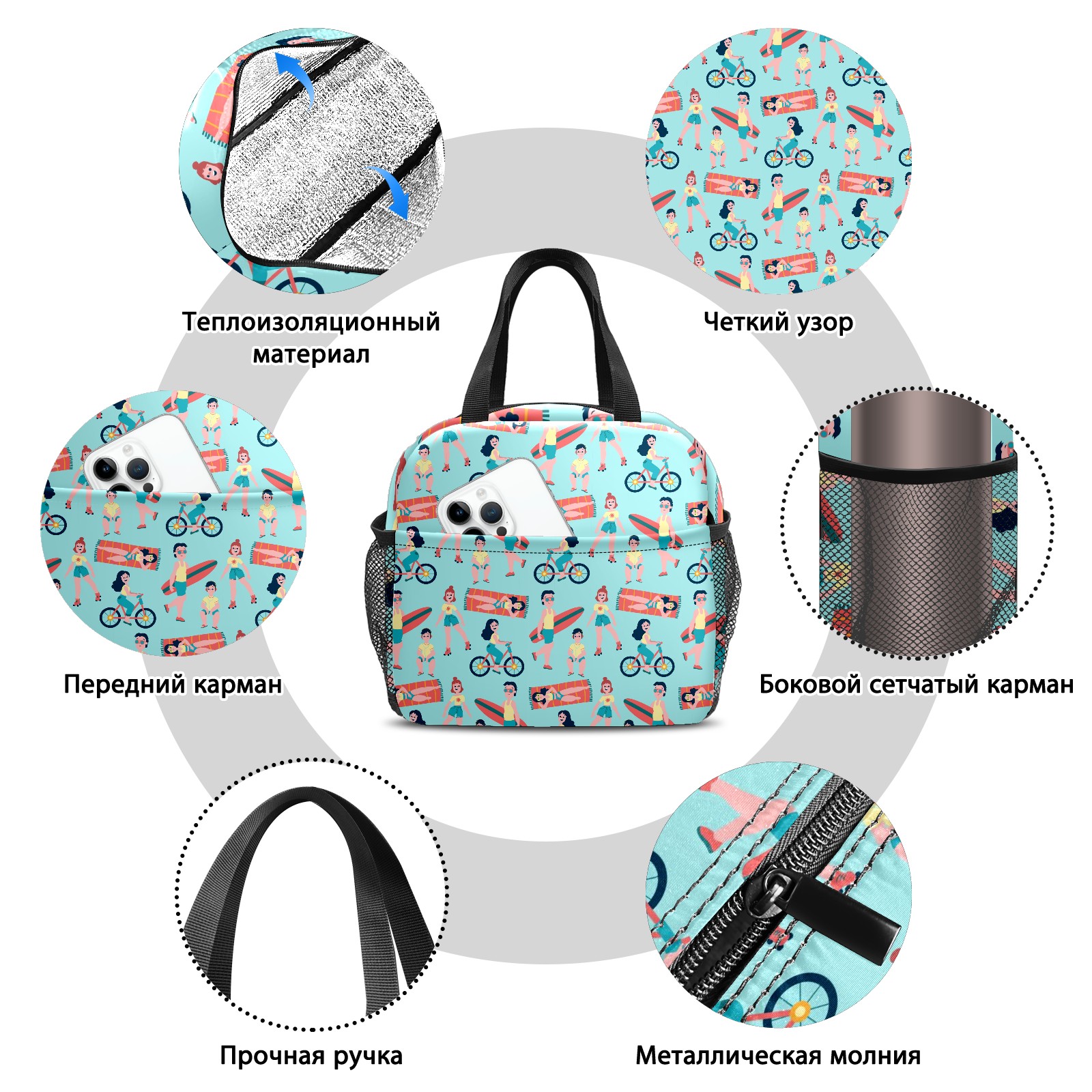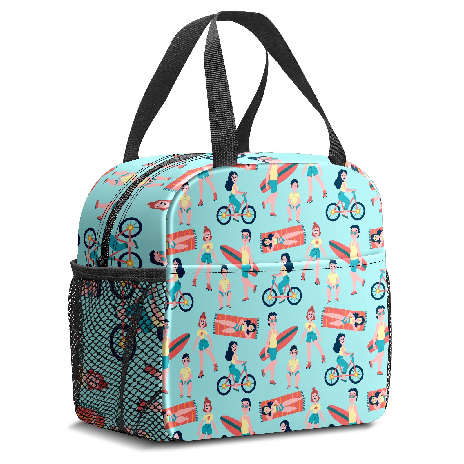 Lunch Bag,Lunch Box for Women Men,Flat People At The Beach Reusable Insulated Lunch Tote,Small Leakproof Cute Lunch Cooler with High Capacity for Work,Picnic,Camping